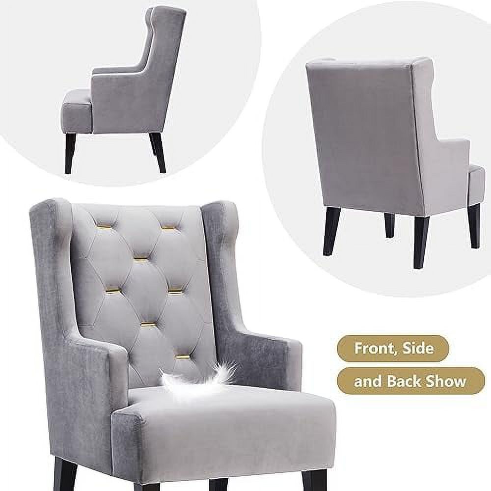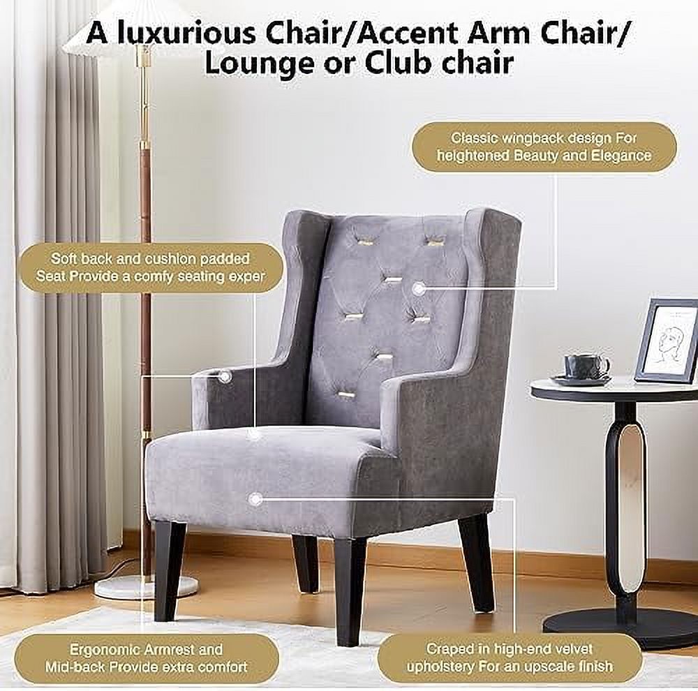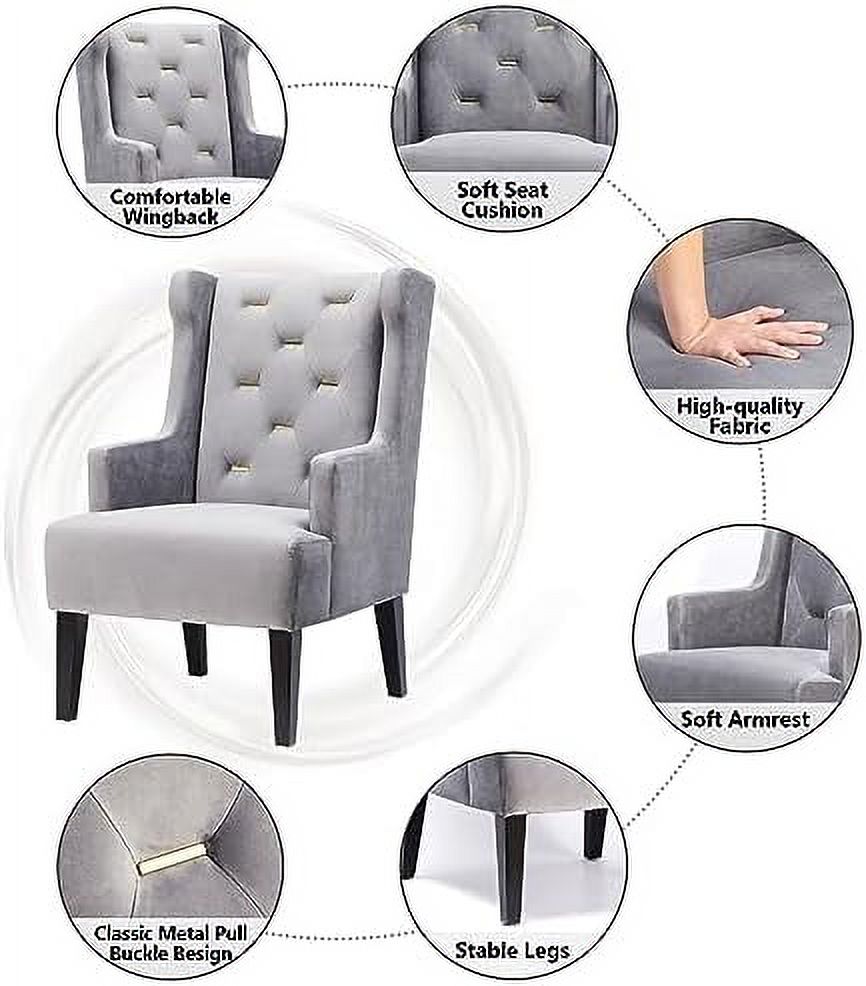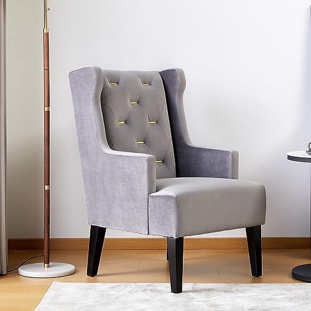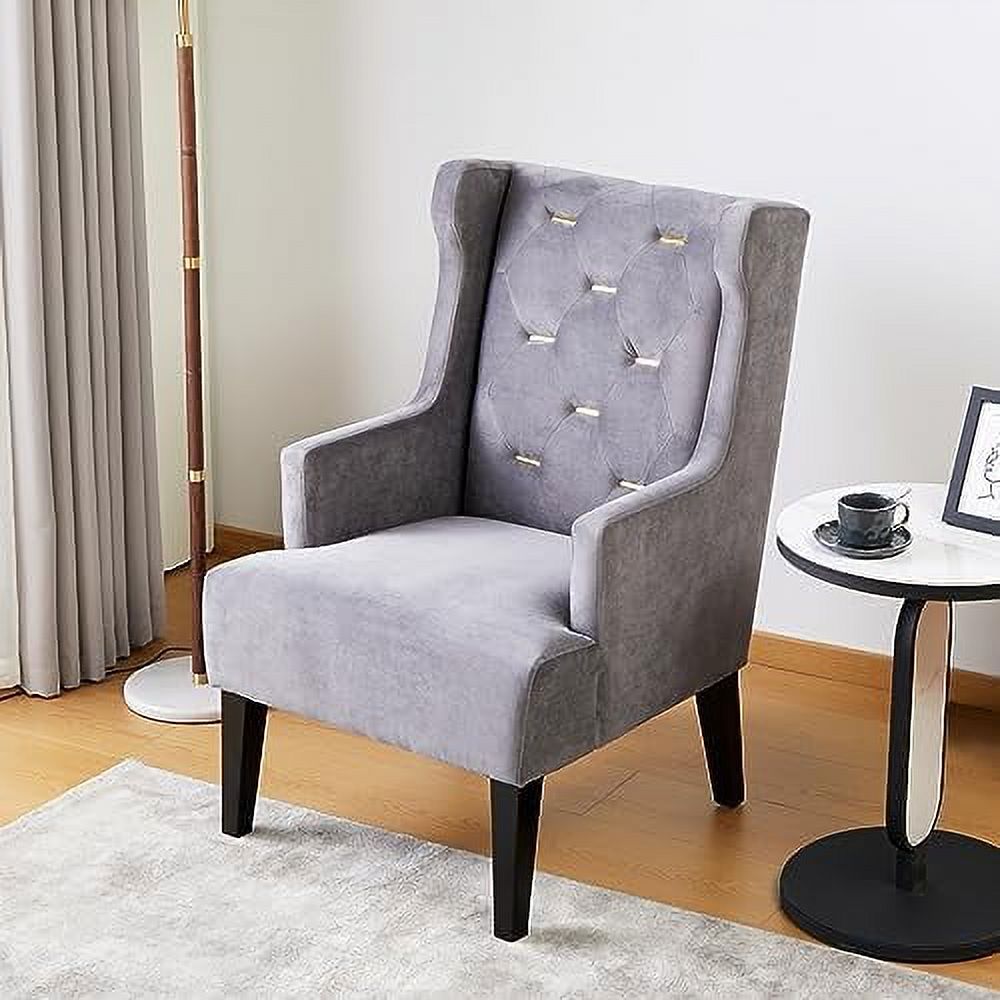 HOOMHIBIU Mid Century Modern Accent Chair Velvet Tufted Metal Button Wingback Reading Chair Upholstered Comfy Lounge Chair Armchair for Living Room Bedroom(Grey)