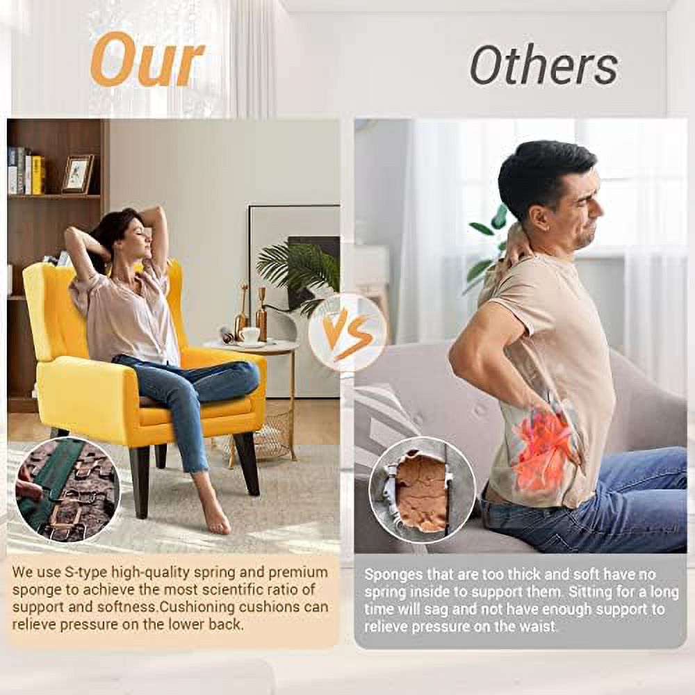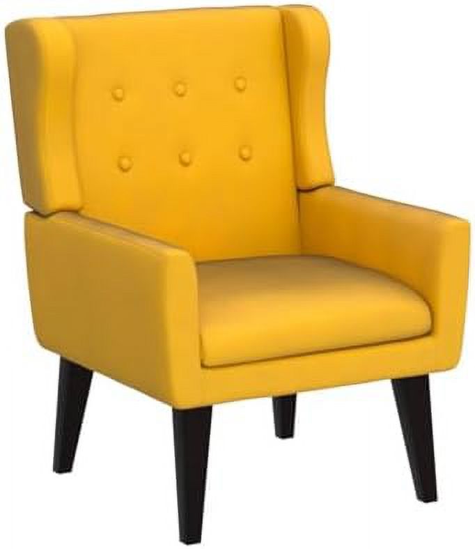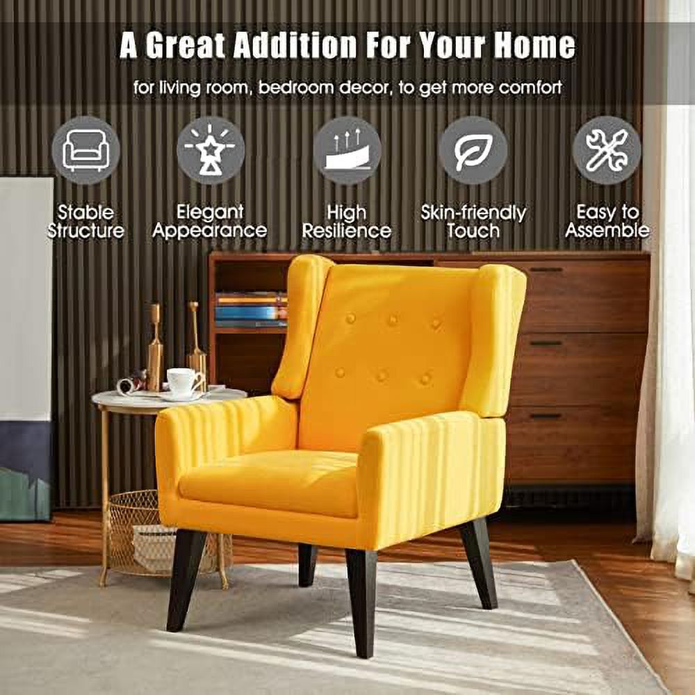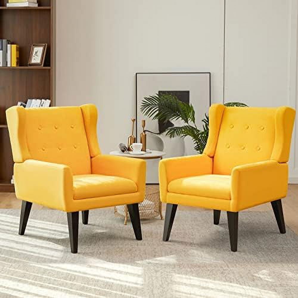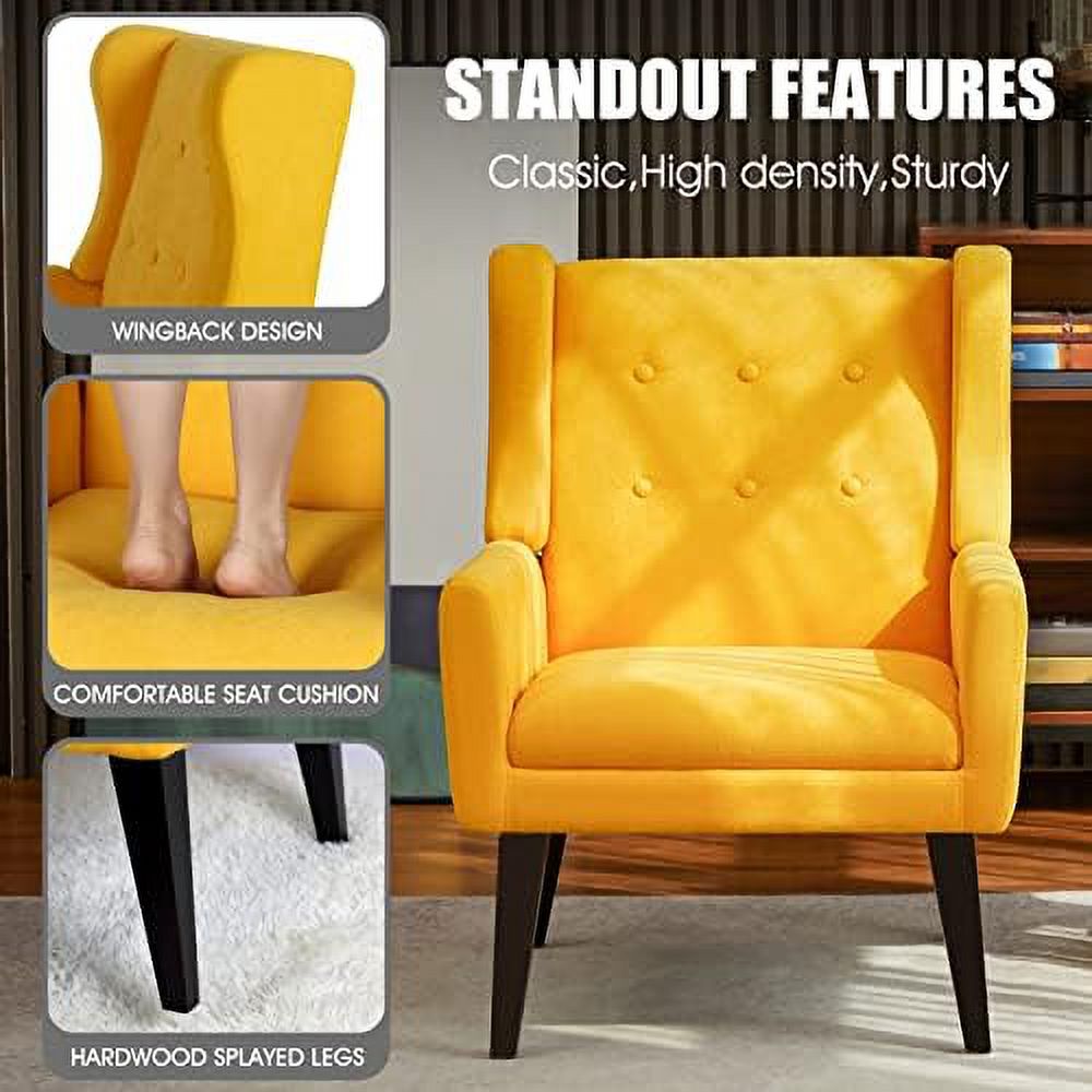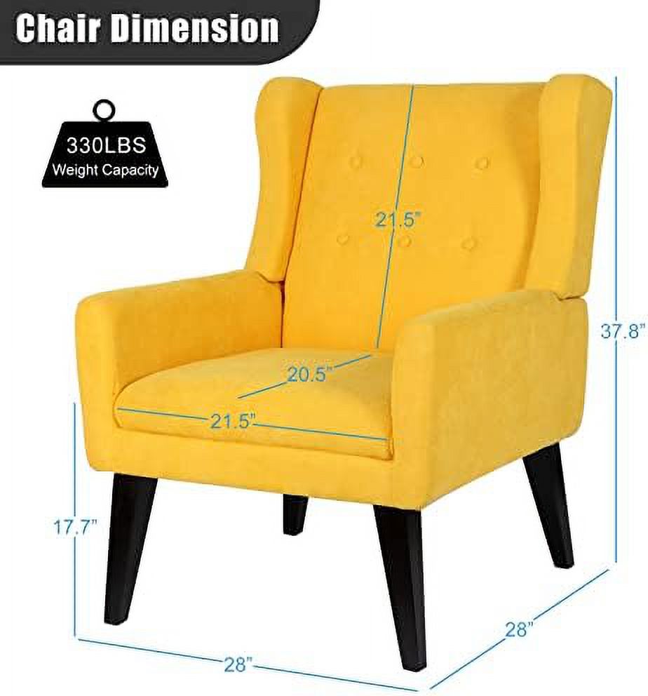 LLBIULife Mid Century Modern Accent Chair Upholstered Button Tufted Single Armchair with Wood Legs Premium Linen Fabric Reading Chair Comfy Chair for Bedroom Living Room Yellow