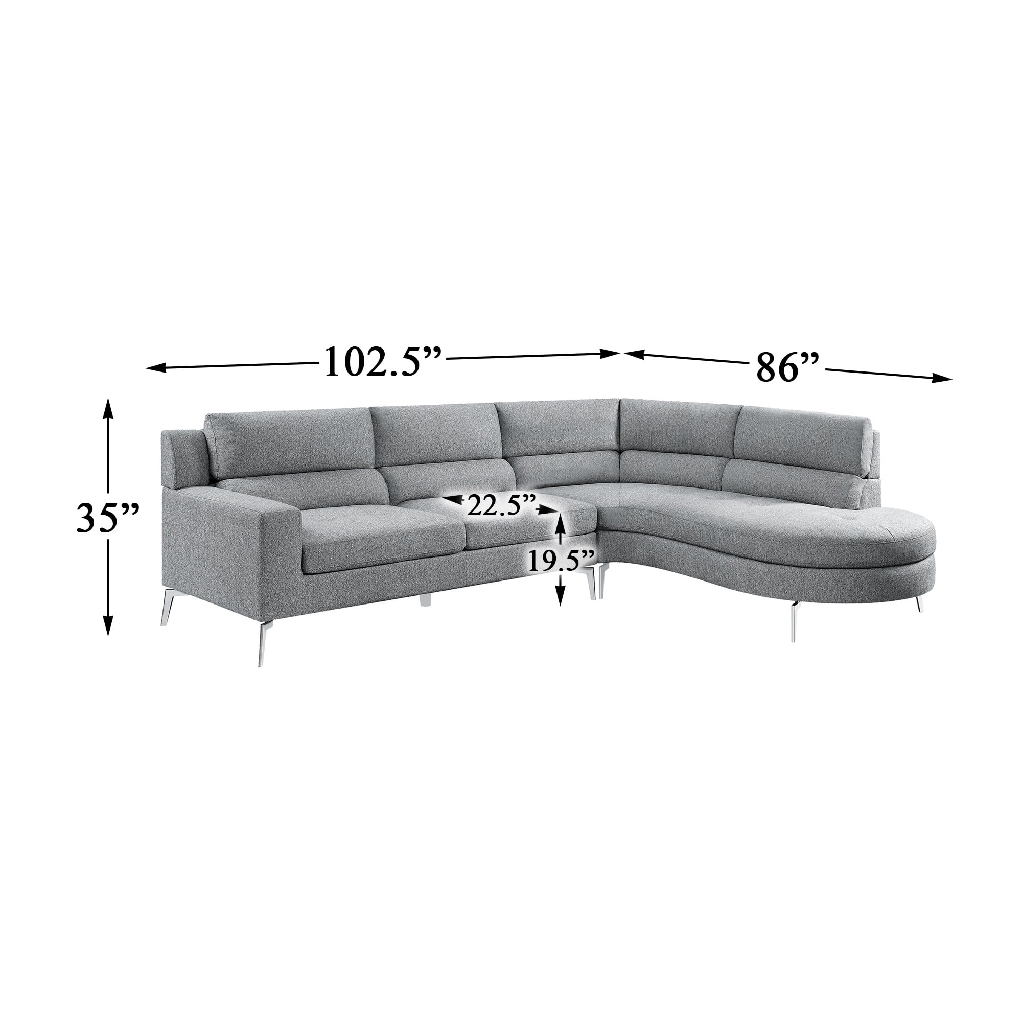 Alfio 102.5 in. W Upholstery 2-Piece Sectional Sofa with Right Chaise in Gray