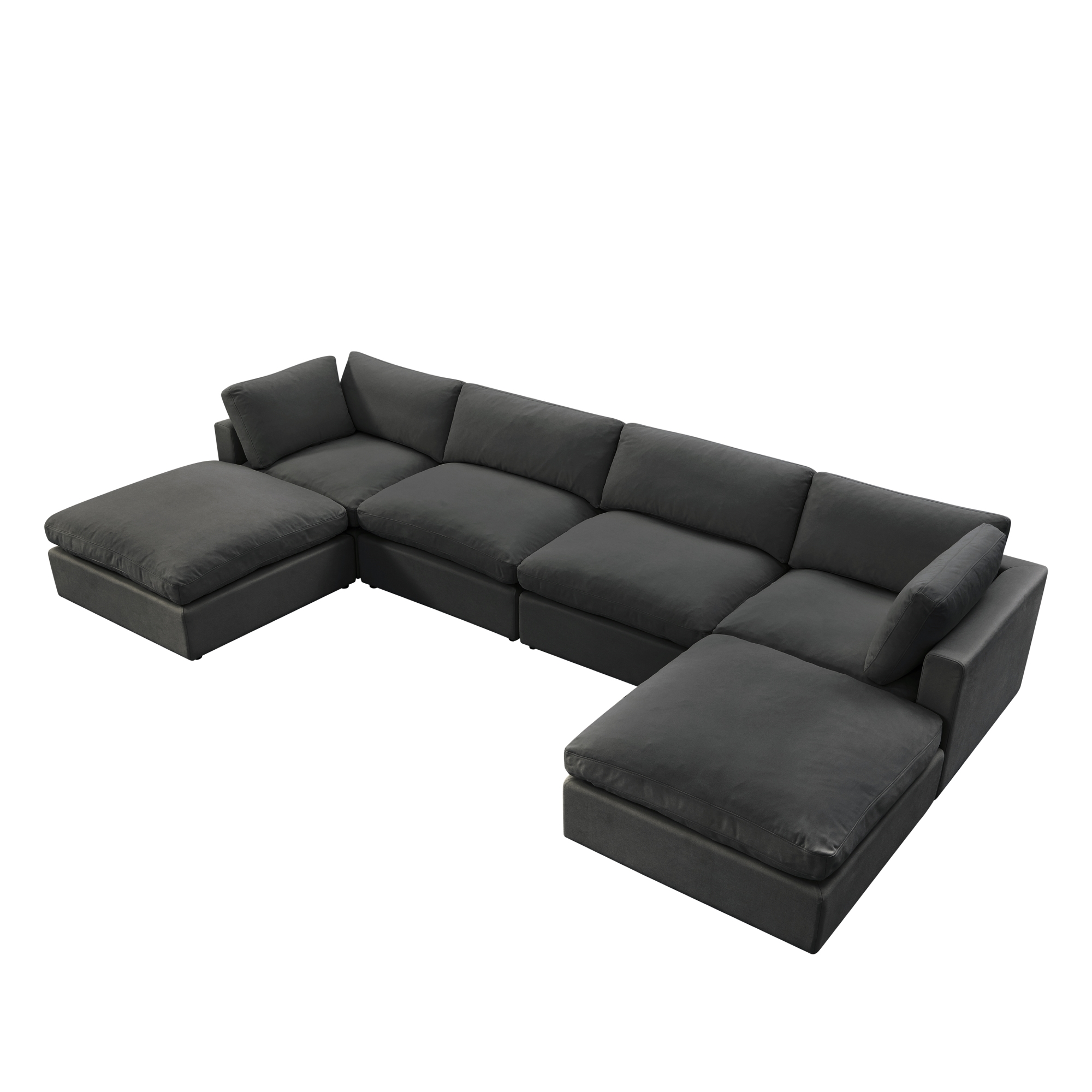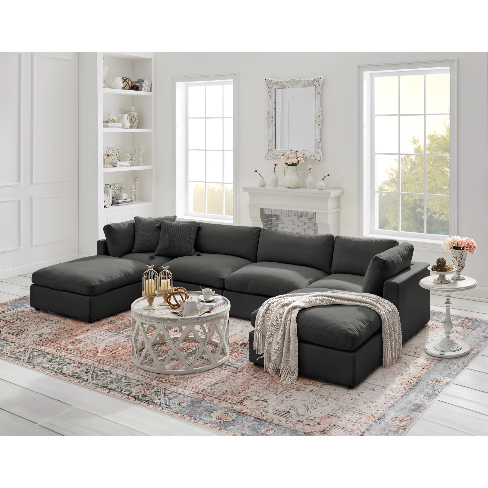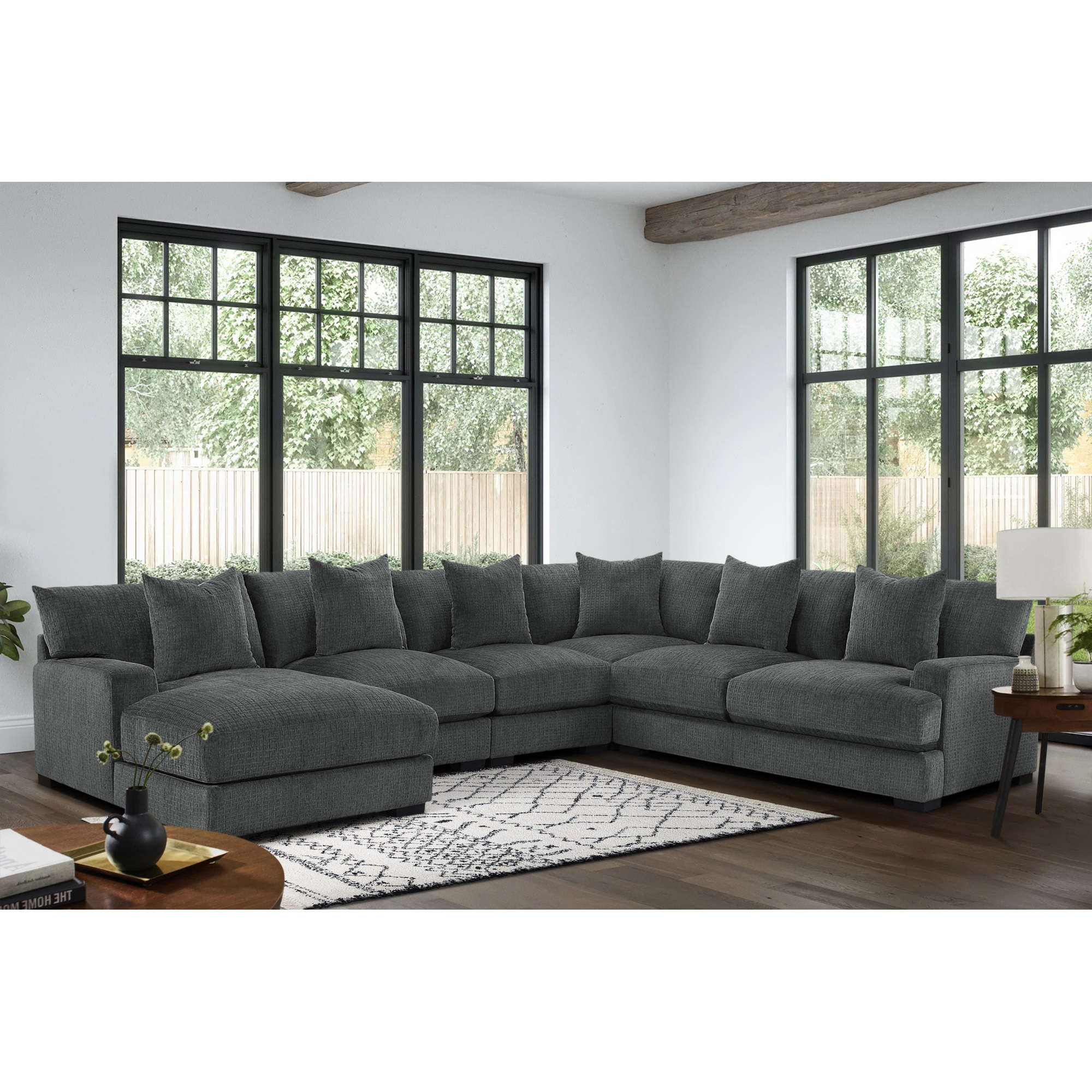 Fergus 145 in. W Chenille Upholstery 5-Piece Modular Sectional Sofa with Left Chaise in Dark Gray