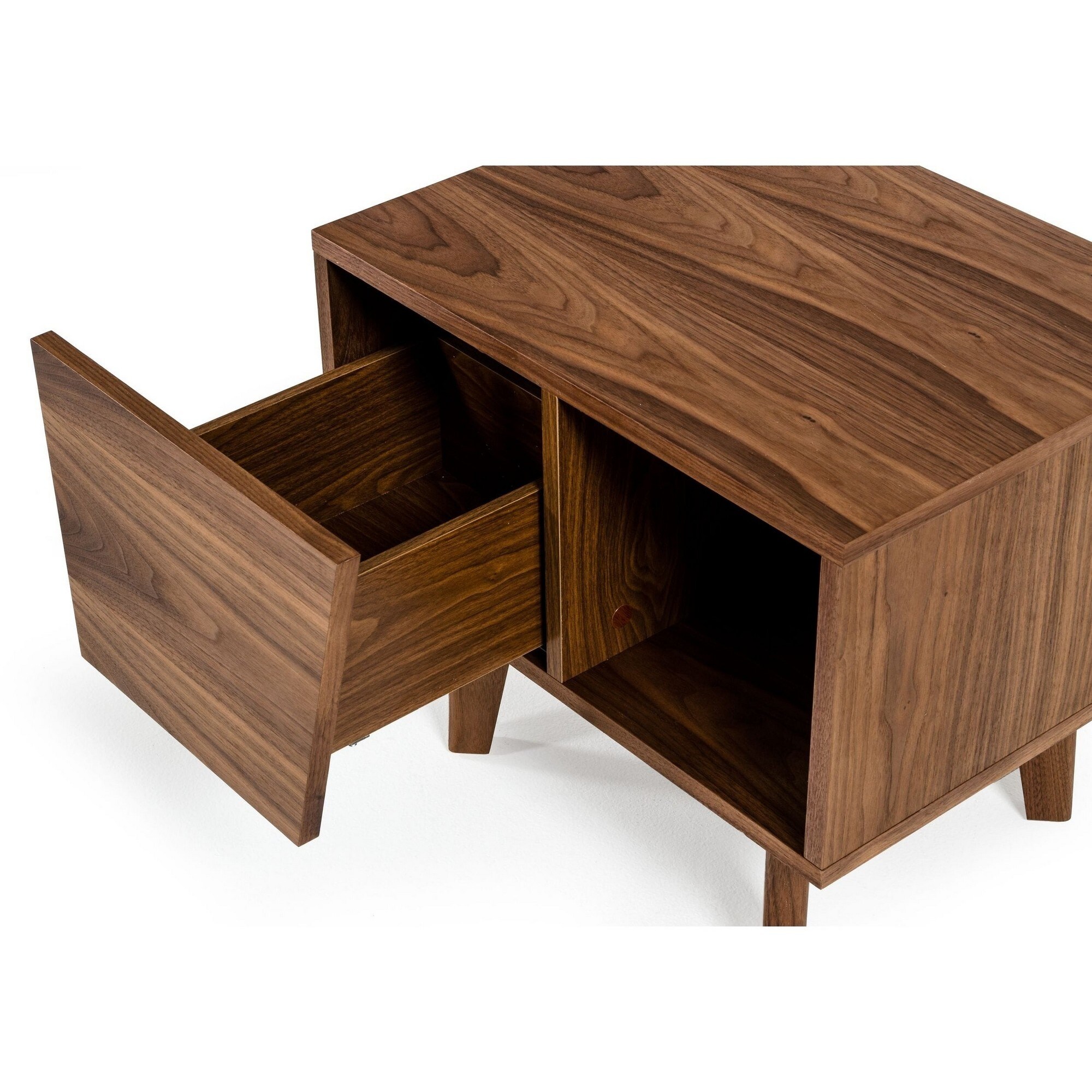 Cid 24 Inch Mid Century Modern Nightstand, 1 Drawer, 1 Compartment, Walnut