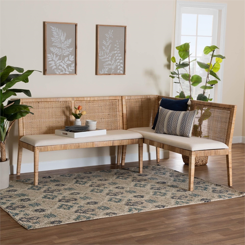 bali & pari Kalimantan Bohemian Light Honey Rattan 2-Piece Banquette Set