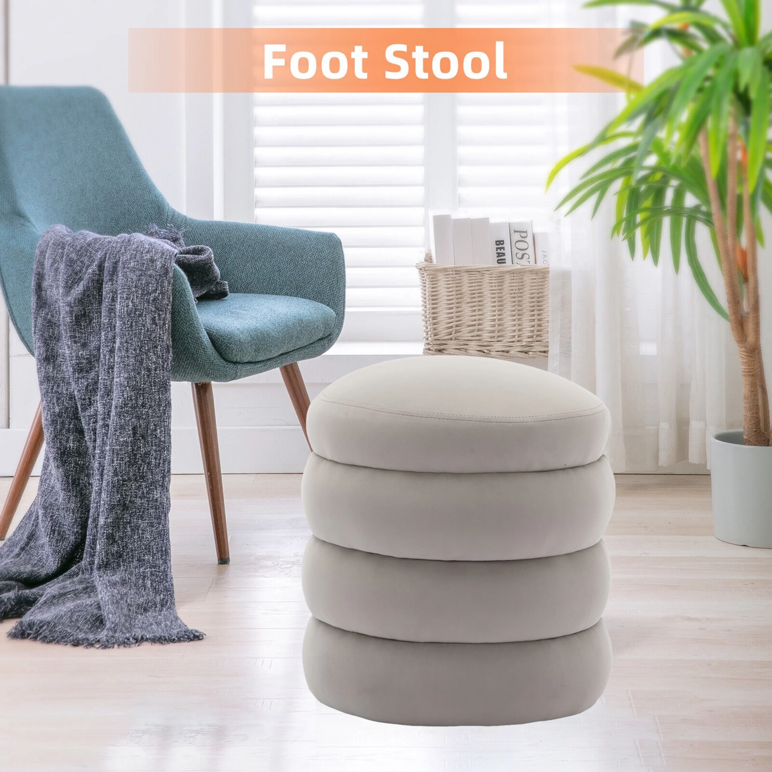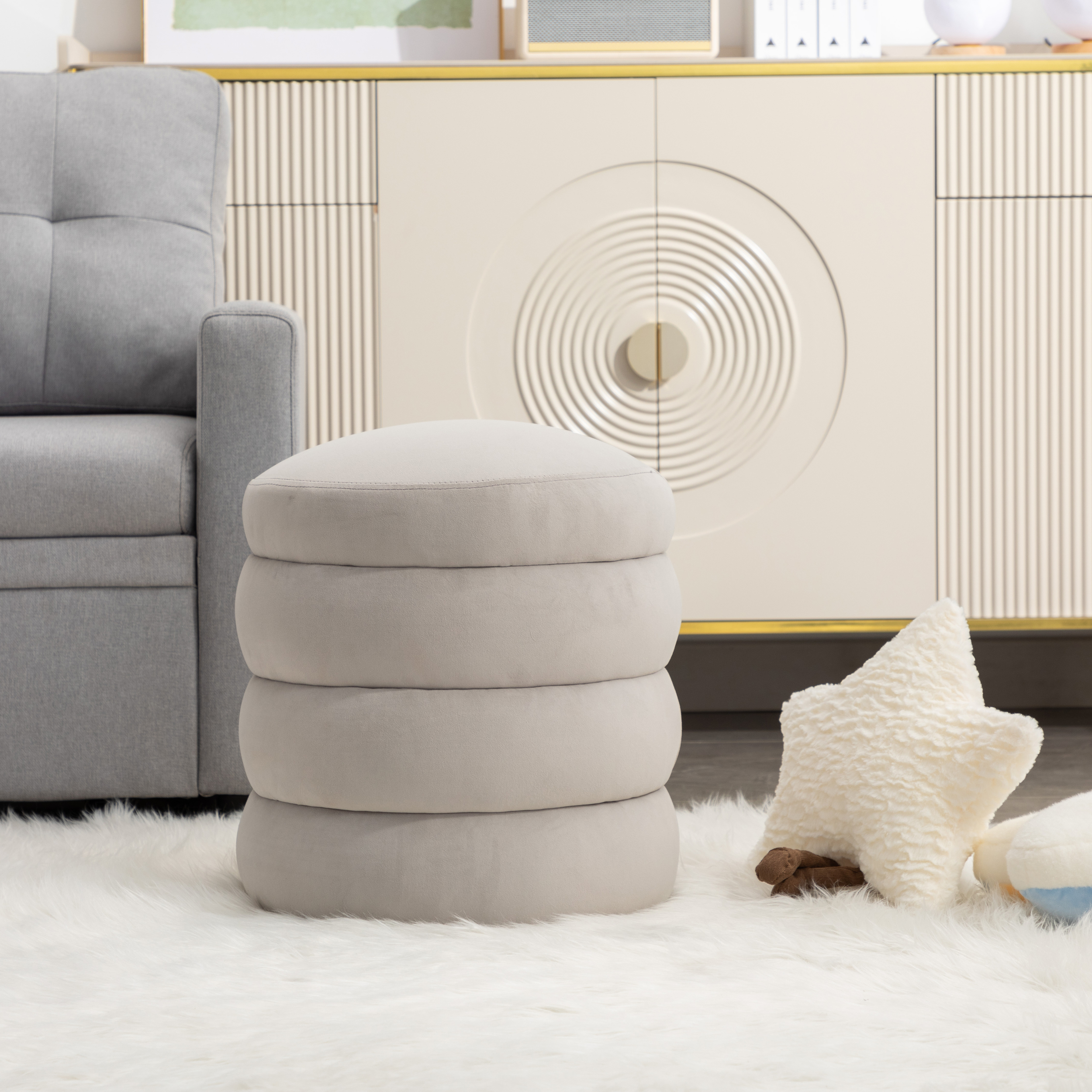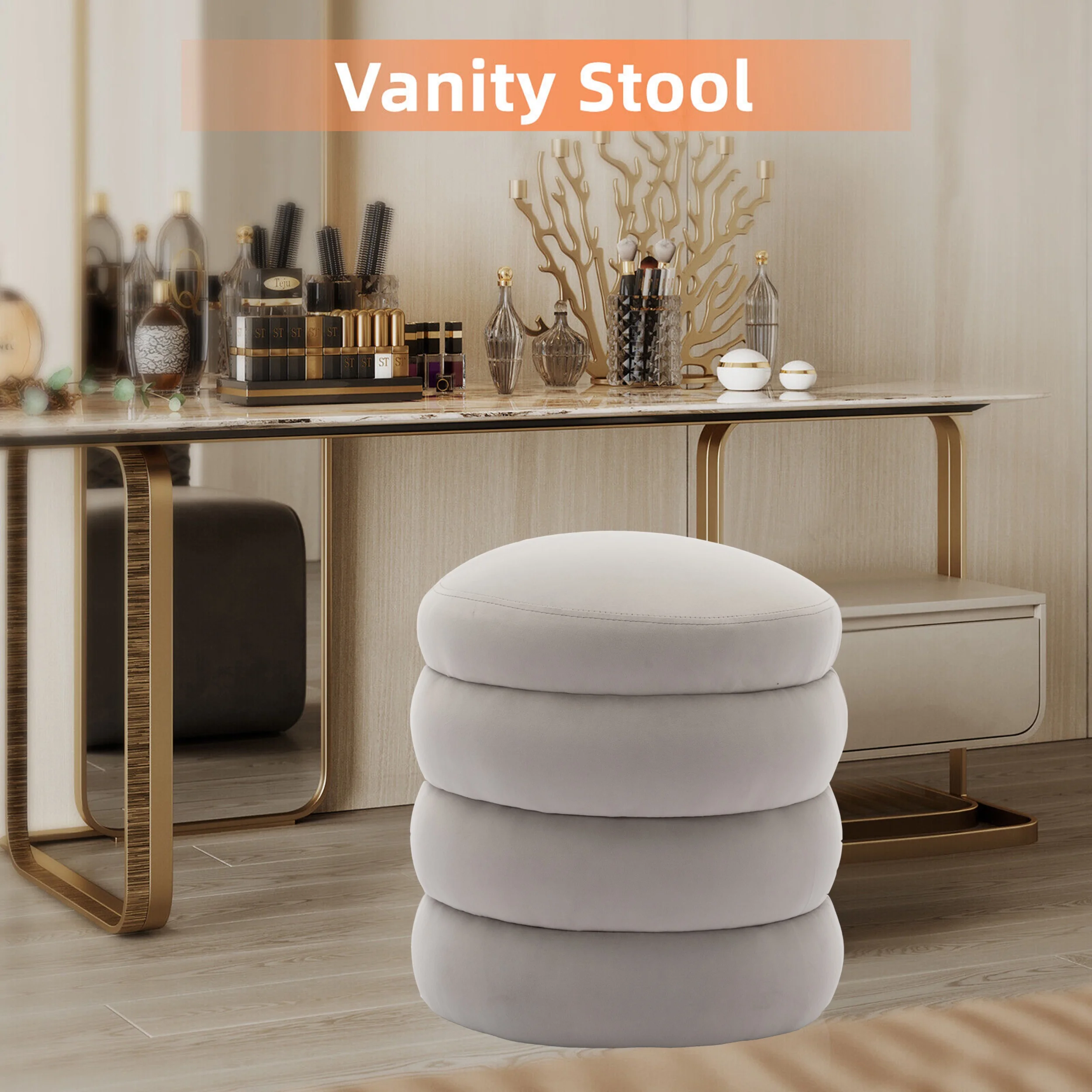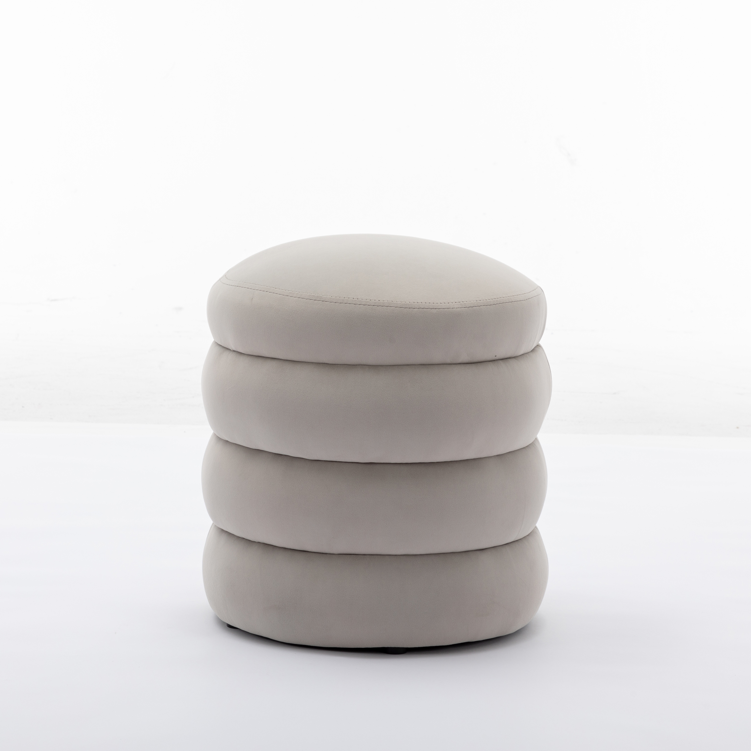 Glavbiku Modern Velvet Sofa Footrest,Upholstered Round Ottoman,18.5" Tufted Vanity Stool,Gray
