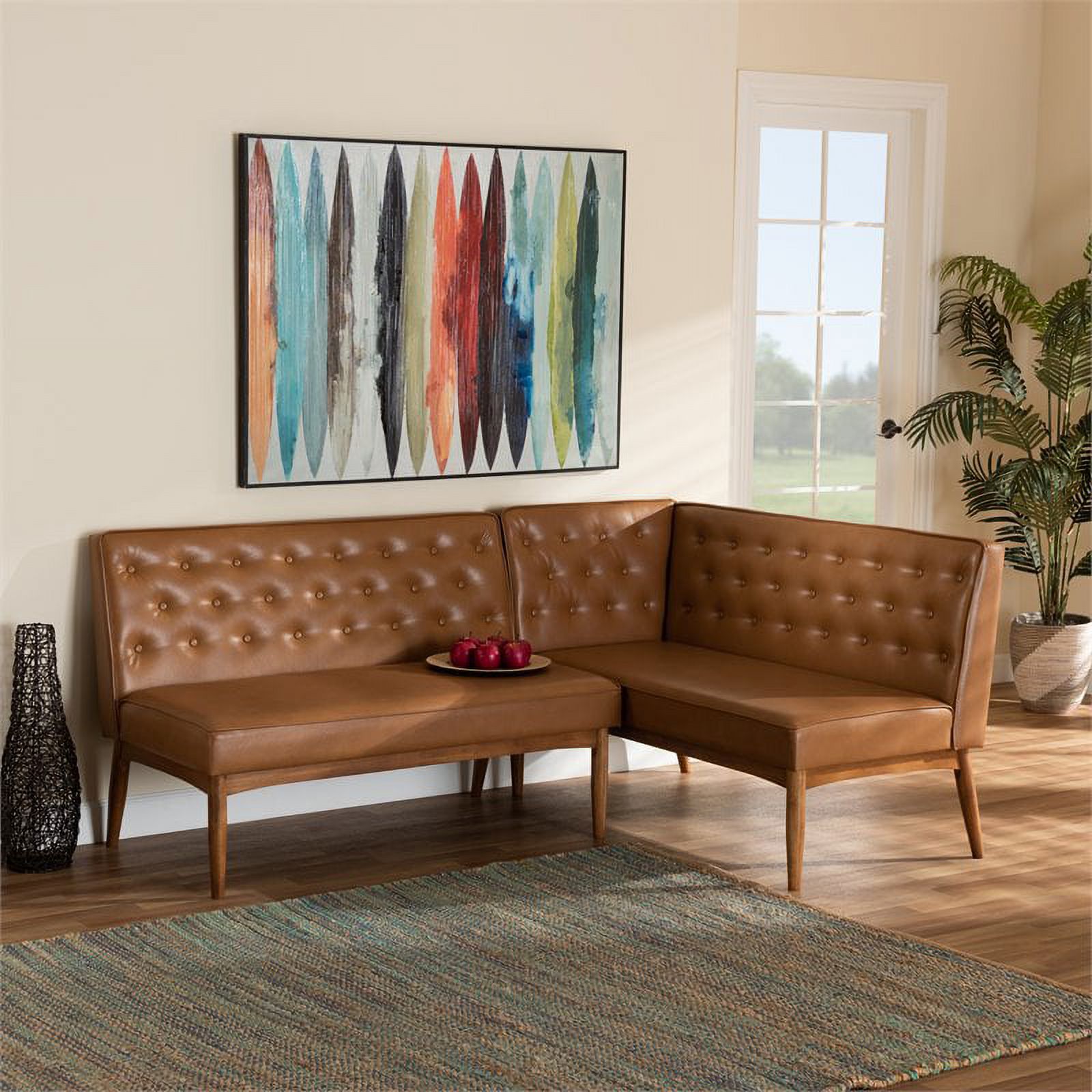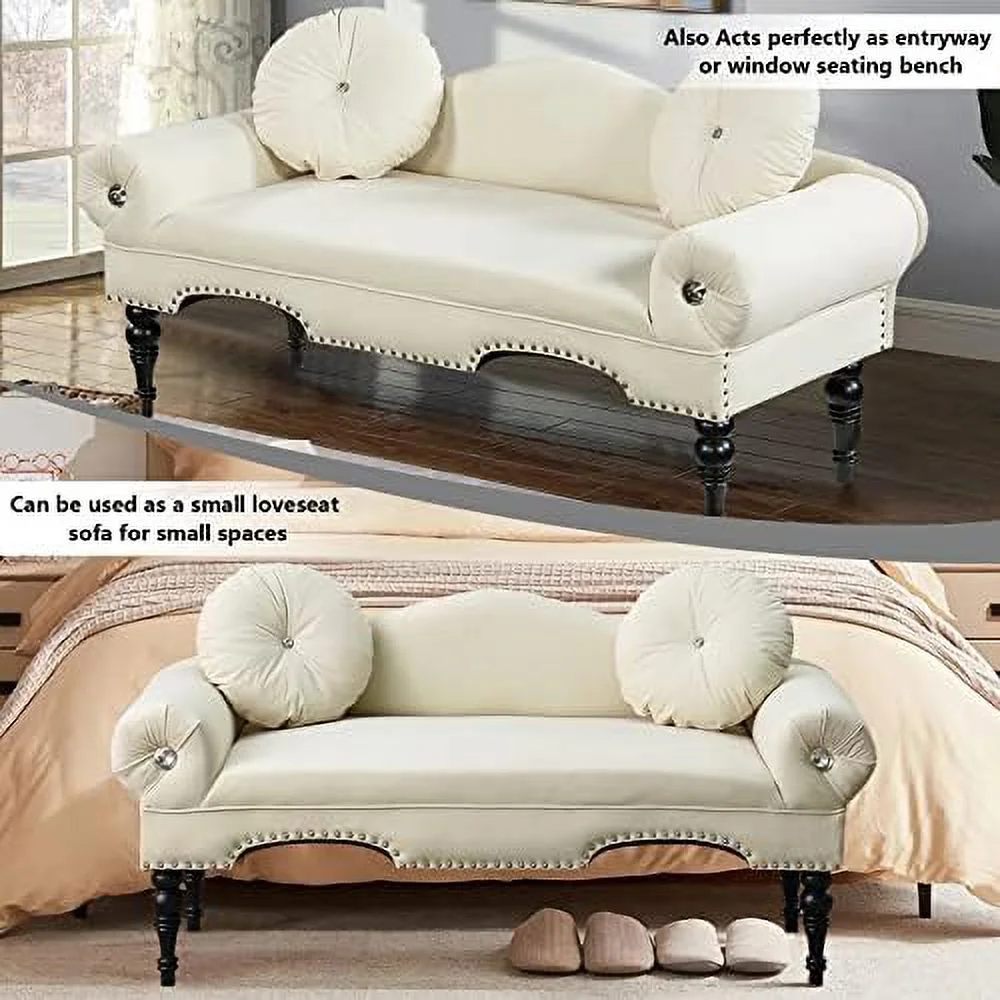Maklaine Contemporary Farmhouse Upholstered Banquette in White & Grey