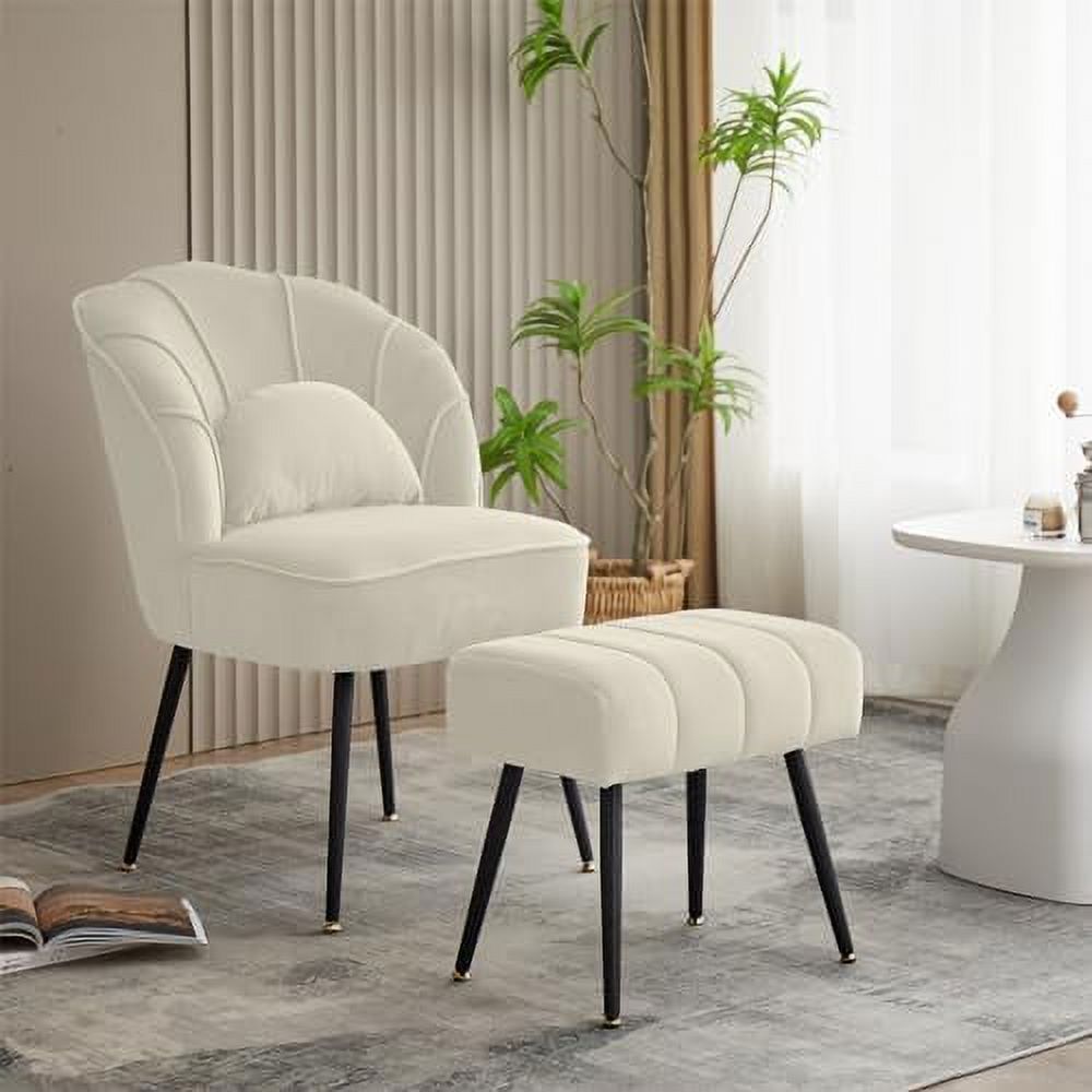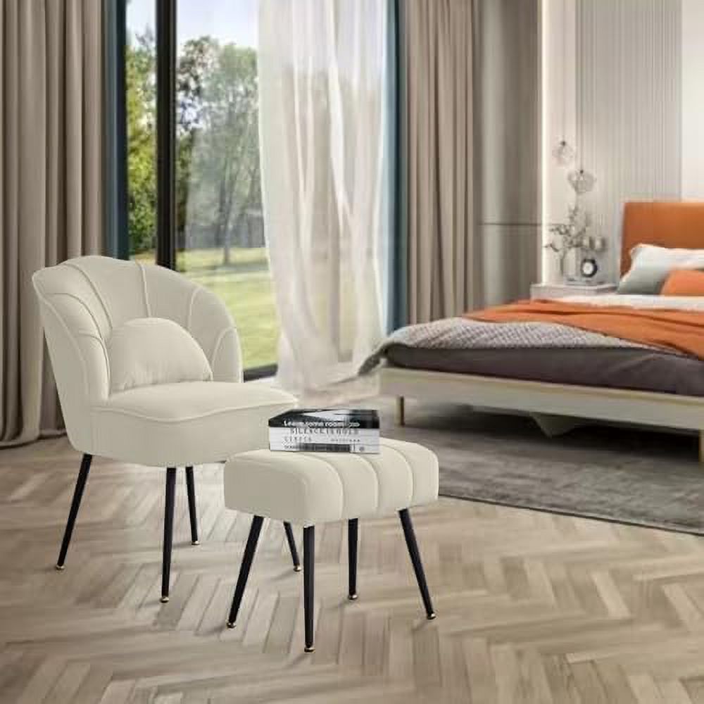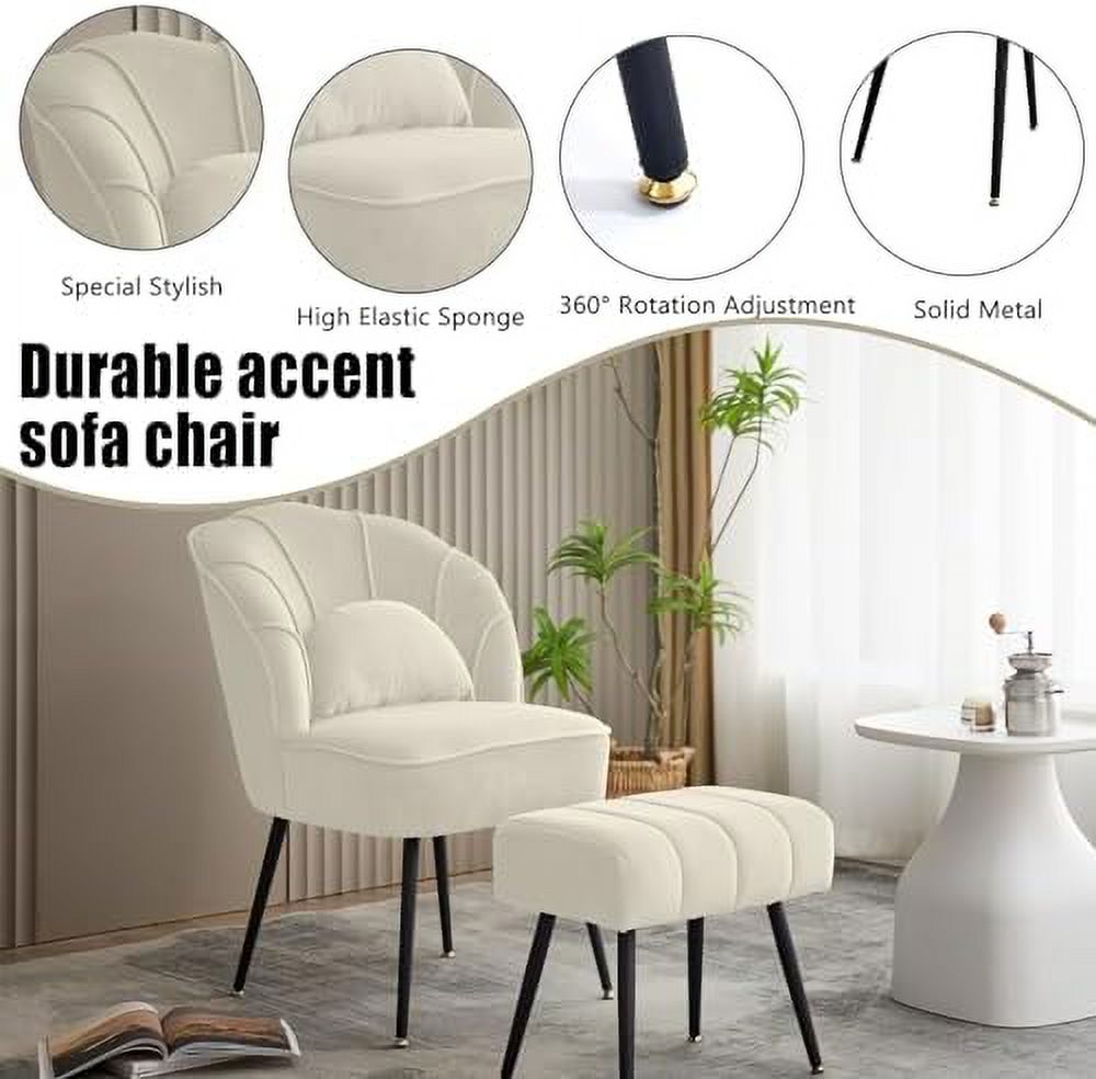 KBANZIBIU Velvet Accent Chairs with Ottoman Upholstered Modern Single Sofa Side Chair for Living Room Bedroom Office Reading Club Coffee Chair with Metal Legs (Beige)