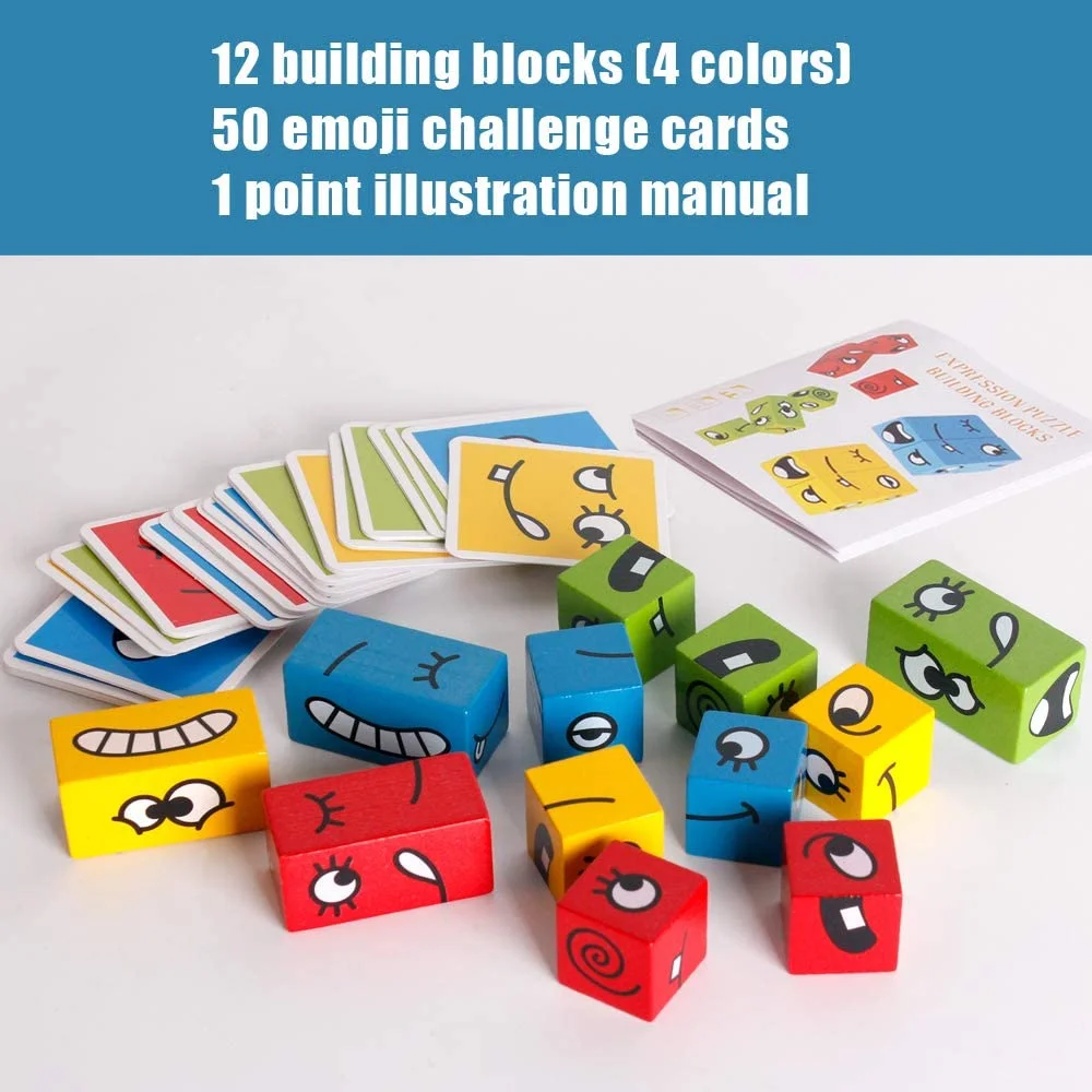 Face-Changing Cube Building Blocks for Children,Funny Expression Puzzle Colorful for Kids,Wooden Expressions Matching Block Puzzles Building Cubes,Wooden Blocks Board Game Puzzle Toys 2020 New