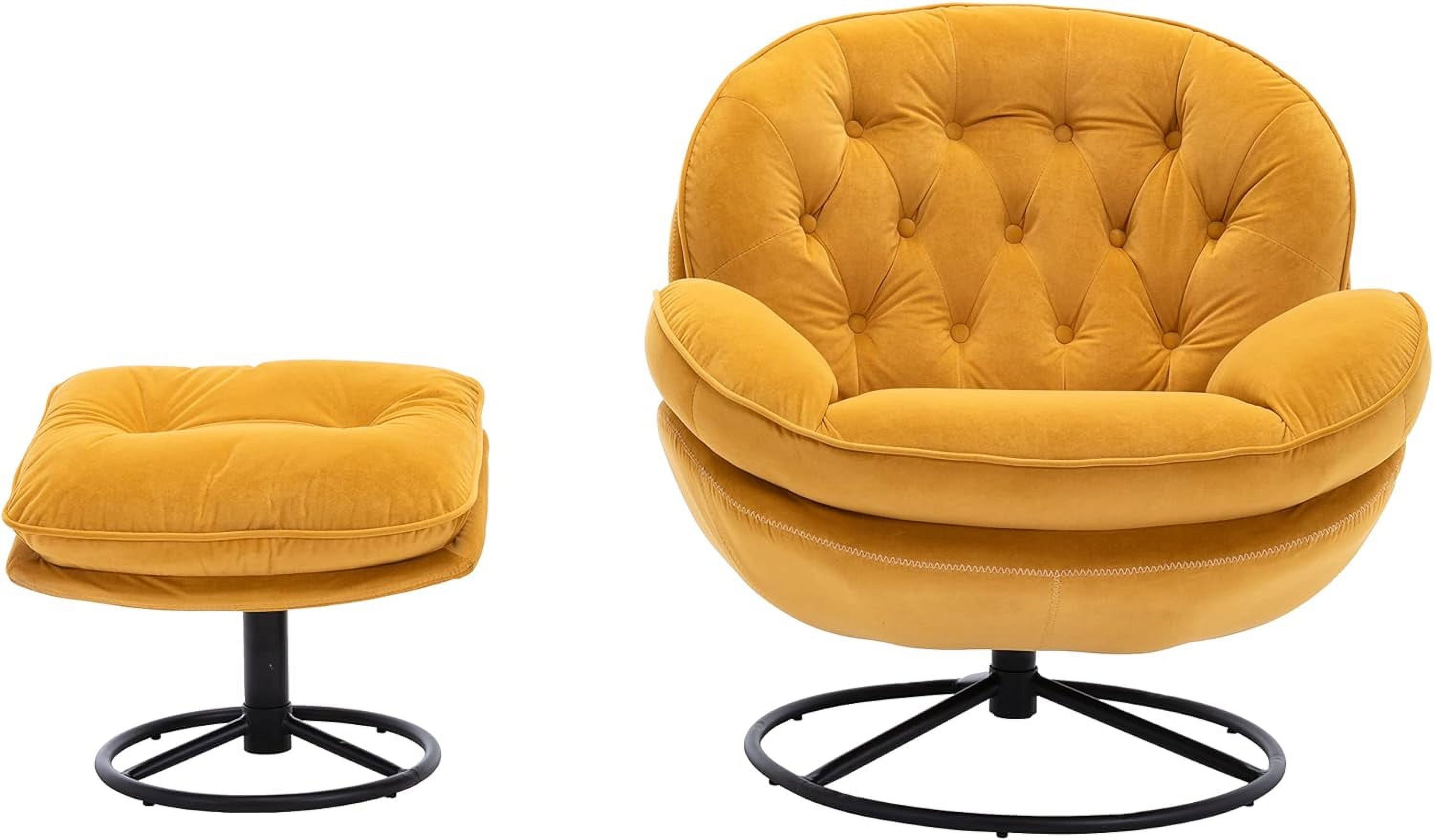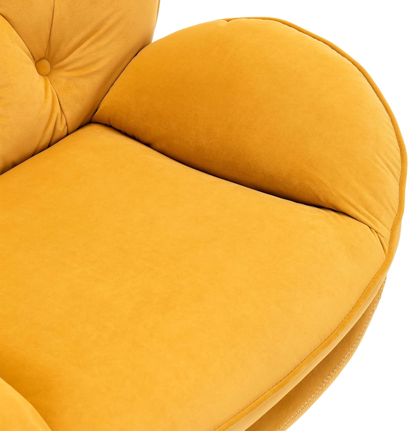 Accent Armrest Chair With Ottoman, Modern Velvet Upholstered Lounge Sofa Chair TV Chair With Metal Frame And Legs For Living Room, Bedroom, Office, Yellow