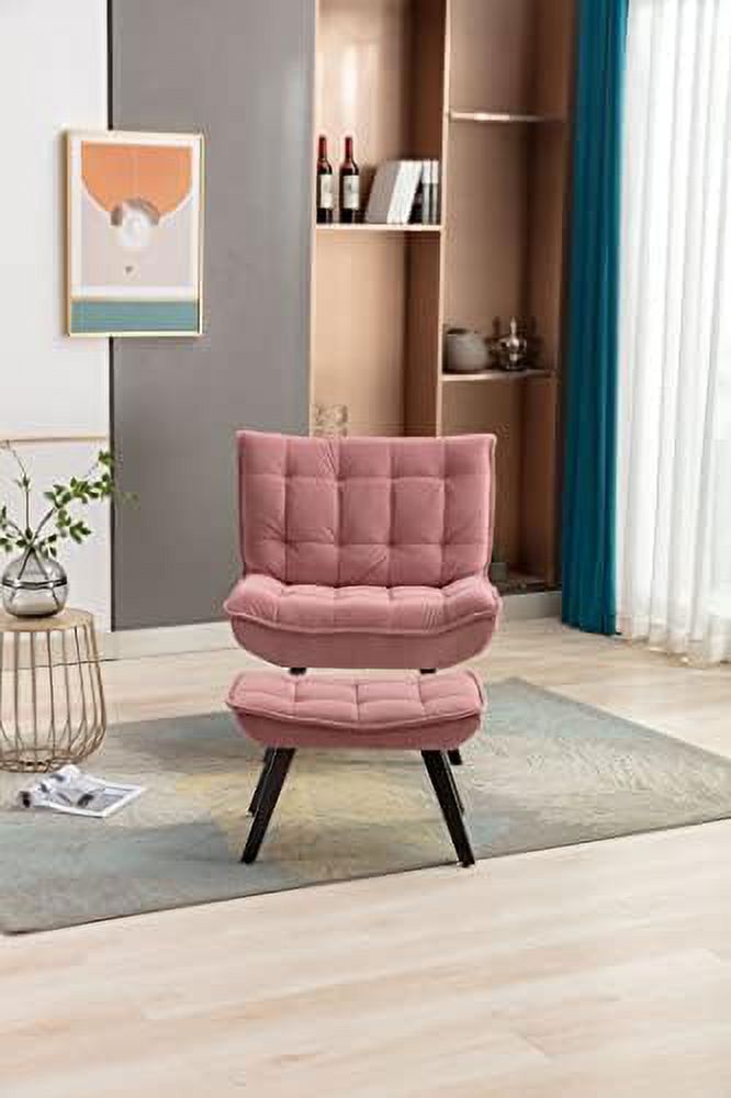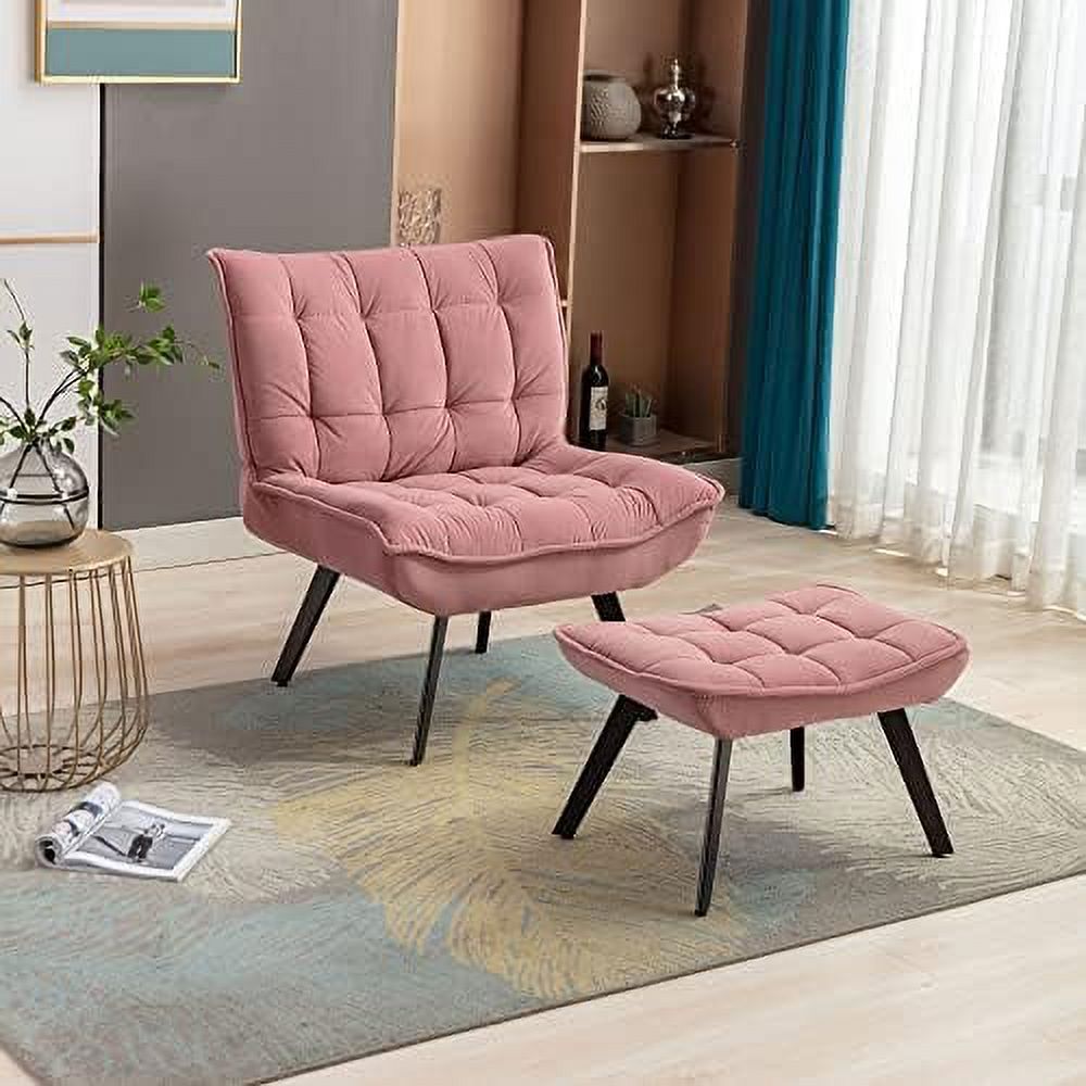 KBANZIBIU Accent Chair with Ottoman Single Sofa Chair with Velvet Fabric & Metal Legs Upholstered Leisure Chair Club Chair for Living Room Bed Room Office (Pink)
