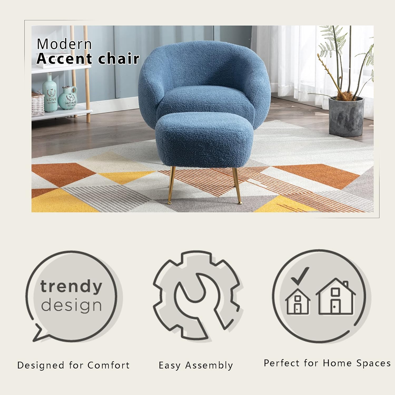 W Modern Comfy Leisure Accent Chair With Ottoman, Teddy Short Plush Particle Velvet Sofa Armchair For Bedroom, Living Room