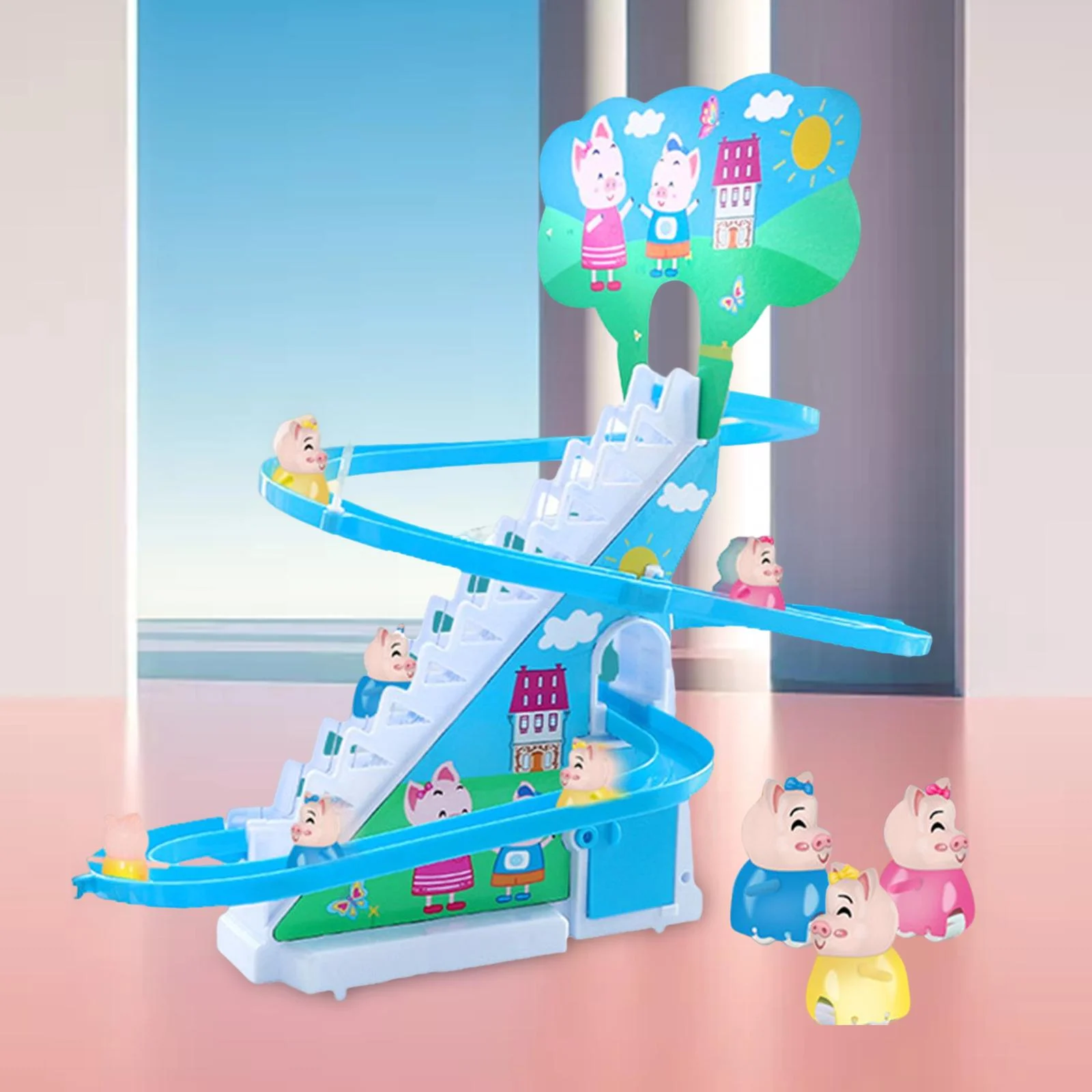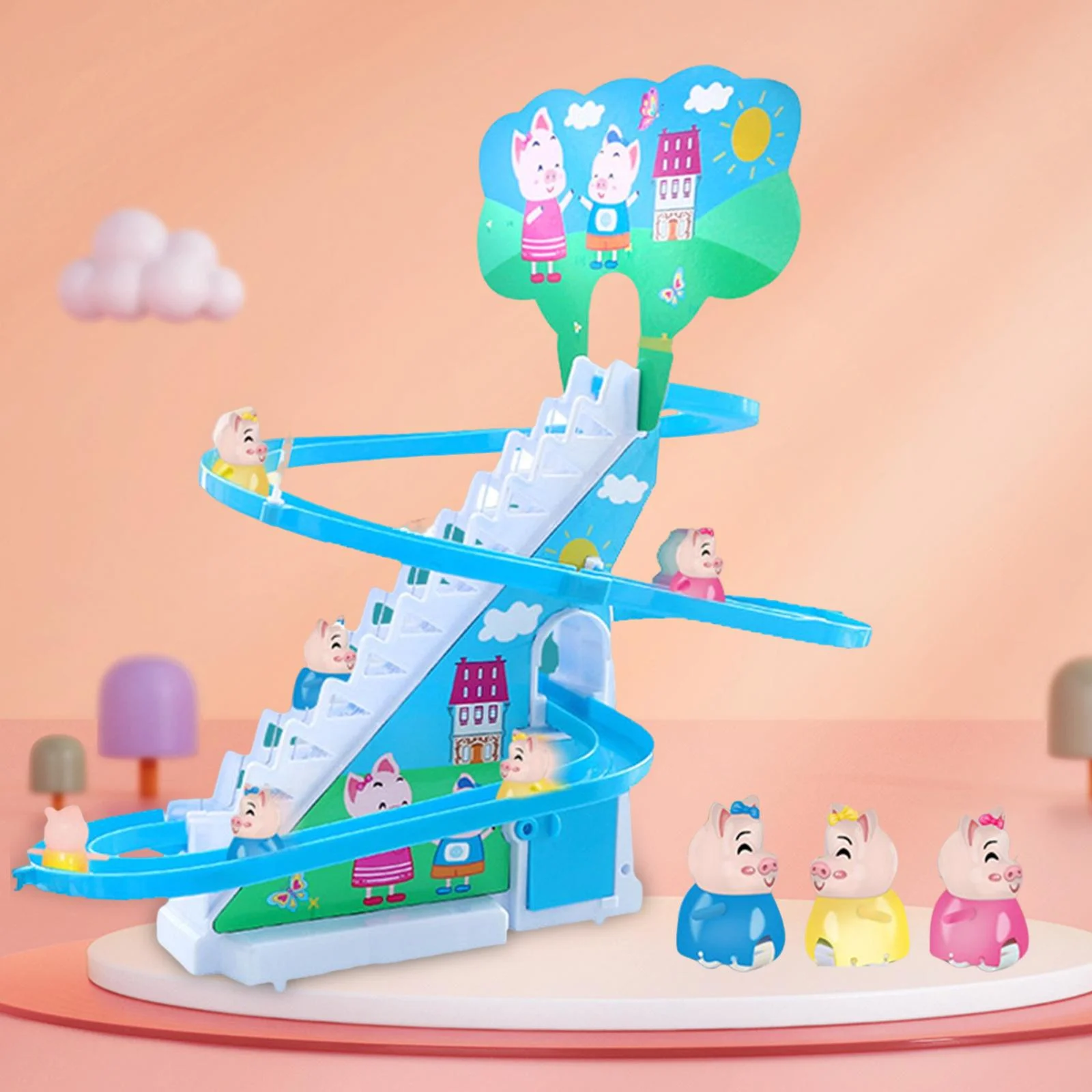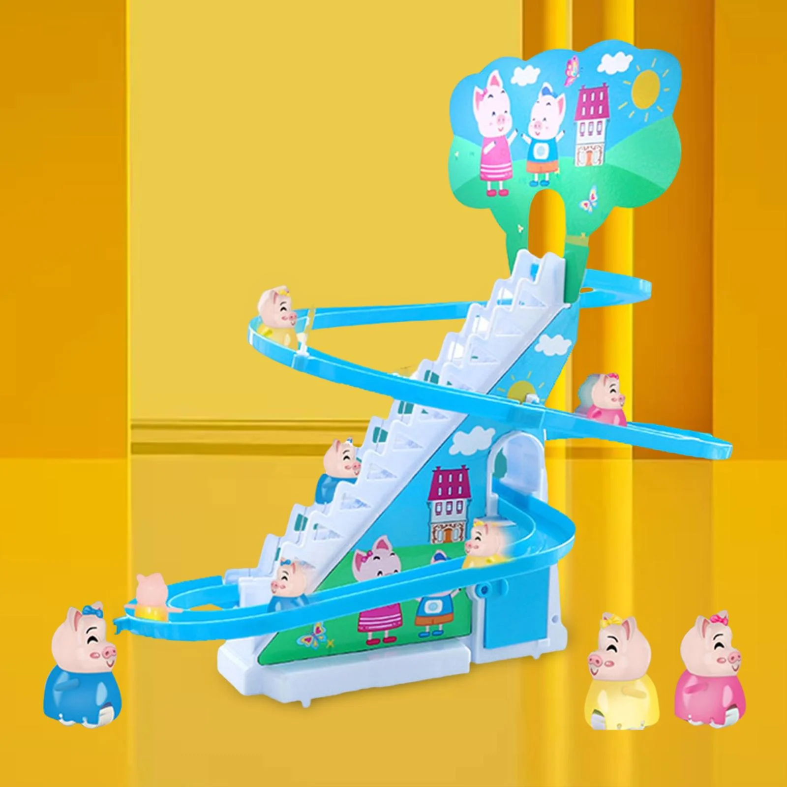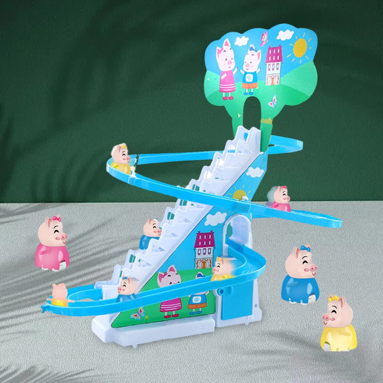 Electric Climbing Stair Toy with LED Flashing Lights Children's Roller Coaster Toy Set Small Toy , 6 s
