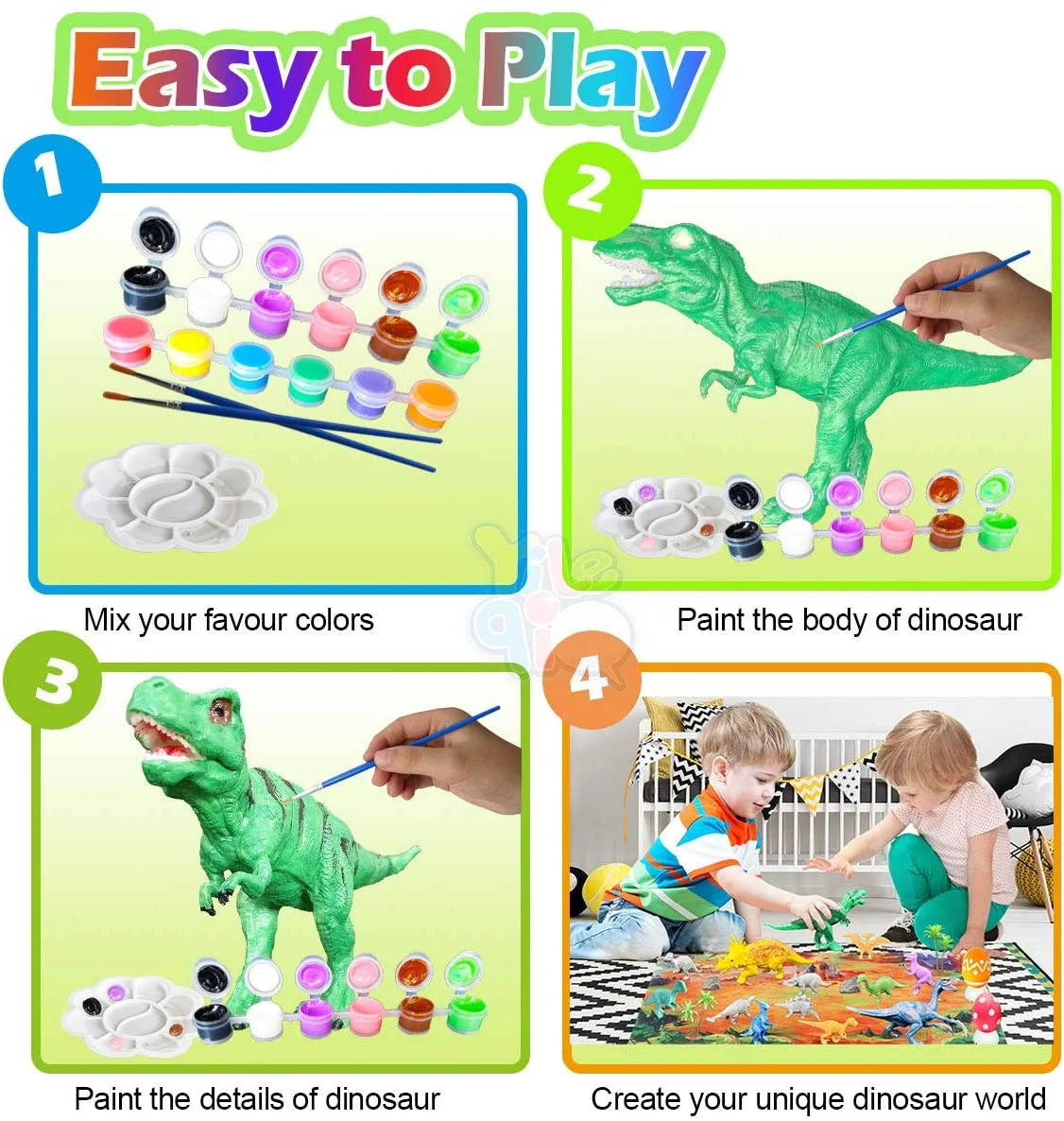 EASTIN Kids Crafts and Arts Dinosaur Painting Kit with Play Mat, Dinosaurs Toys Art and Craft for Boys Girls Age 4 5 6 7 8 Years Old, Fun DIY Kids Paint Birthday Gifts for Children Animal Set