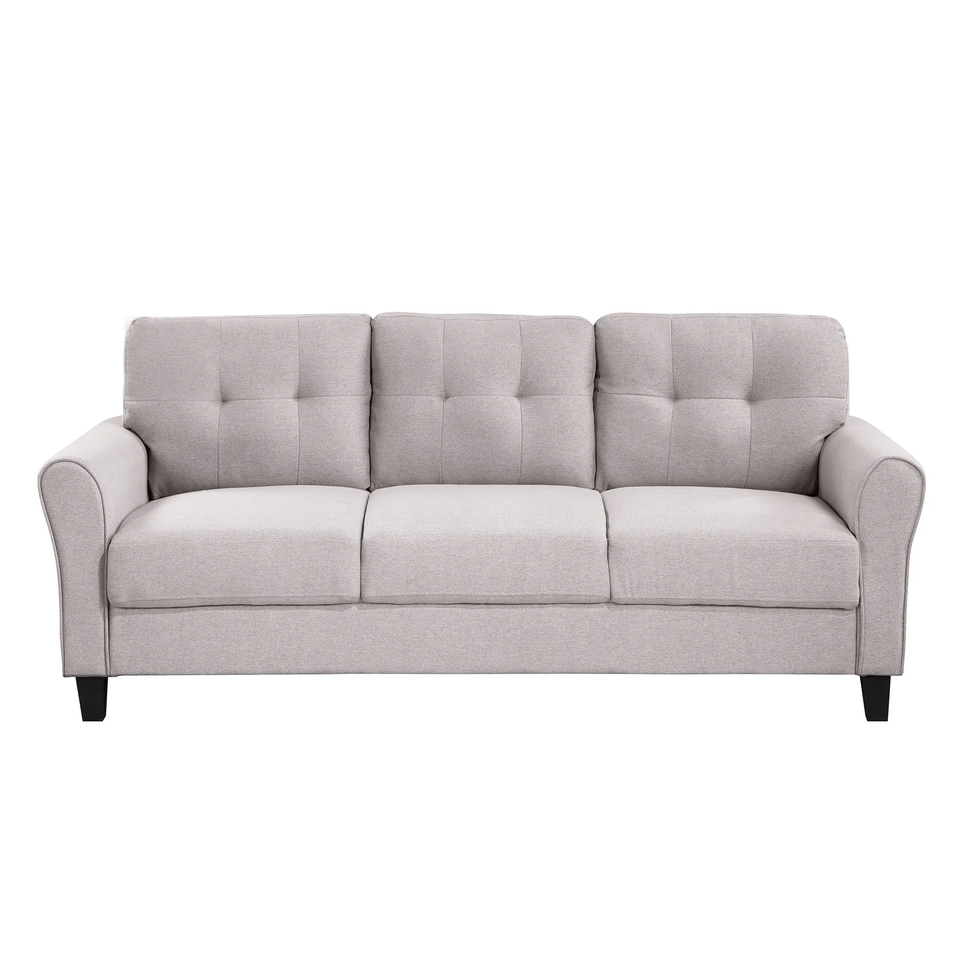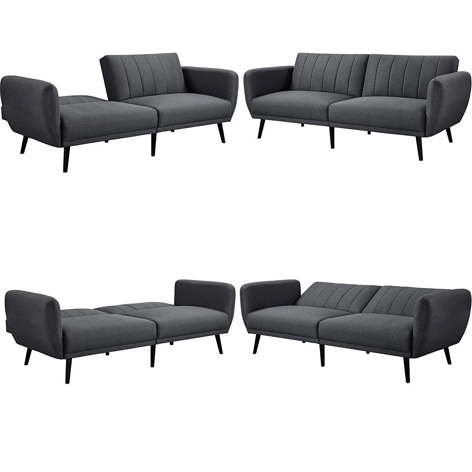 Modern Scandinavian Dark Grey Linen Upholstered Sofa Bed with Wooden Legs