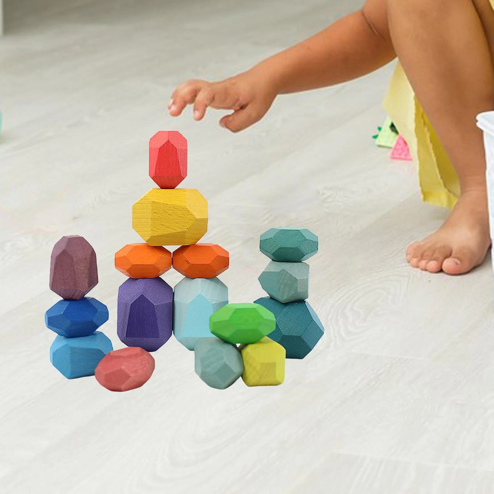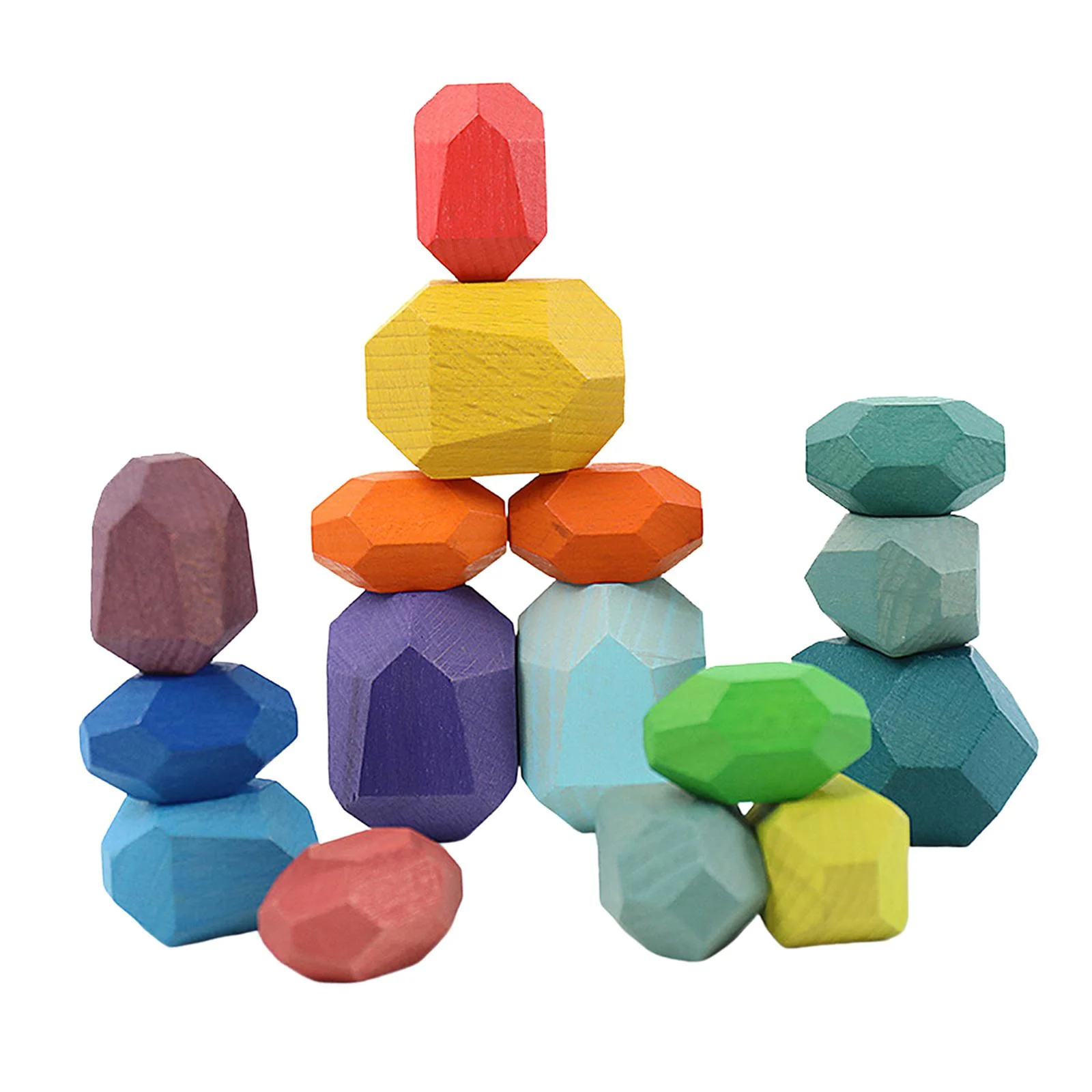 Wooden Sorting Stacking Balancing Stone Montessori Lightweight Educational Colorful Building Blocks Stacking Game for 3 Years up Children Style A