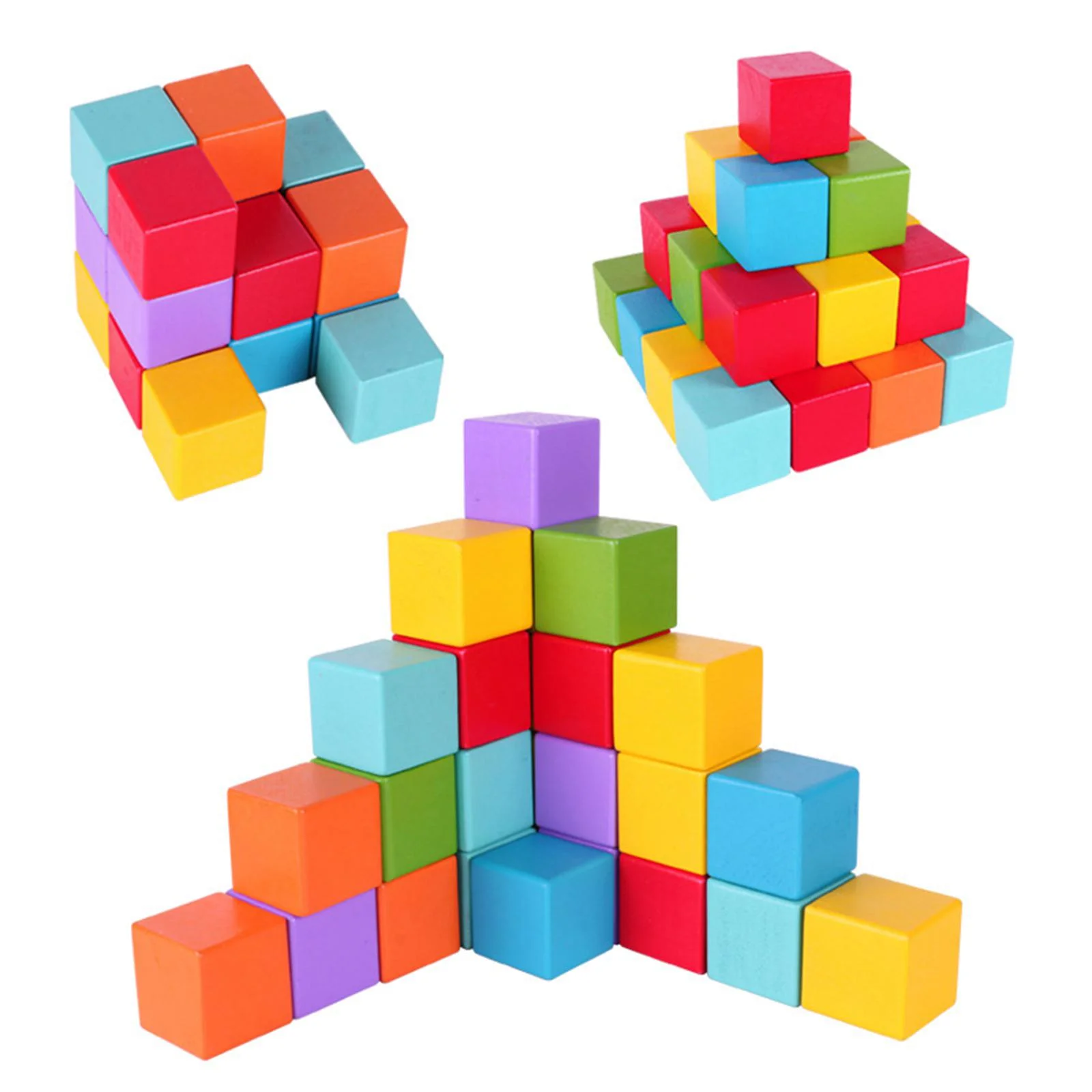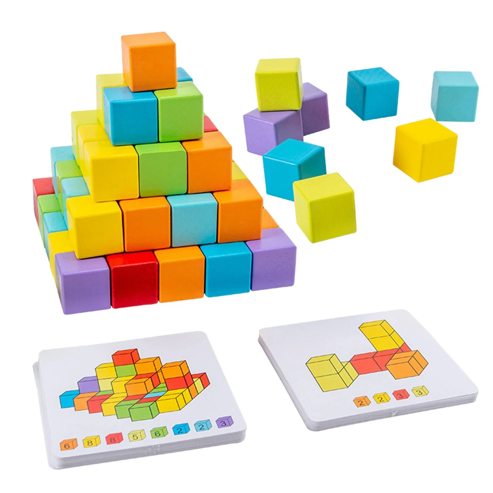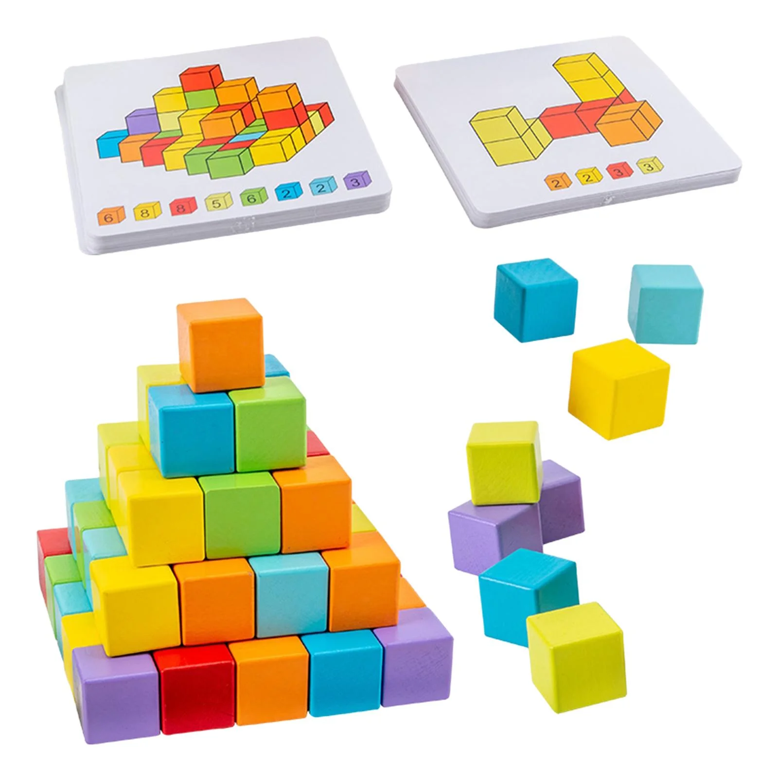 Wooden Building Blocks Stacking Game with Double Side Cards Sensory Toys Blocks
