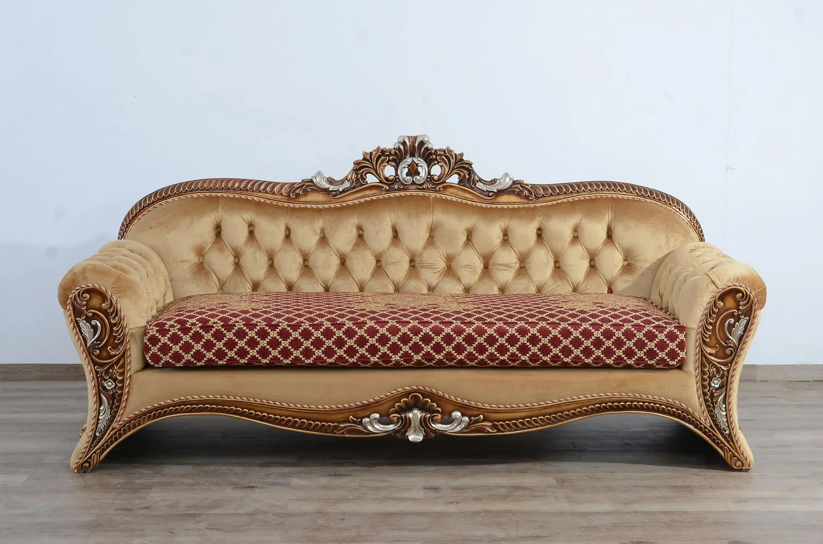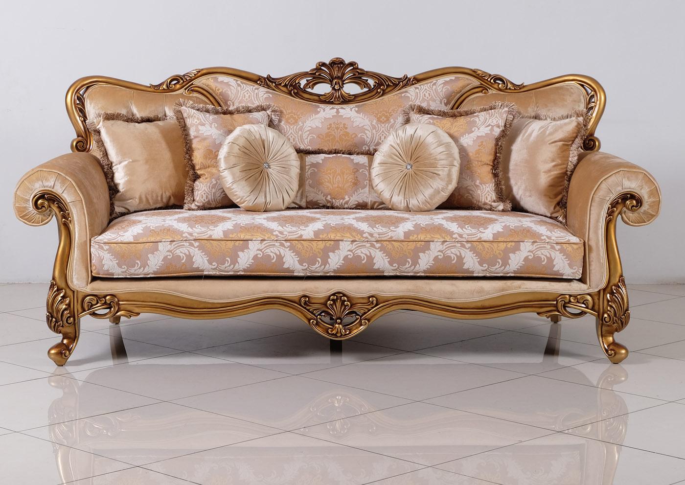 Luxury Golden Bronze Wood Trim CLEOPATRA Sofa EUROPEAN FURNITURE Traditional