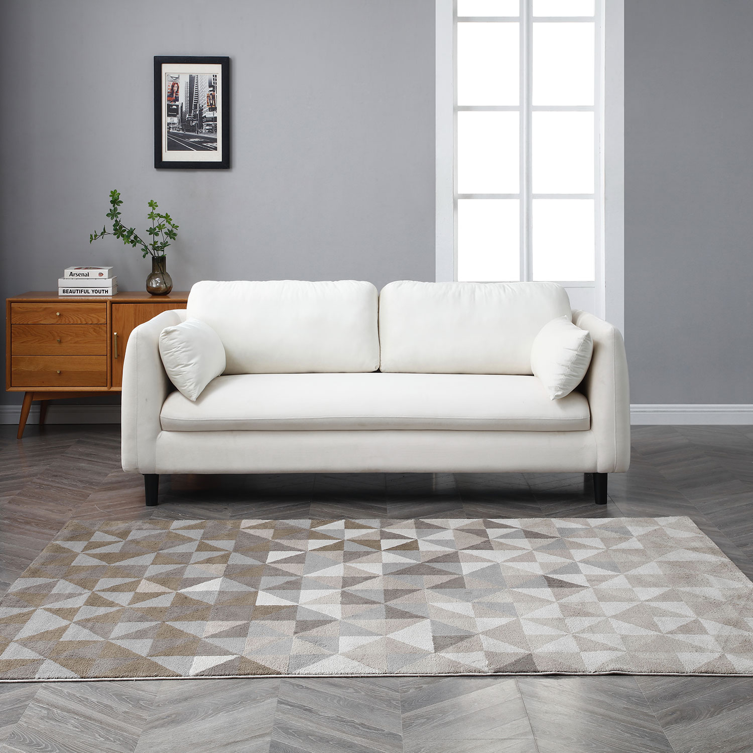 Sunset Trading Americana Box Cushion Fabric Slipcovered Sofa in Light Gray