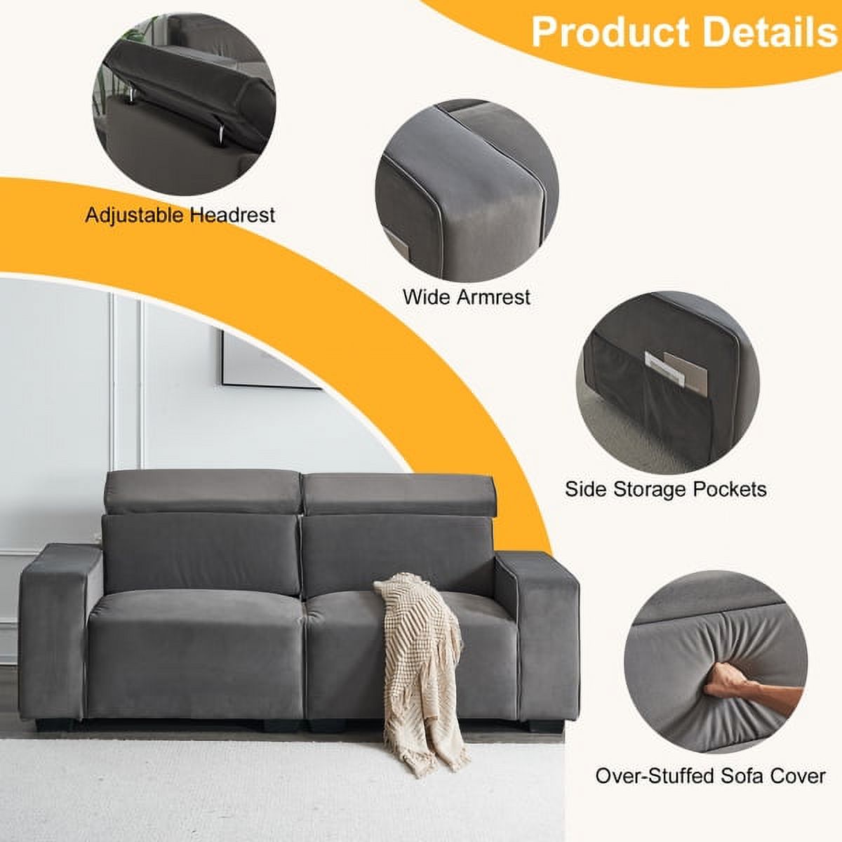 Pemberly Row Thick Velvet Fabric 2Pc Living Room Set Made With Wood in Gray