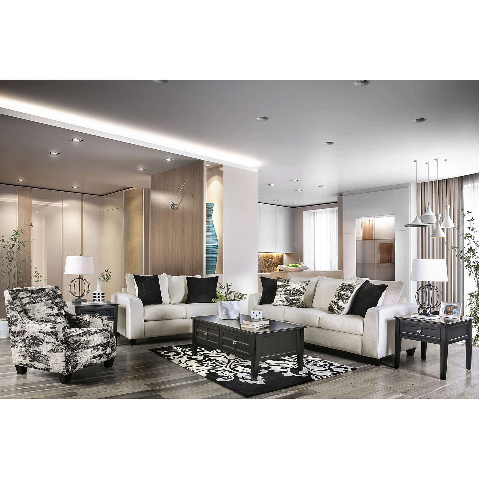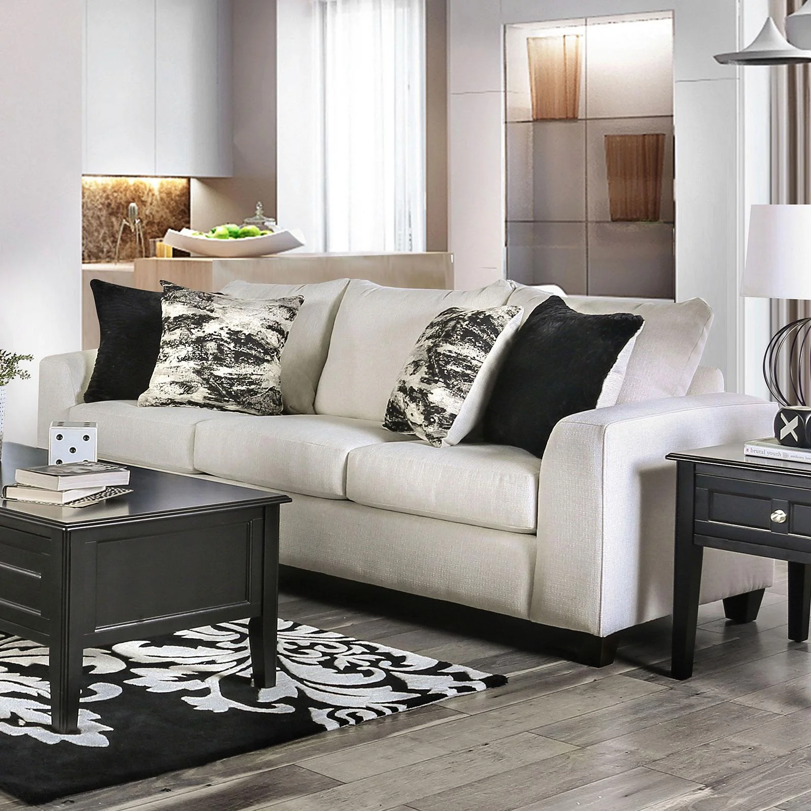 Transitional Ivory & Gray Linen-like Fabric Living Room Set 3pcs FOA Barnett