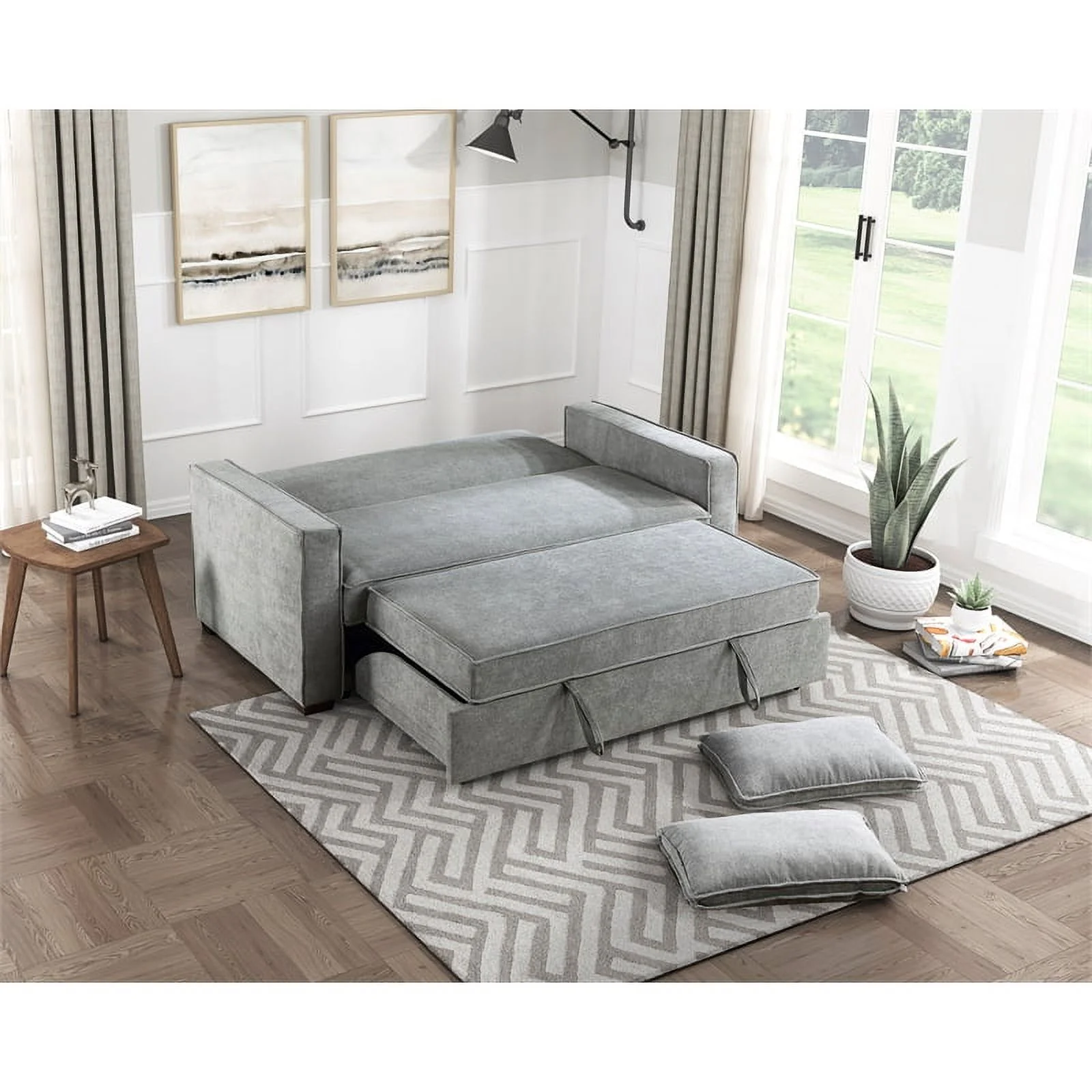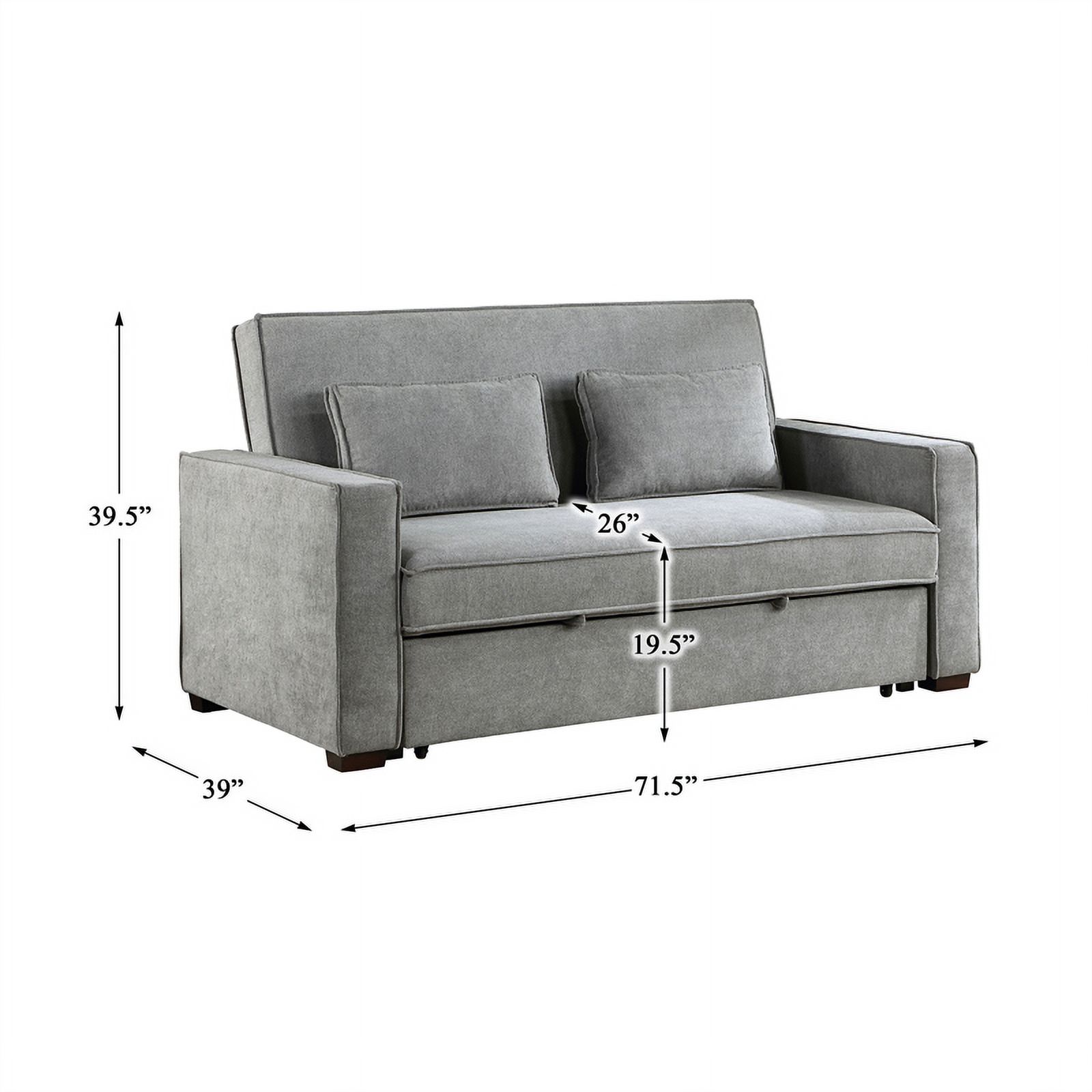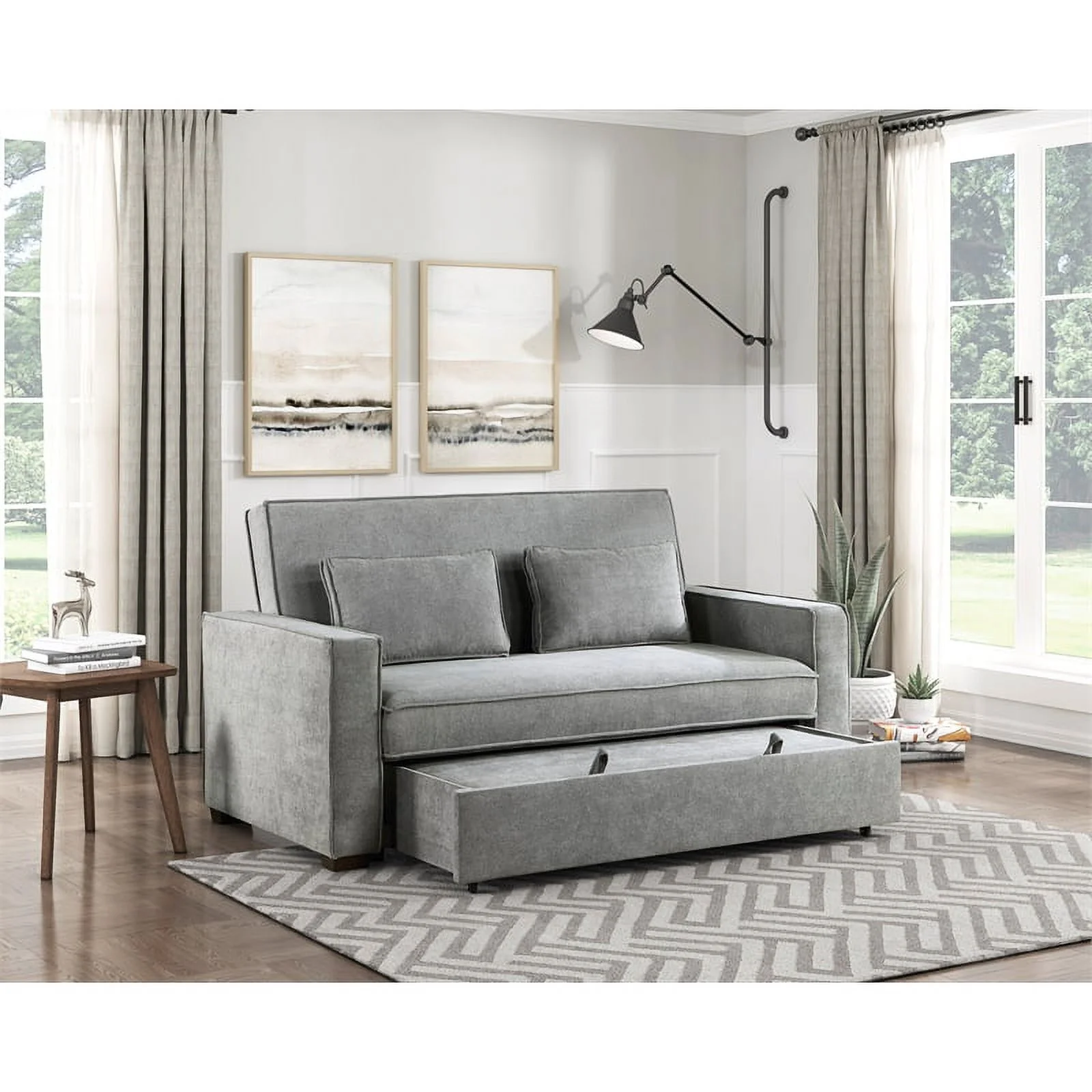 Lexicon Alta Fabric Upholstered Convertible Sofa with Pull Out Bed in Gray Color
