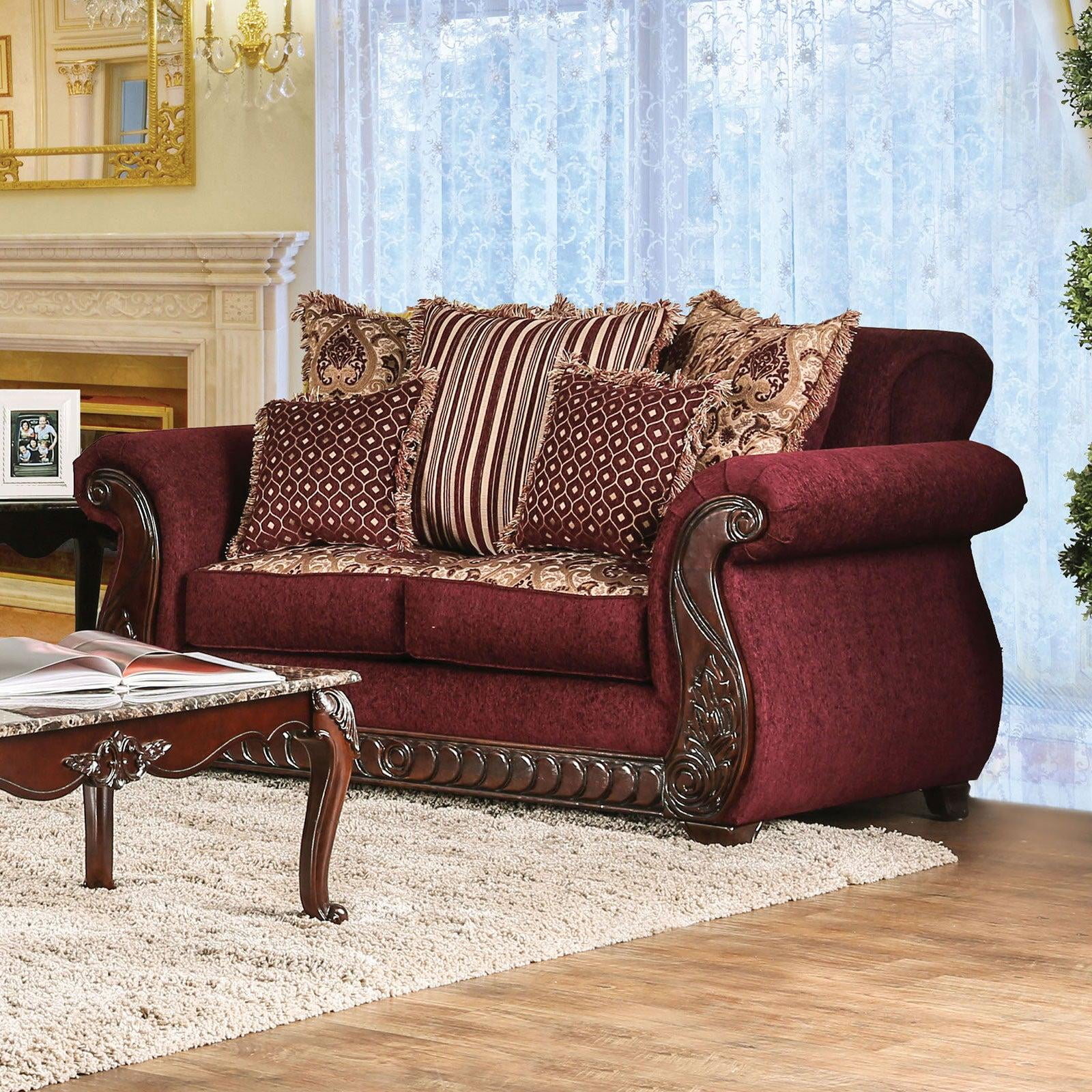 Traditional Wine & Gold Fabric Living Room Set 3pcs Furniture of America Tabitha