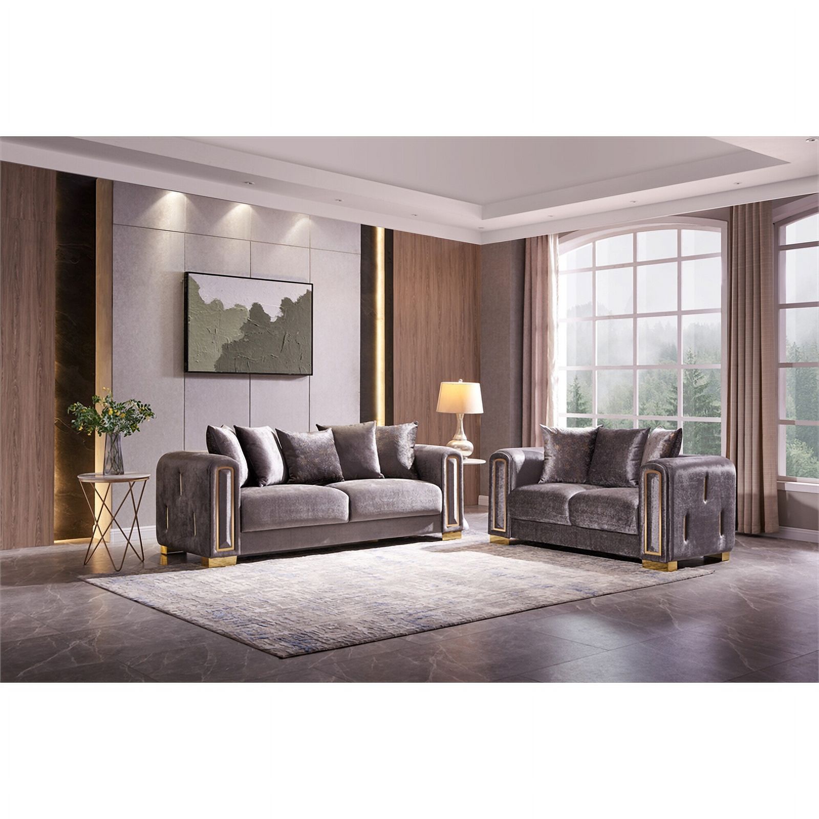 Impreza Thick Velvet Fabric 2Pc Living Room Set Made With Wood in Gray