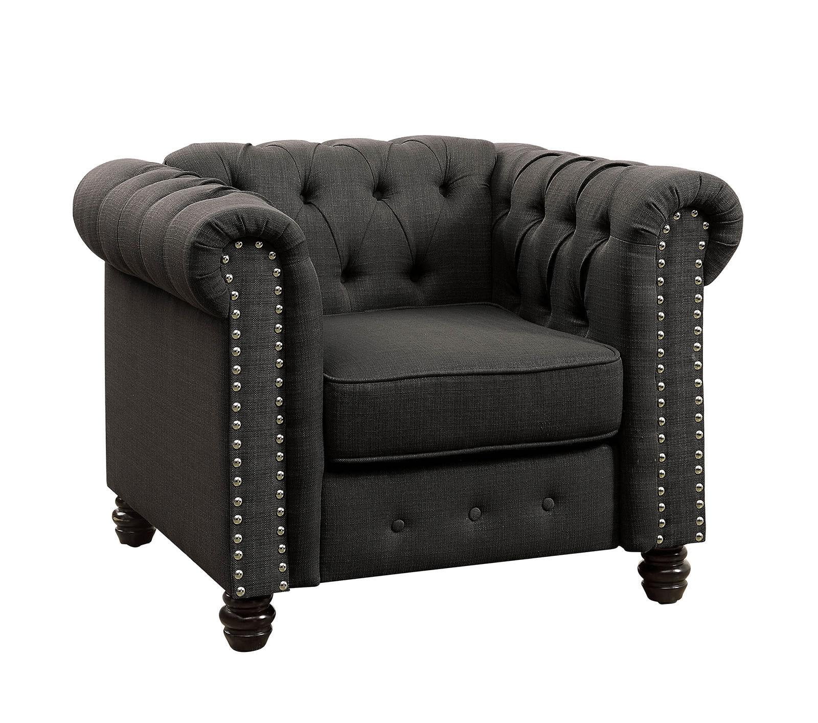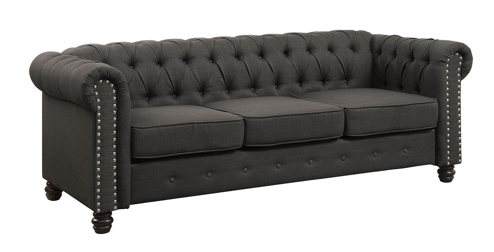 Traditional Gray Linen-like Fabric Living Room Set 3pcs FOA Winifred