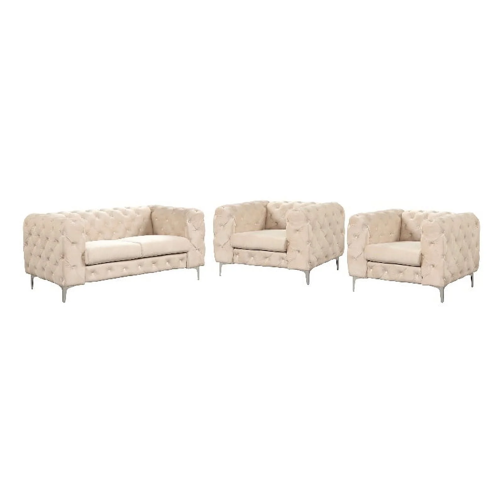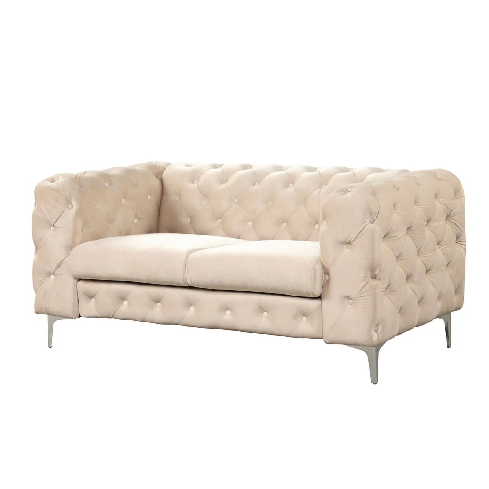 RN Furnishings Loveseat & chairs Velvet Fabric Living room furniture Set -Beige