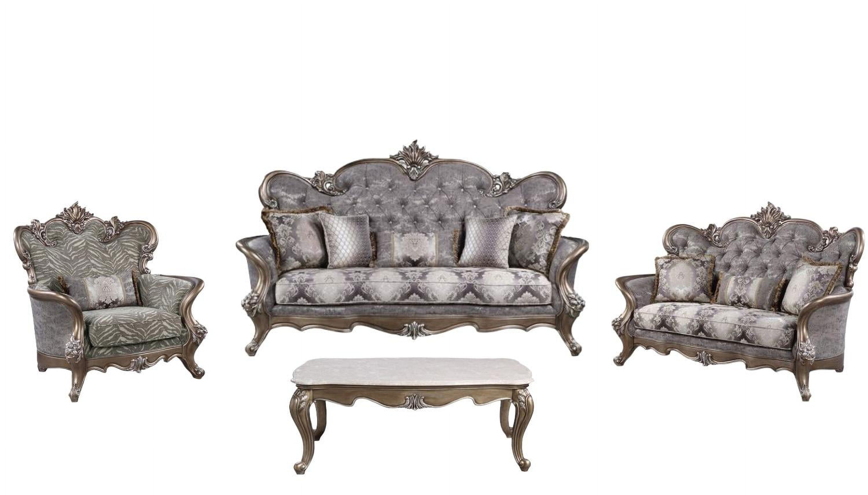 Traditional Gray Fabric 4pcs Living Room Set by Acme Elozzol LV00299-4pcs