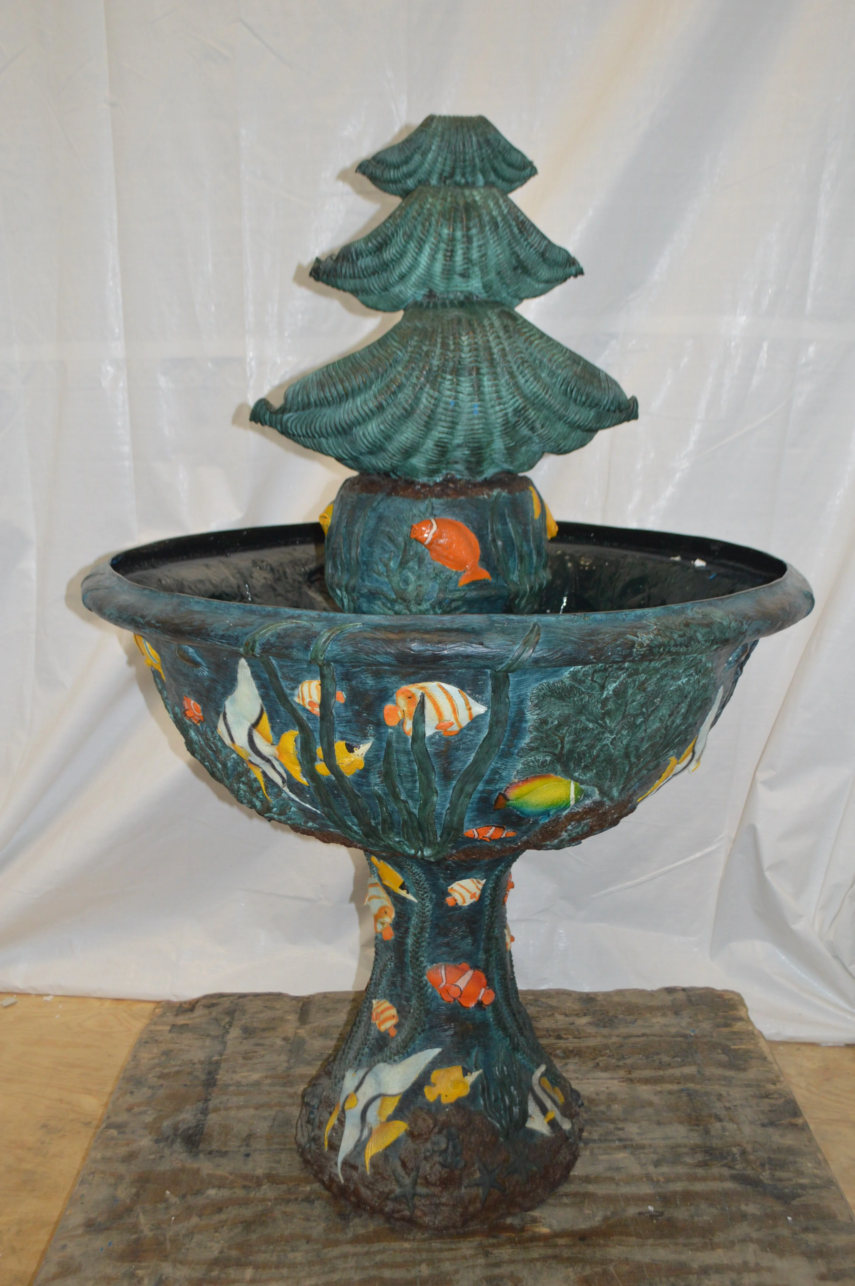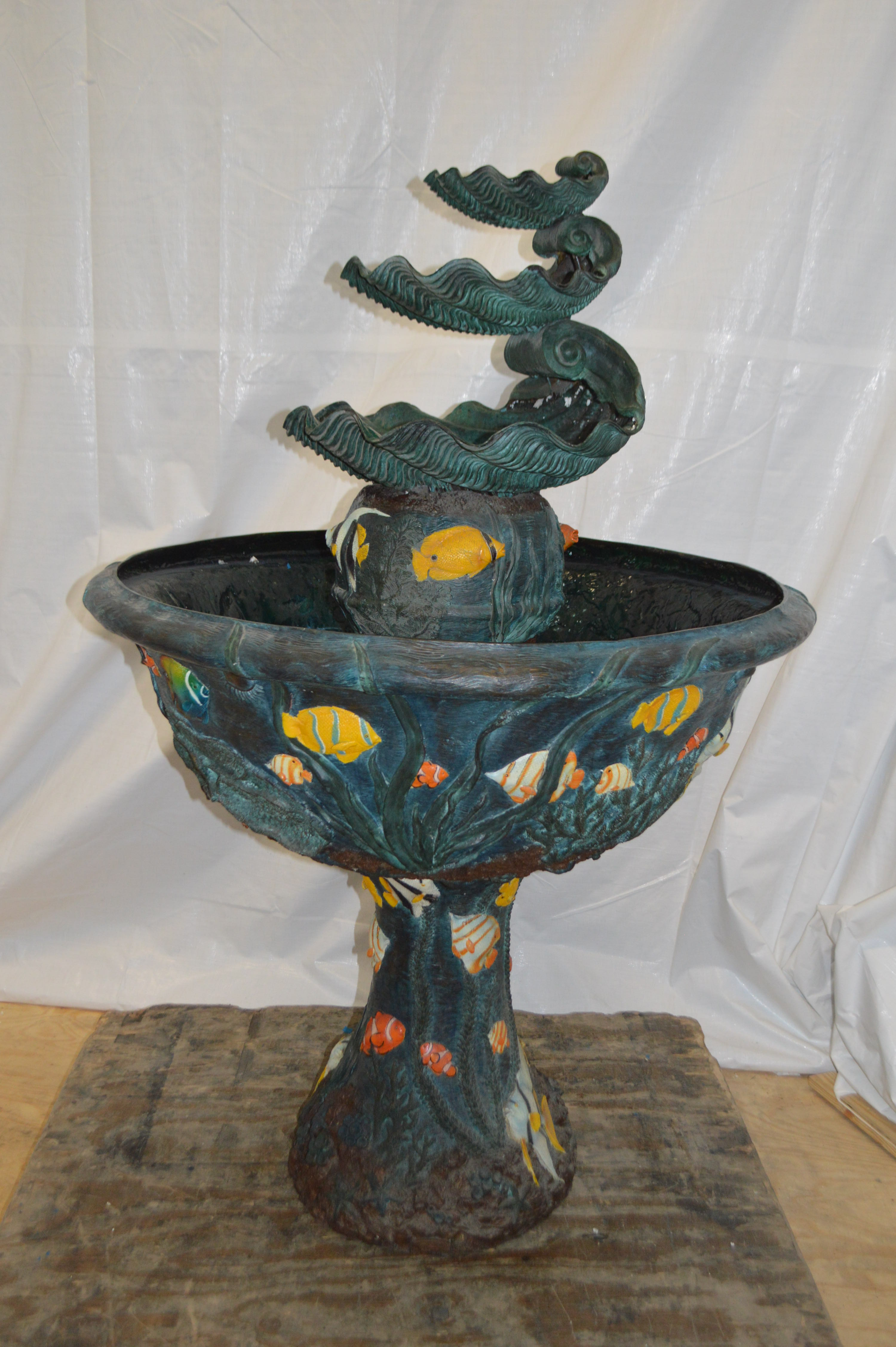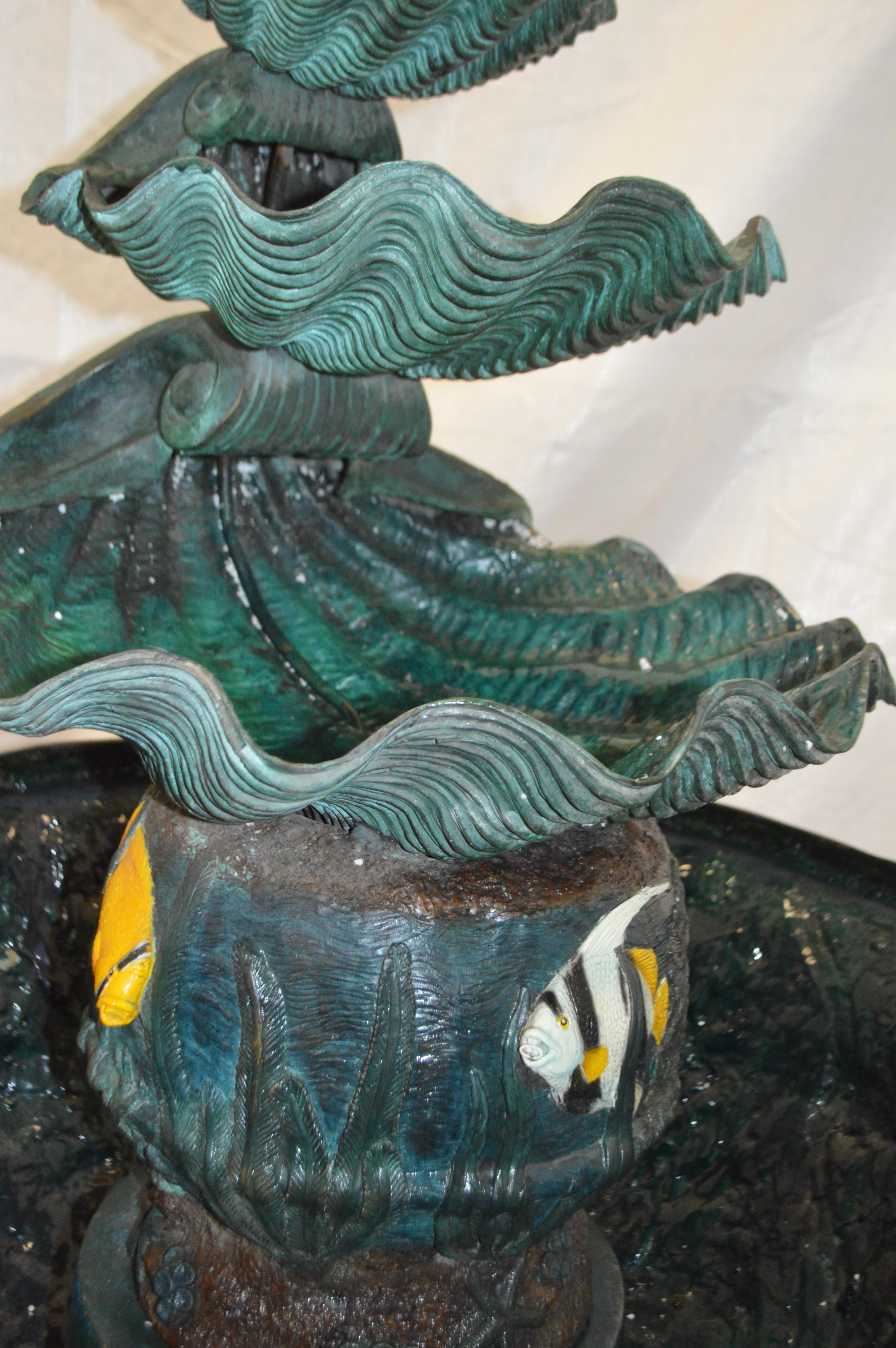 Bawl Bronze Fountain with three steps shells - Size: 43"L x 43"W x 63"H.