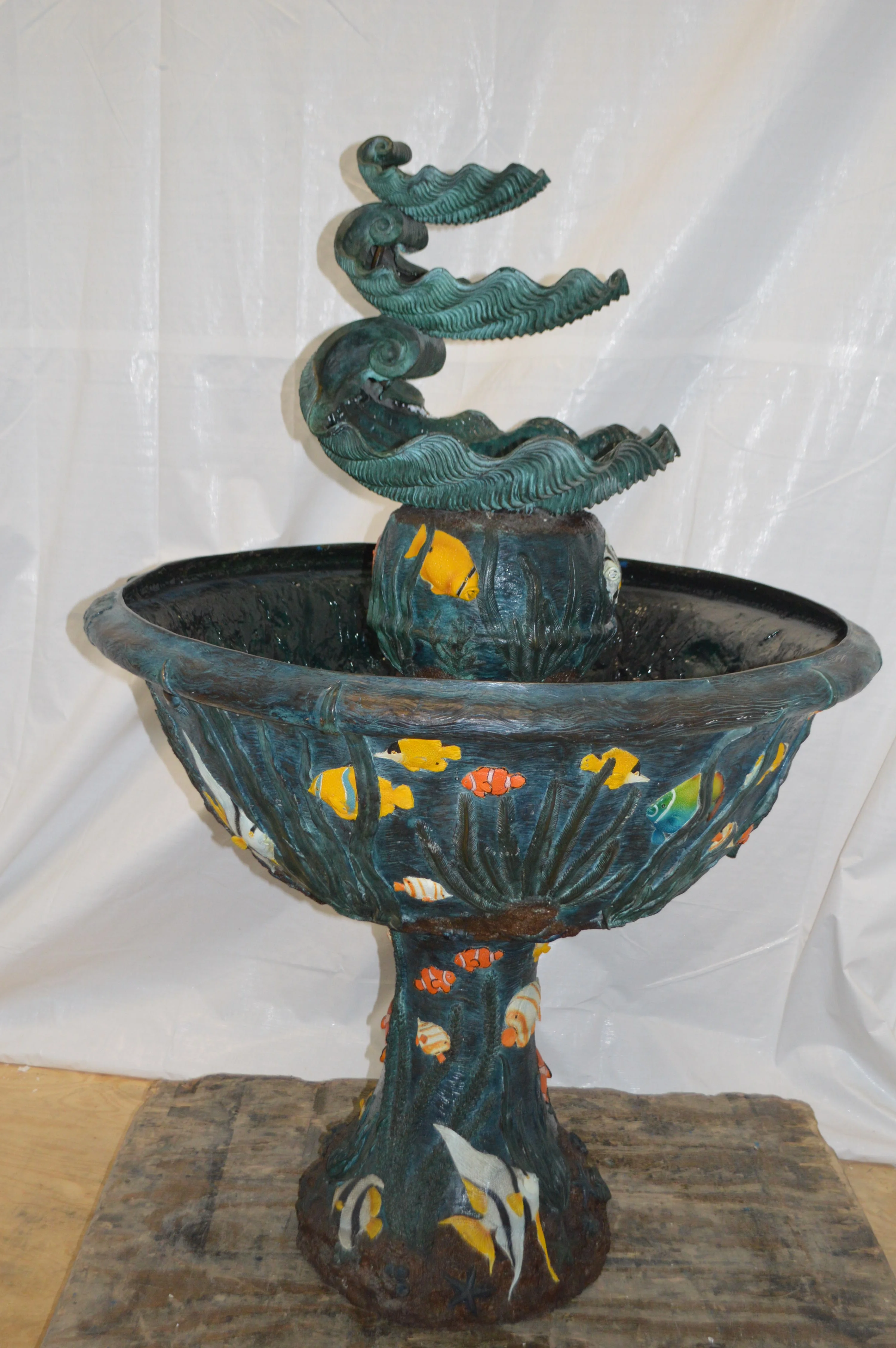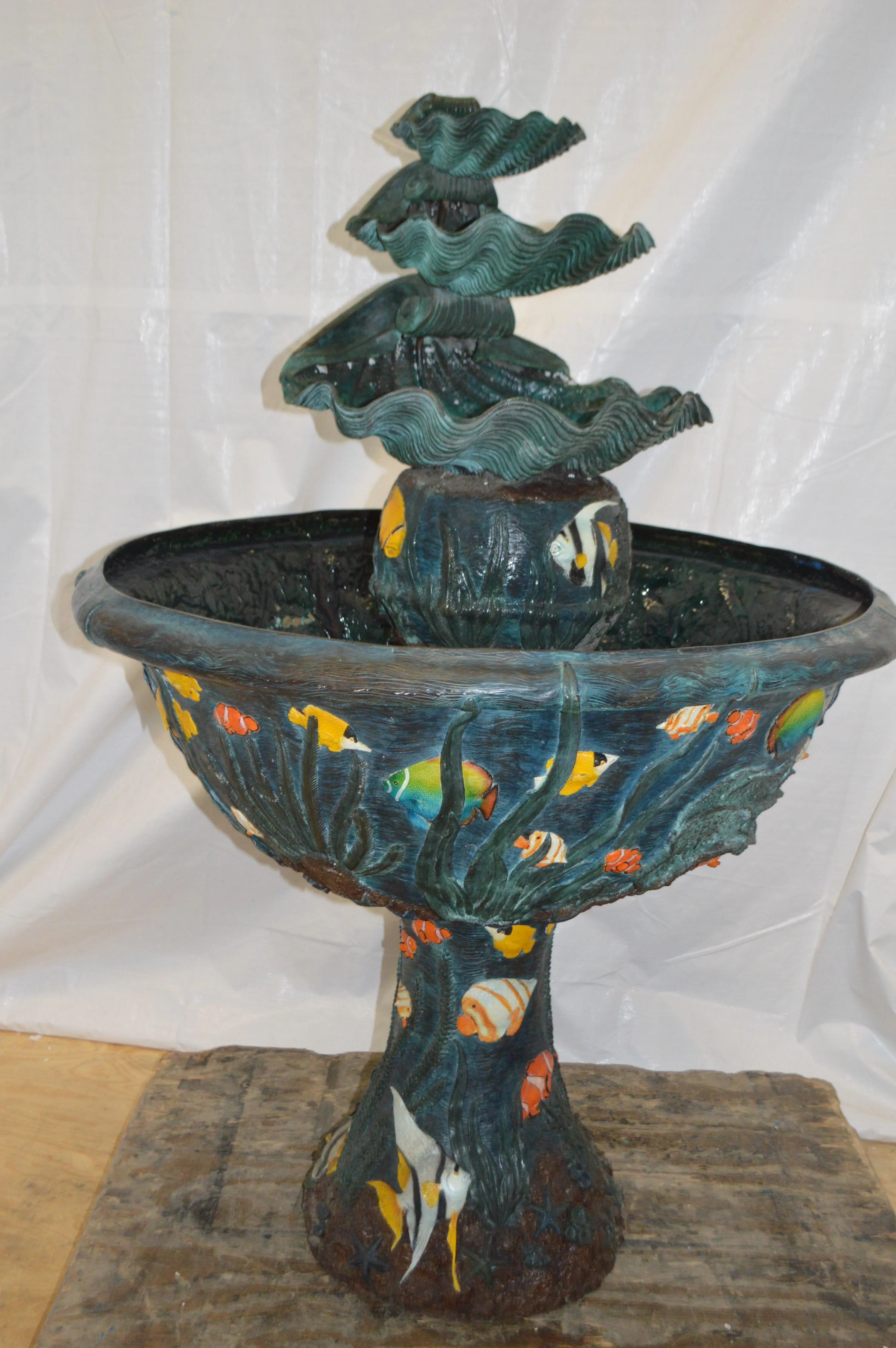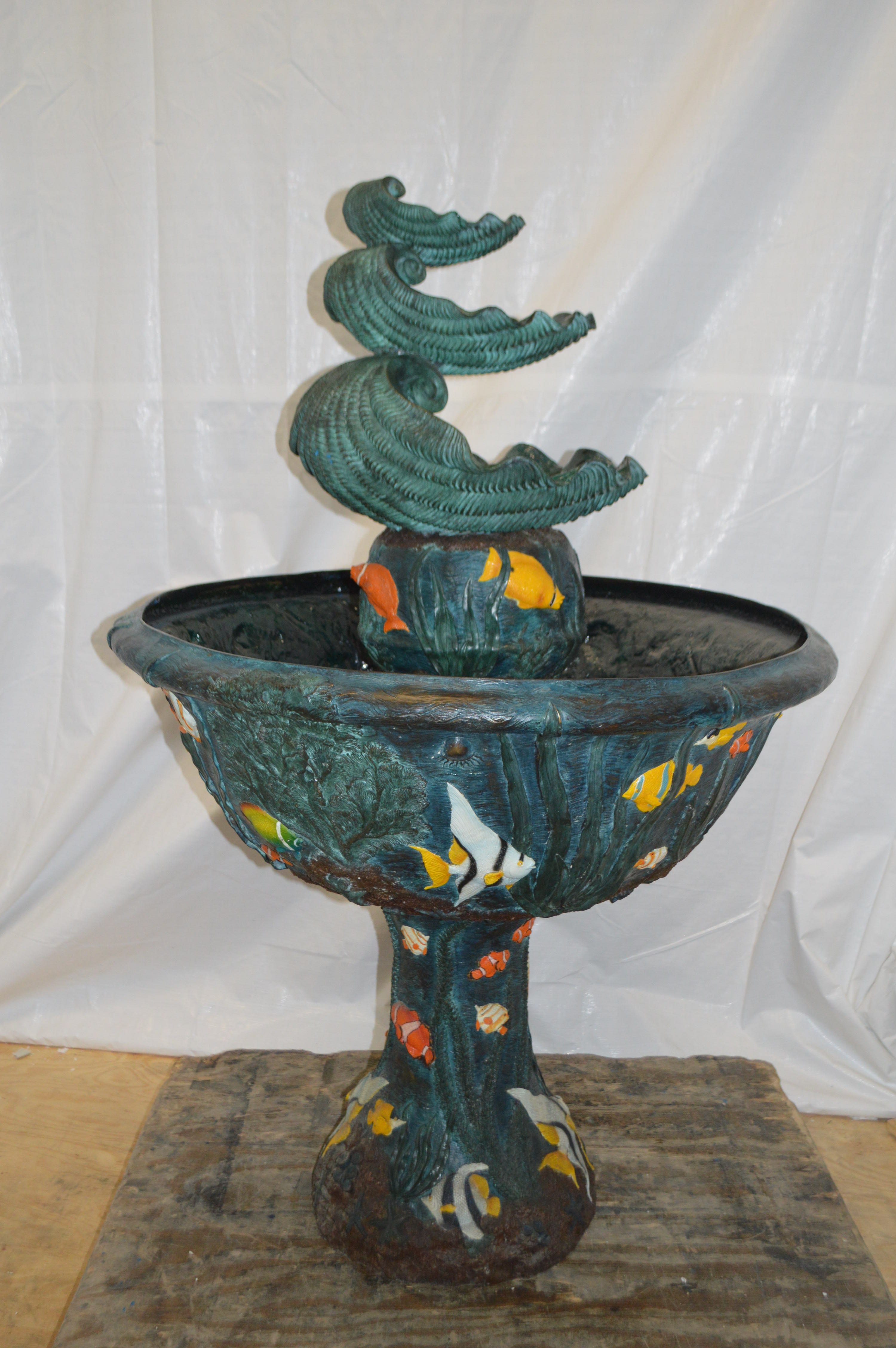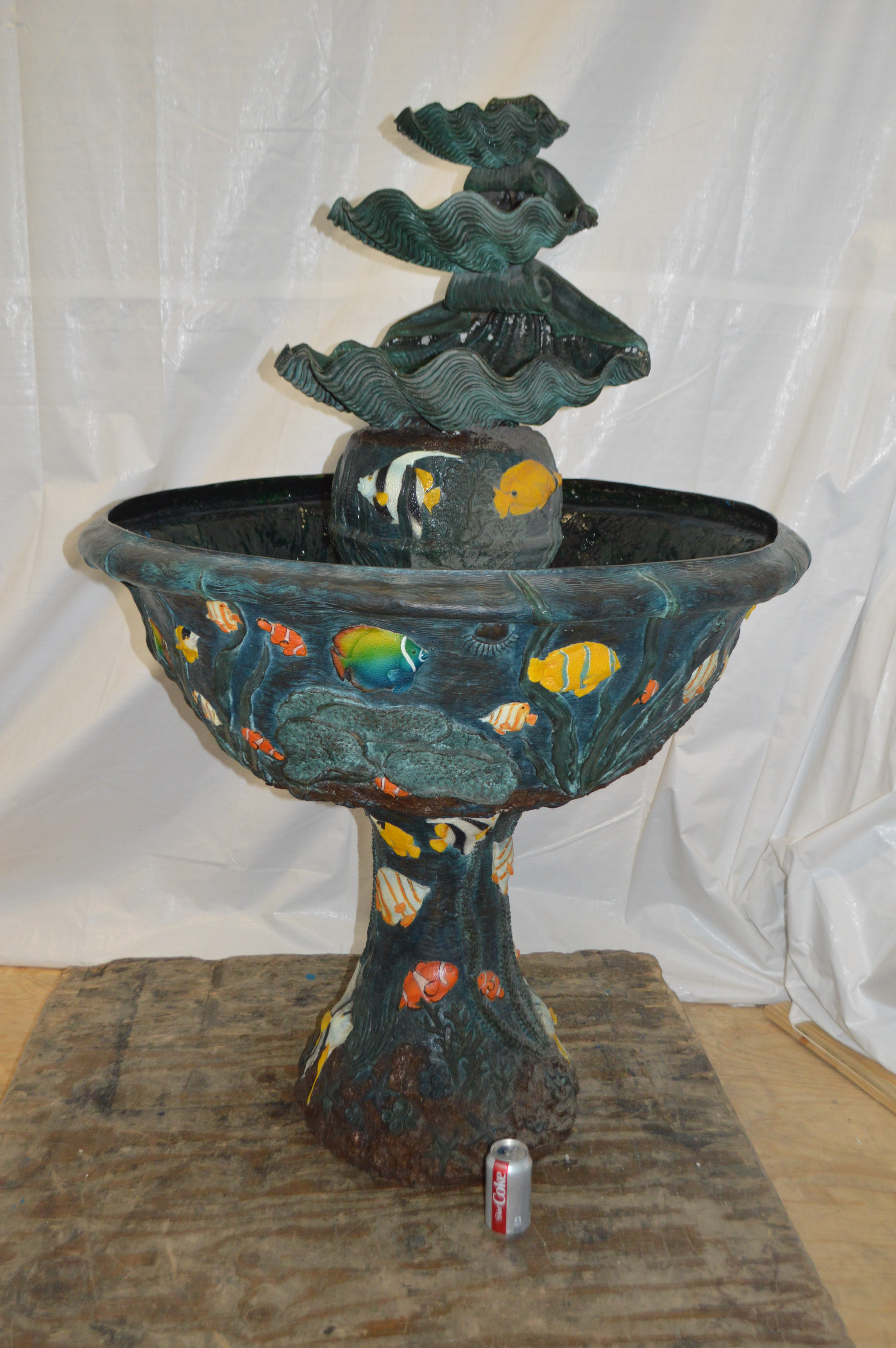 Bawl Bronze Fountain with three steps shells - Size: 43"L x 43"W x 63"H.