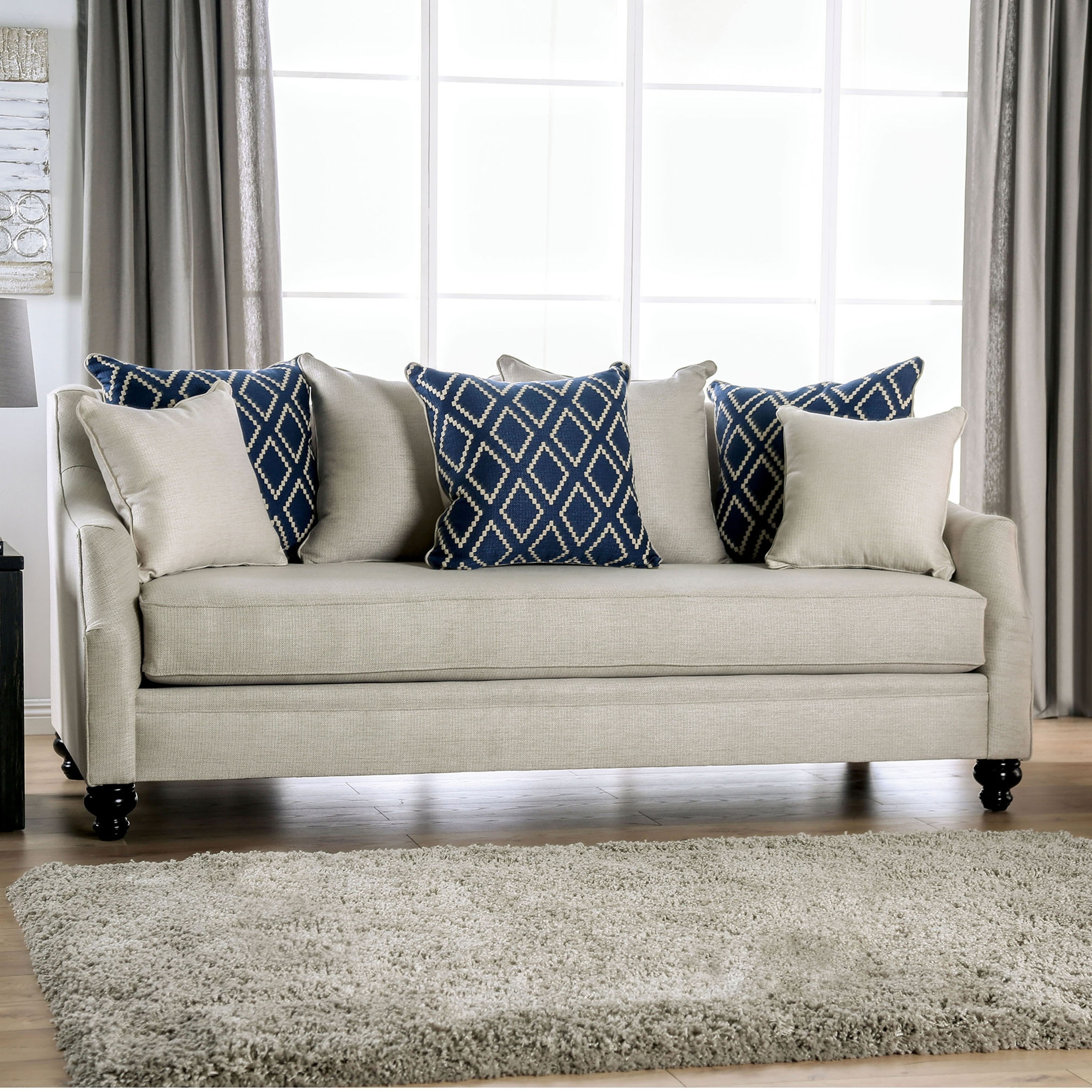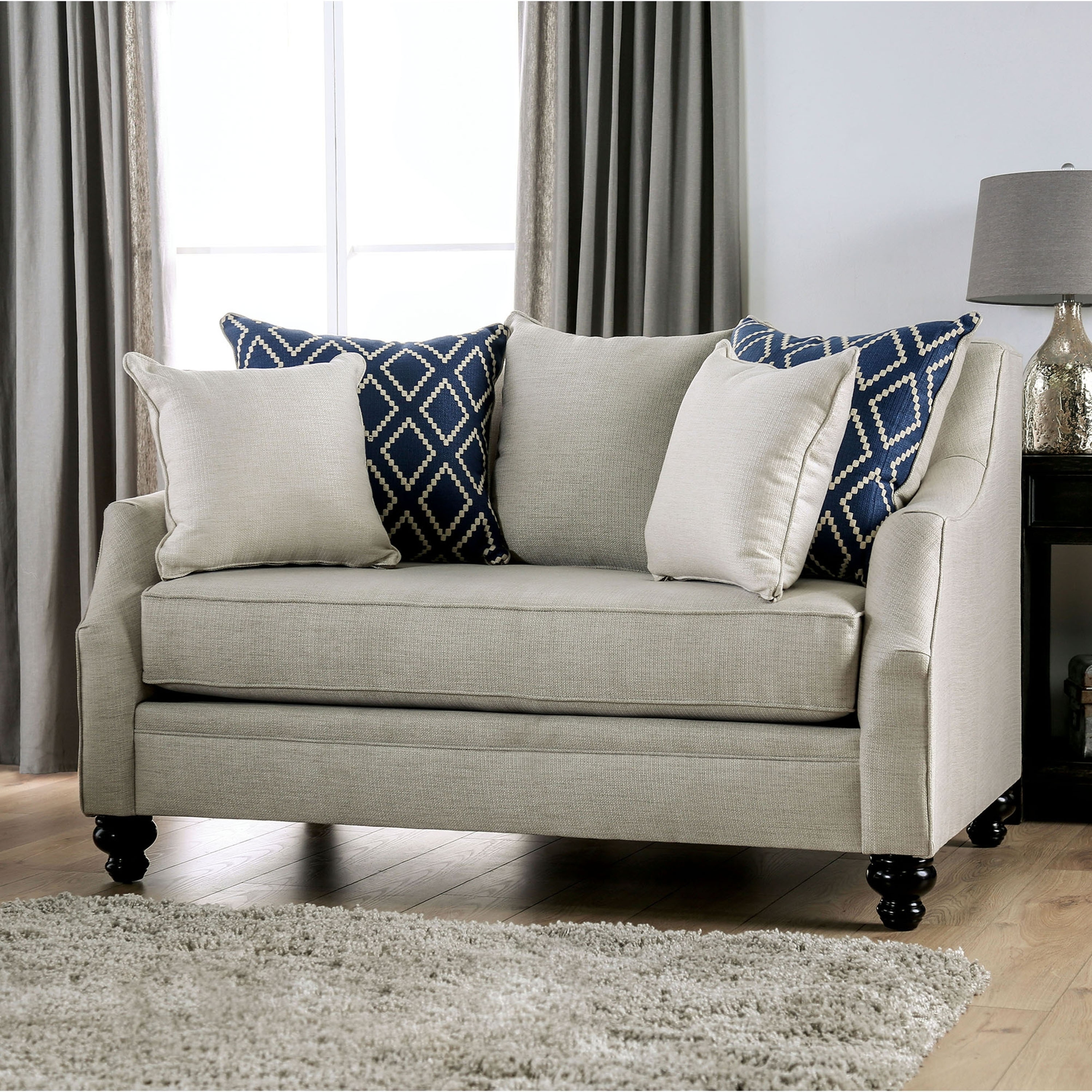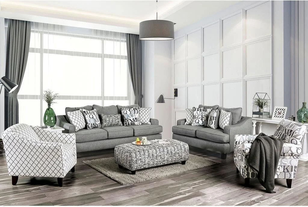 Transitional Light Gray Linen-like Fabric Living Room Set 3pcs FOA Lauritz