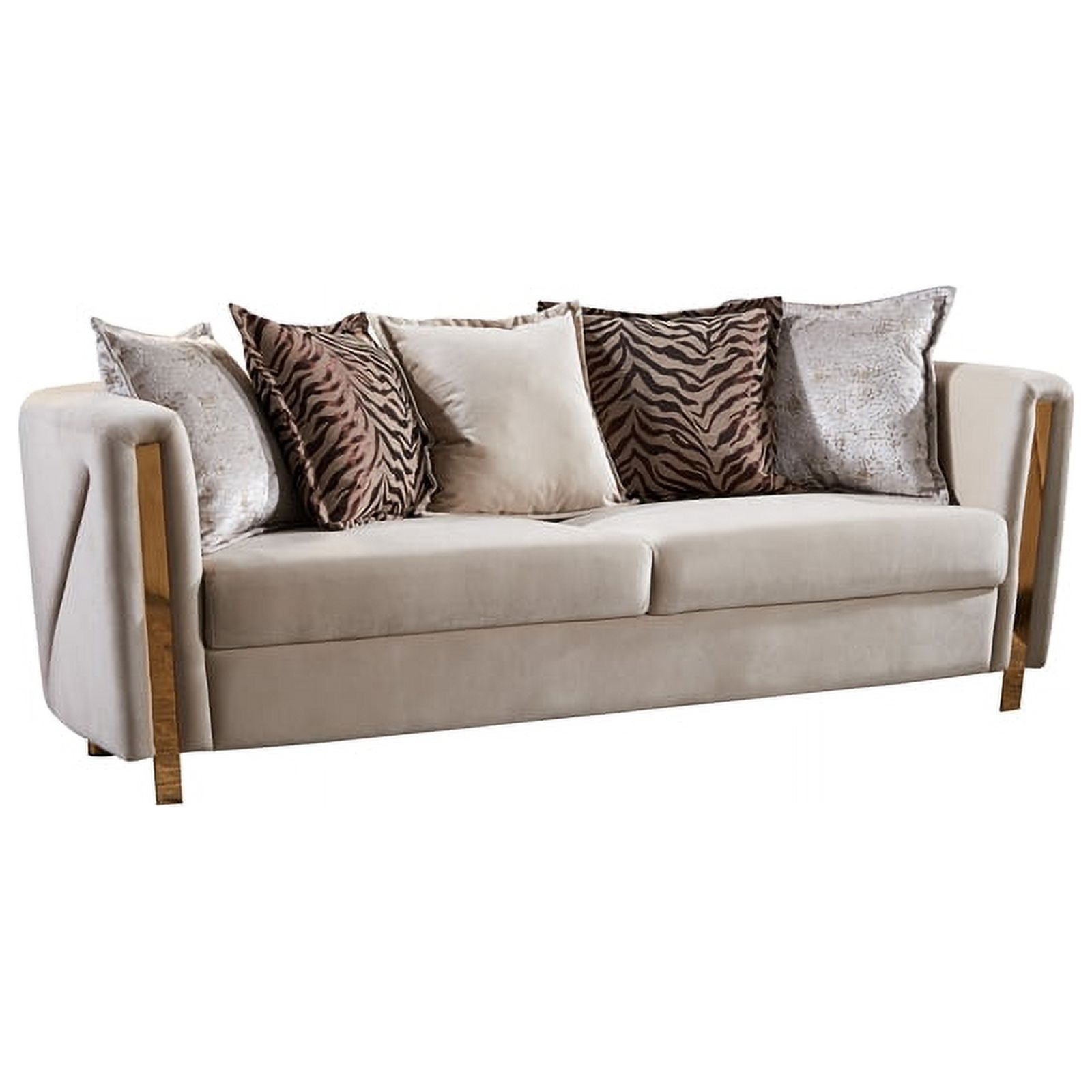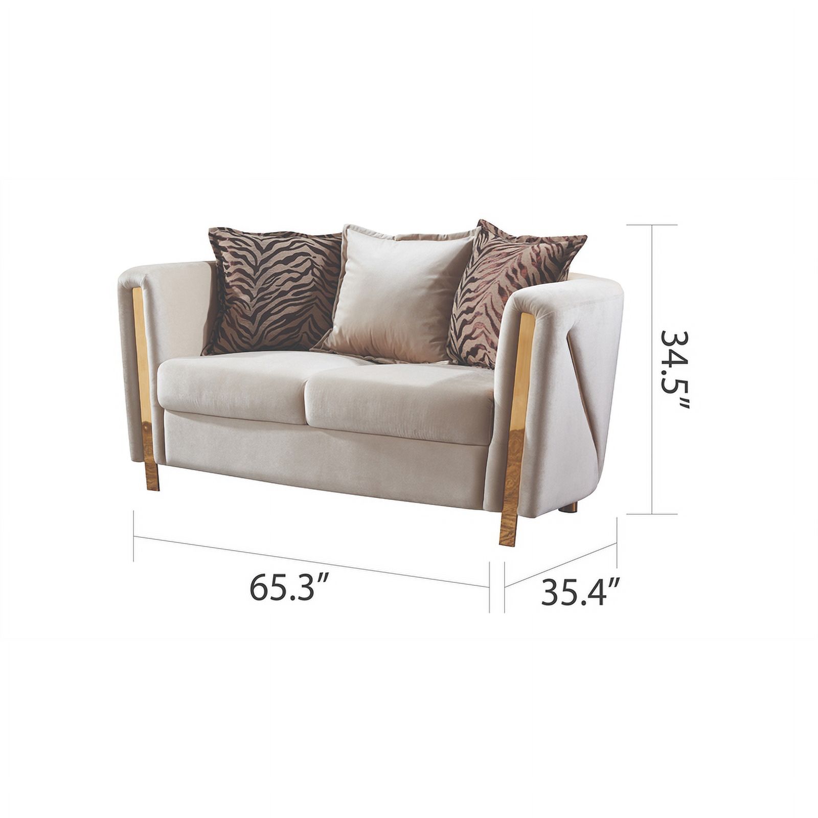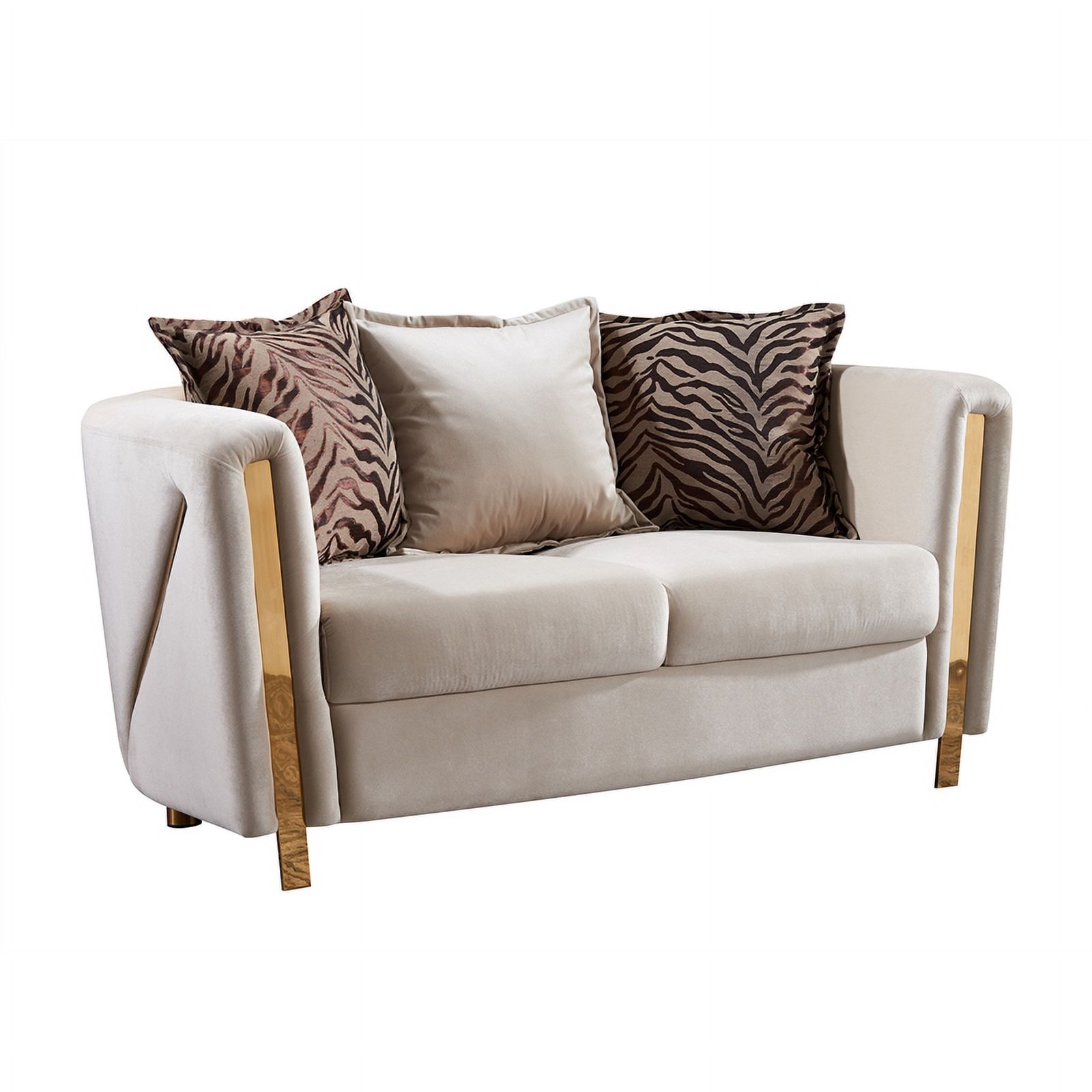Chanelle Thick Velvet Fabric 2Pc Living Room Set Made With Wood in Beige