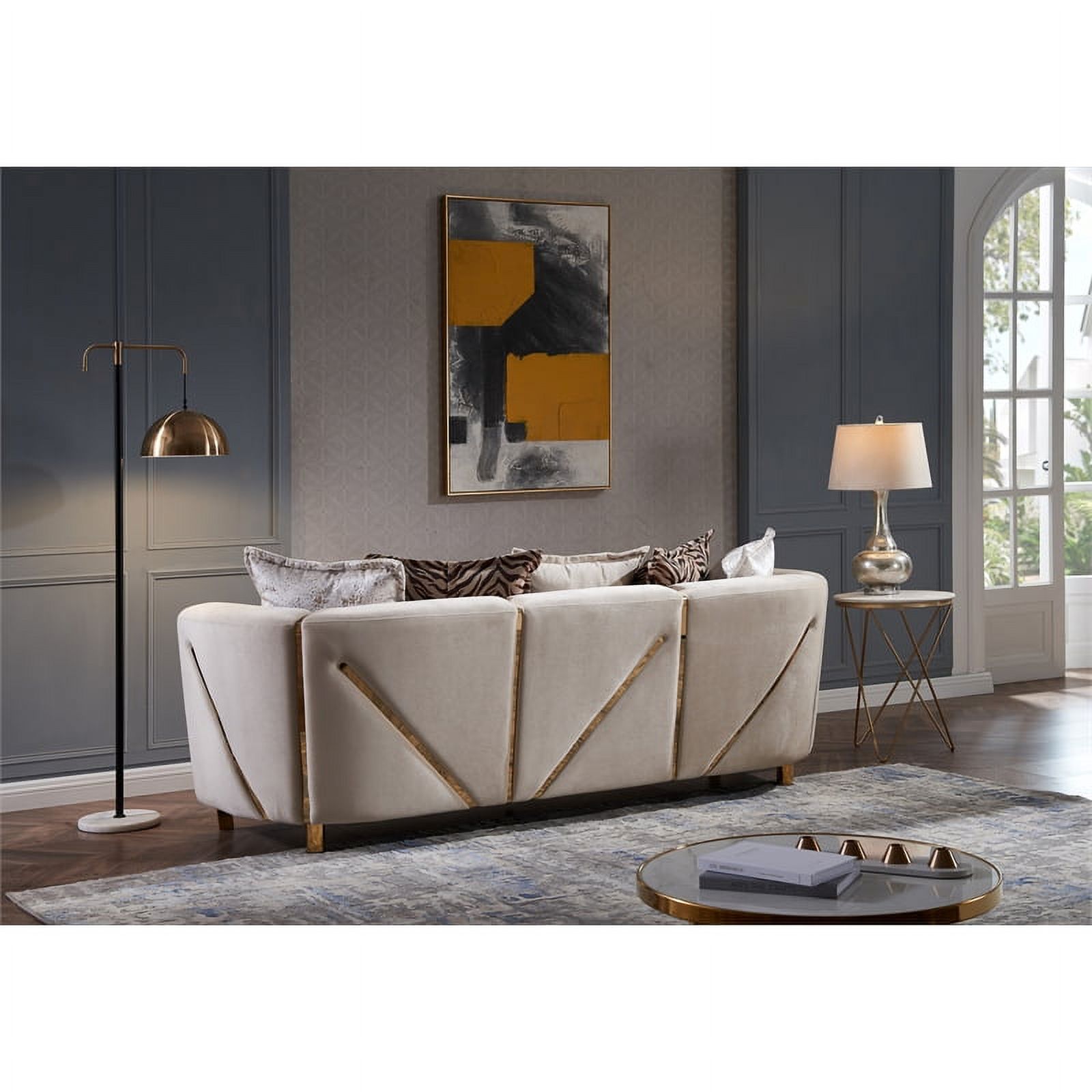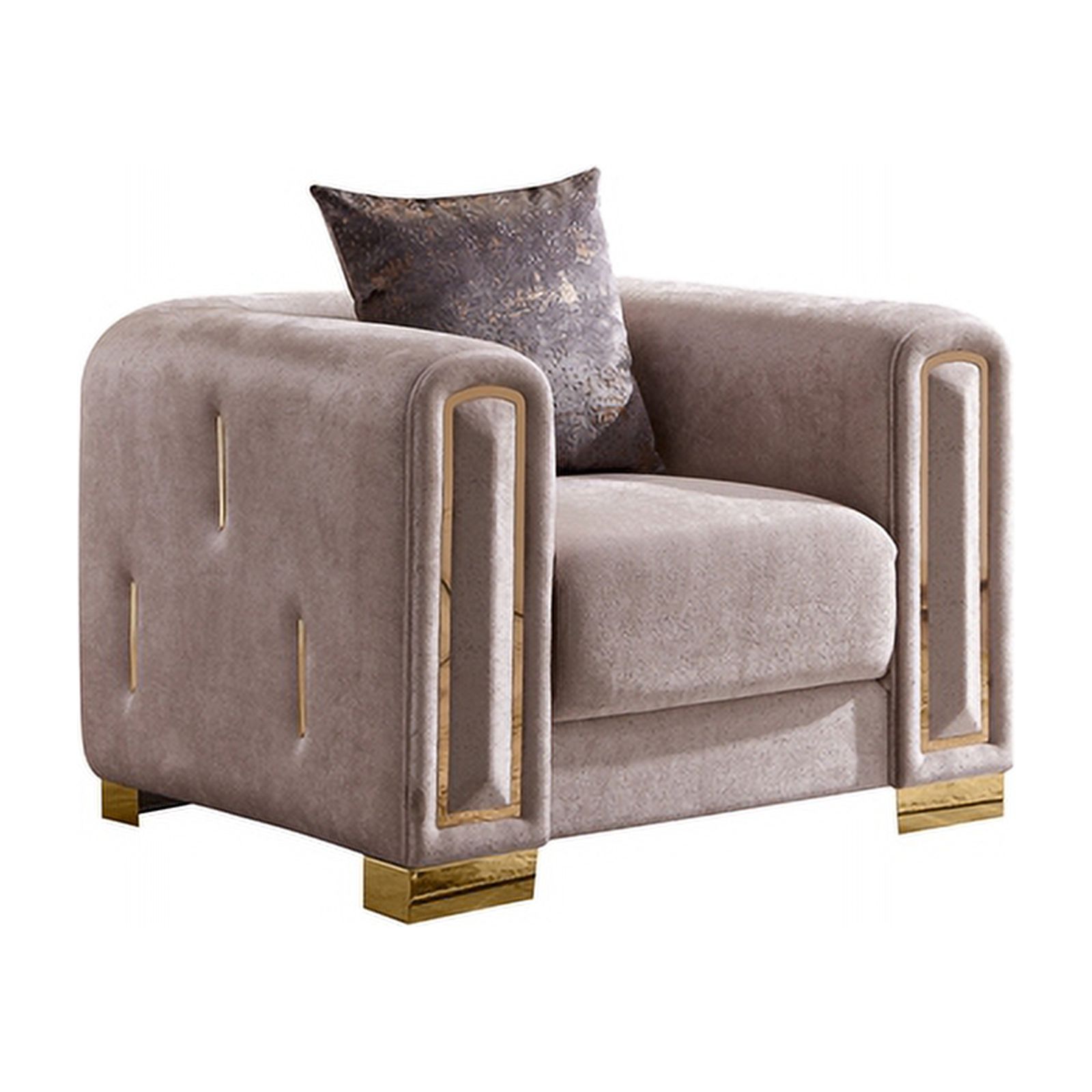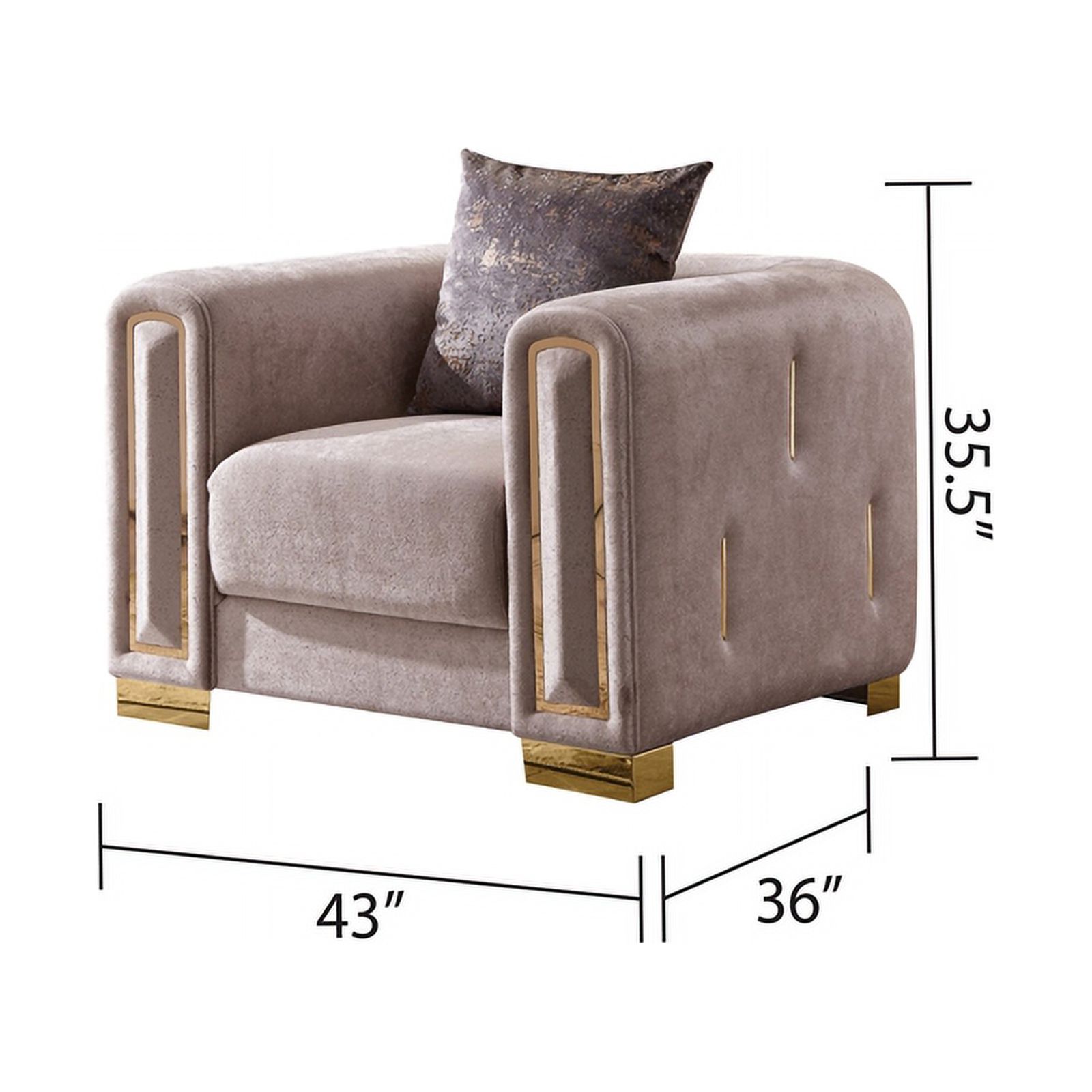 Chanelle Thick Velvet Fabric 2Pc Living Room Set Made With Wood in Beige