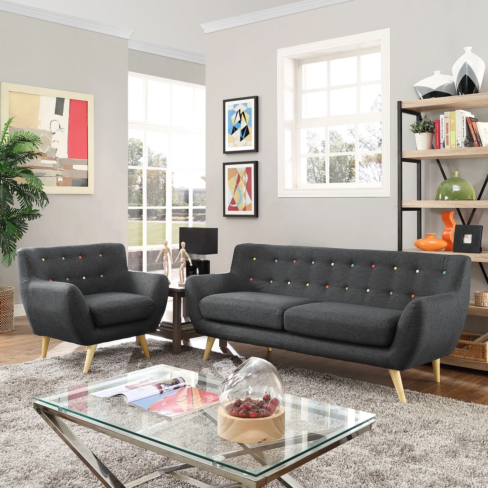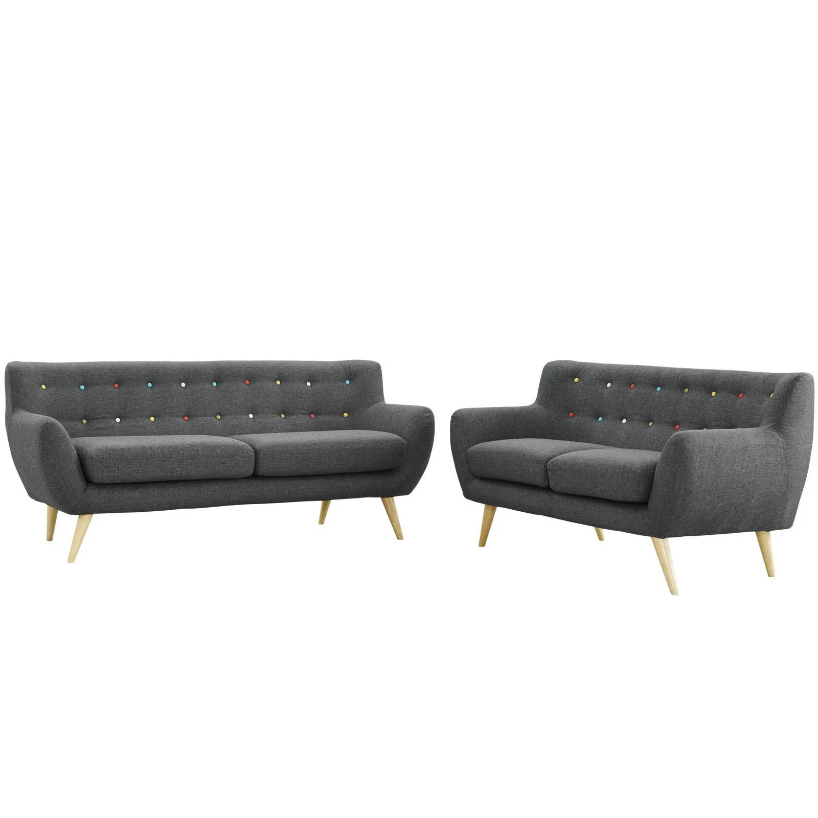 Modern Contemporary Two PCS Living Room Set, Grey, Fabric, Plywood