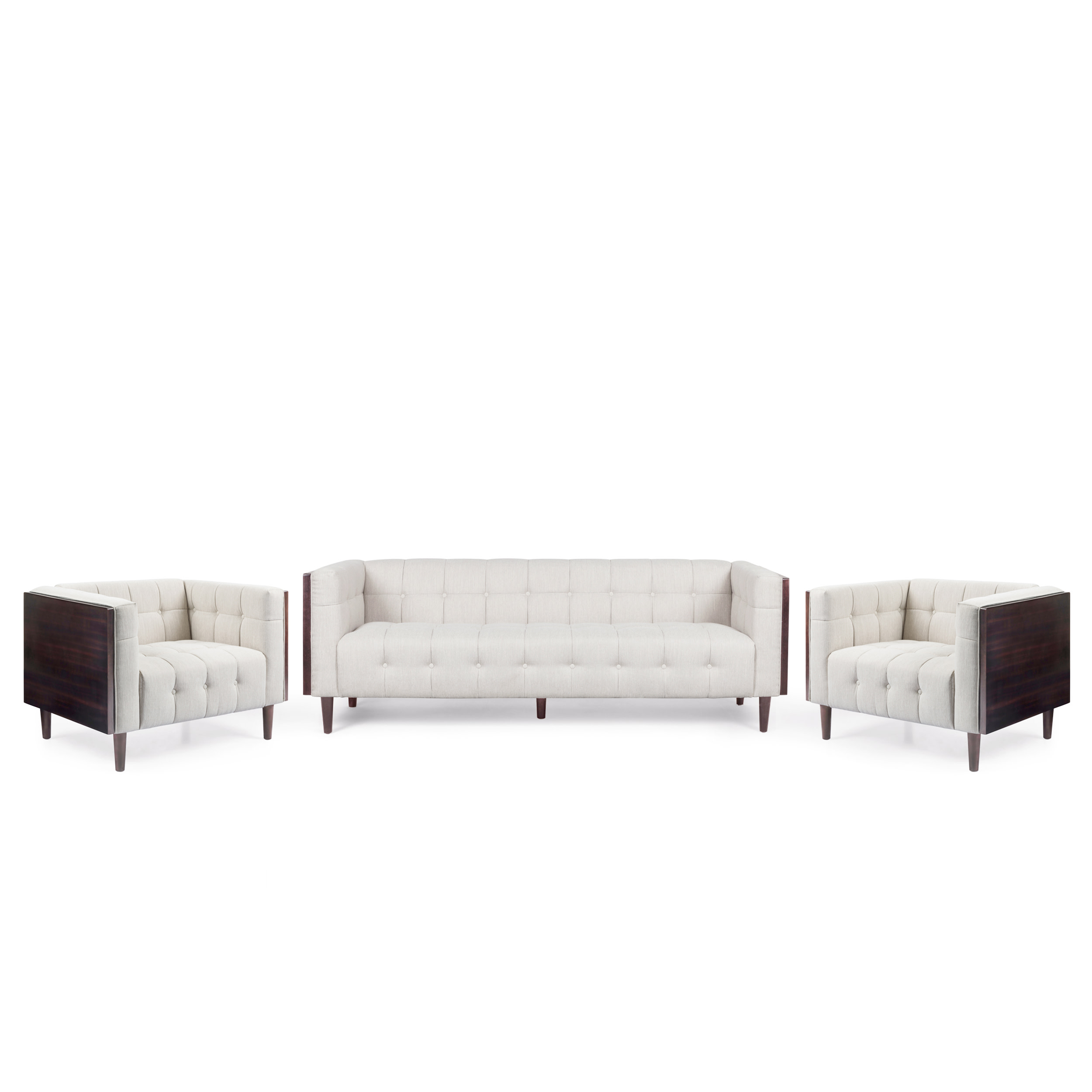 GDF Studio Croton Contemporary Fabric Tufted 3 Piece Living Room Sofa Set, Beige and Brown