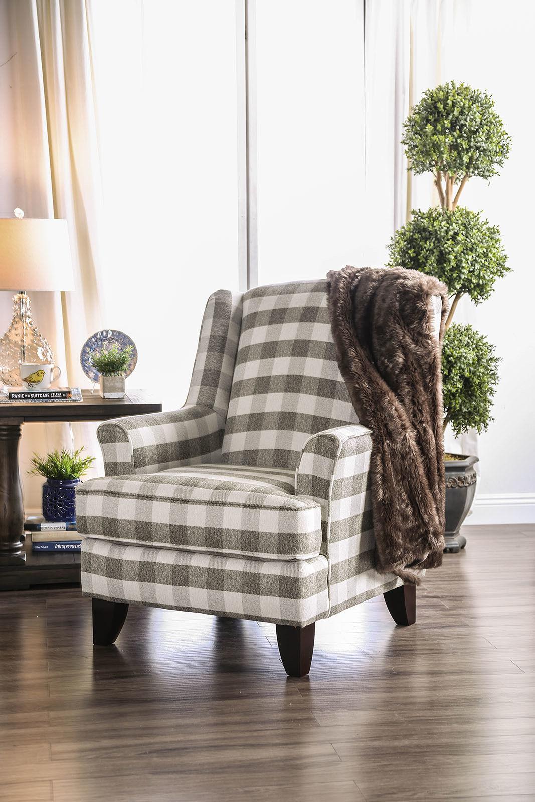 Transitional Light Gray Linen-like Fabric Living Room Set 3pcs FOA Christine