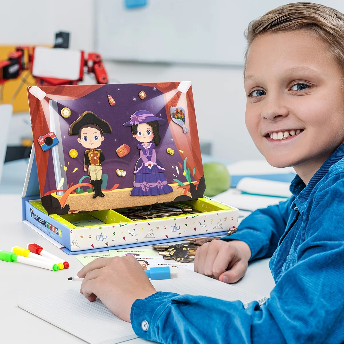 PicassoTiles 115 Piece Magnetic Face-Board Dress up Puzzle Book Kids Toy Set PTD02, Multicolor