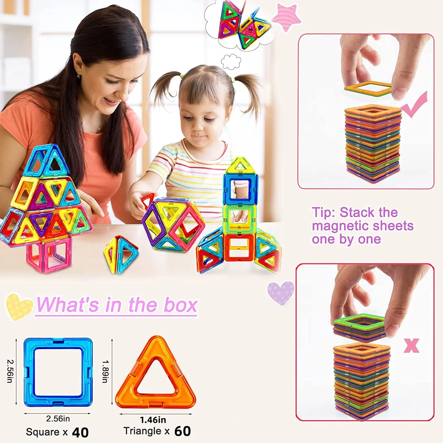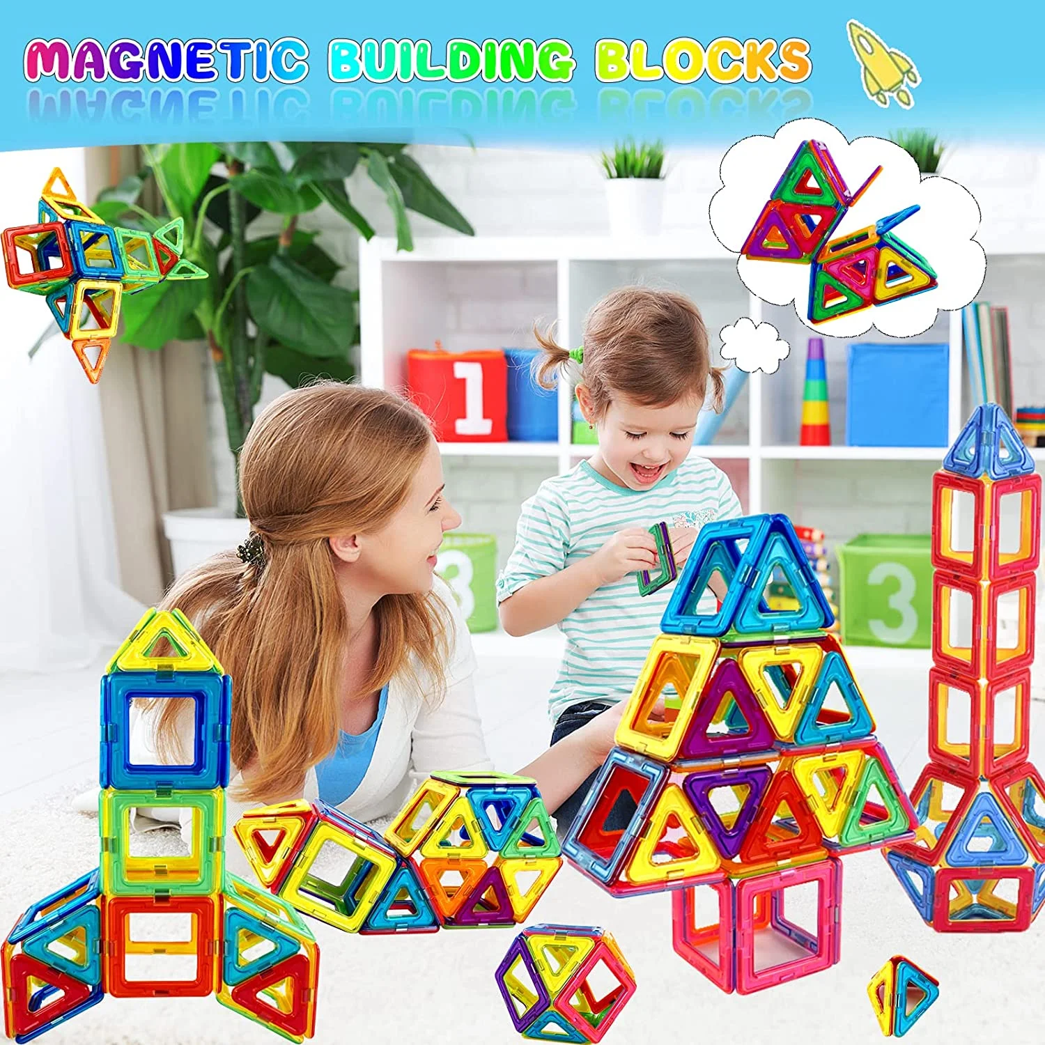 Torubia Upgraded 100Pcs Magnetic Blocks Tough Building Tiles STEM Toys for 3+ Year Old Boys and Girls Learning by Playing Games for Toddlers Kids Toys for Christmas Gift/ New Year Gifts- Starter Set