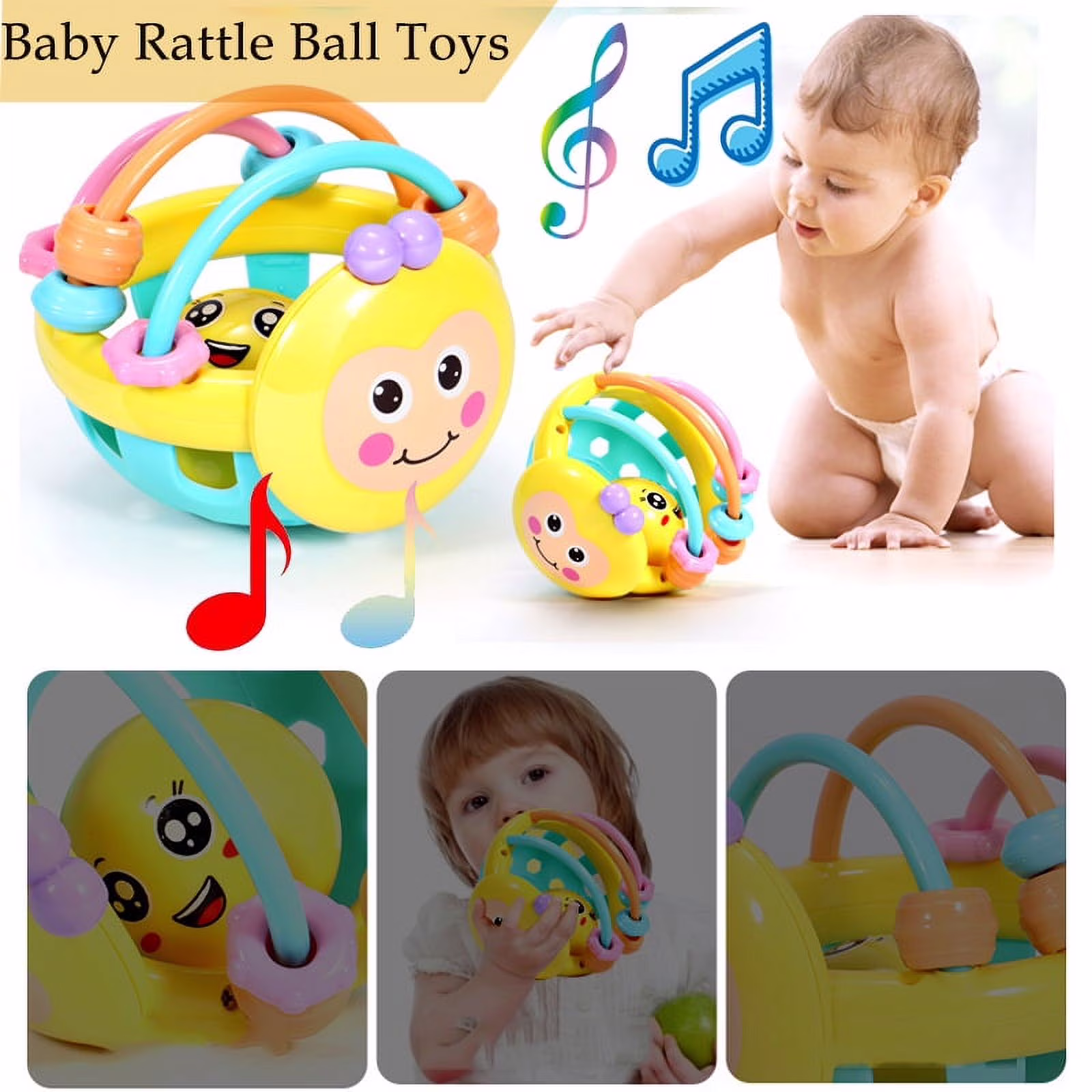 Lnkoo Rattle Ball - Sensory Teether Toy for Babies Ages 6 Months and Up - Made from Safe, Stretchy Silicone - Non-Toxic, PVC, BPA and Phthalate-Free Baby Early Educational Toys