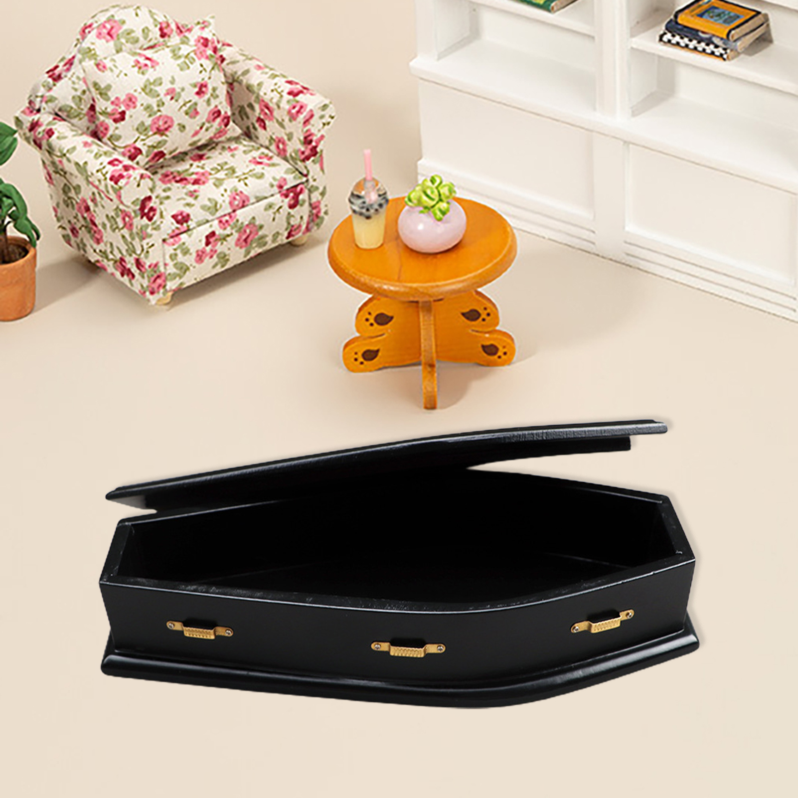 HYDa Dollhouse Coffin High Simulation Scene Model 1/12 Scale Miniature Wooden Coffin DIY Decoration for Role Play