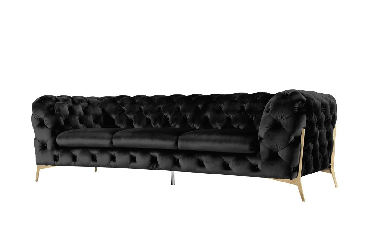 Deluxe Black Velvet Tufted Sofa VIG Divani Casa Sheila Modern Contemporary
