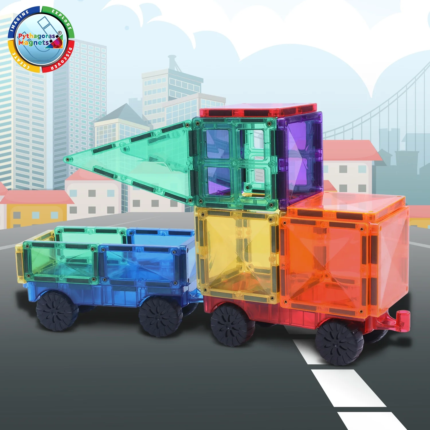 Pythagoras Magnetic Building Tiles - 101 Pcs of Shapes and Colors - Educational Magnetic Blocks for Kids - Creativity | Spatial Perception | Motor Skills - w/ Storage - Boys and Girls Ages 3+
