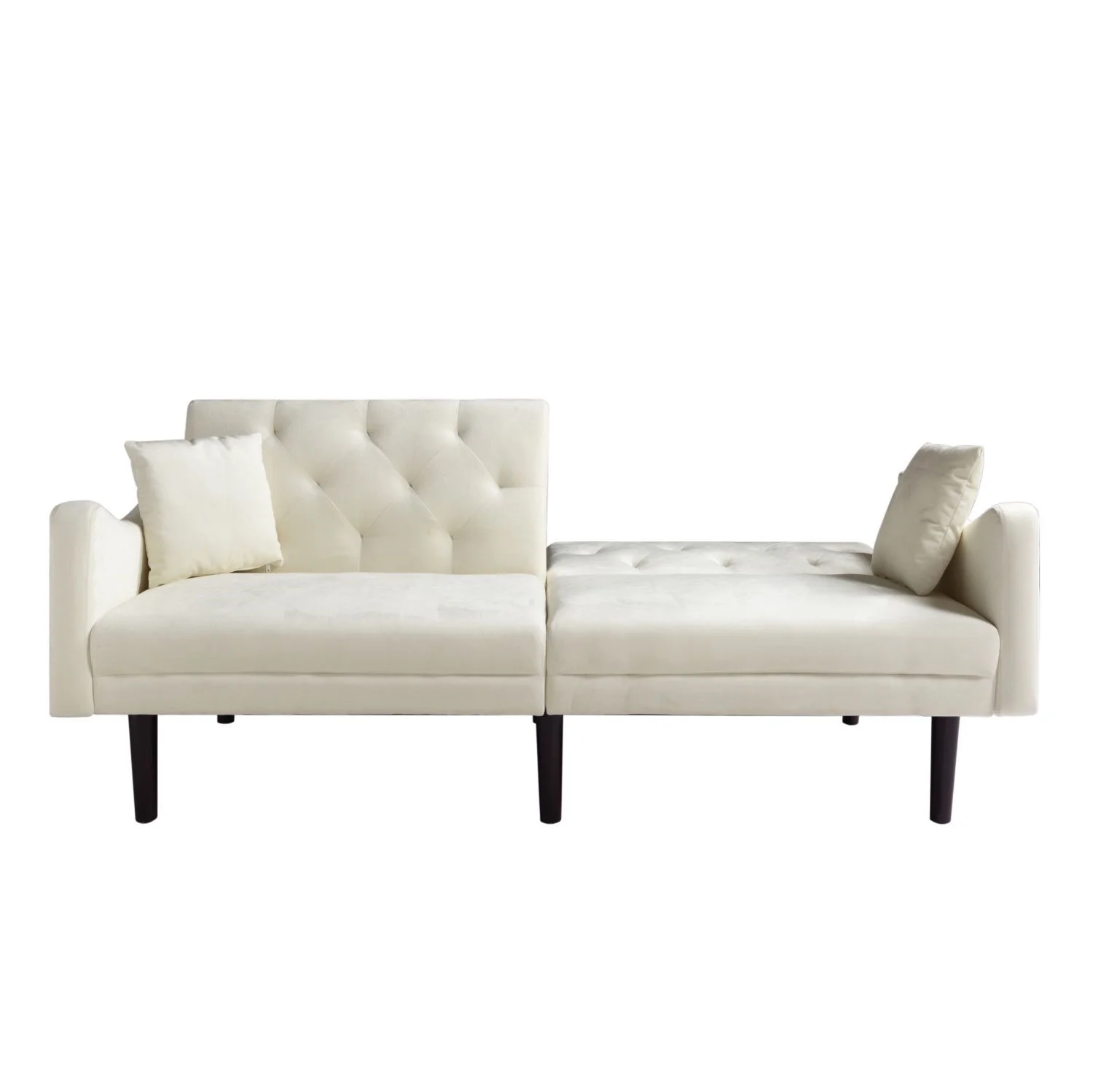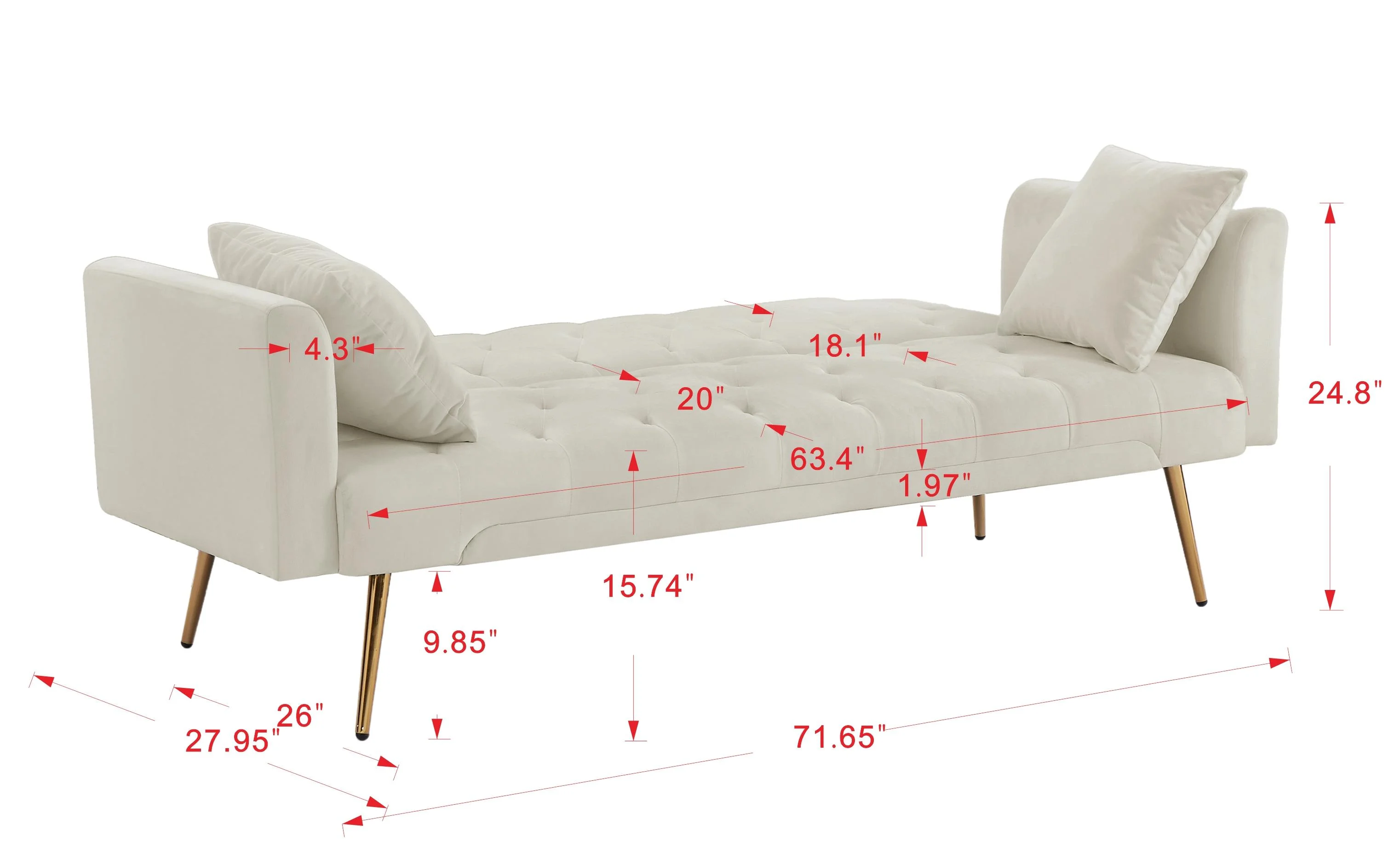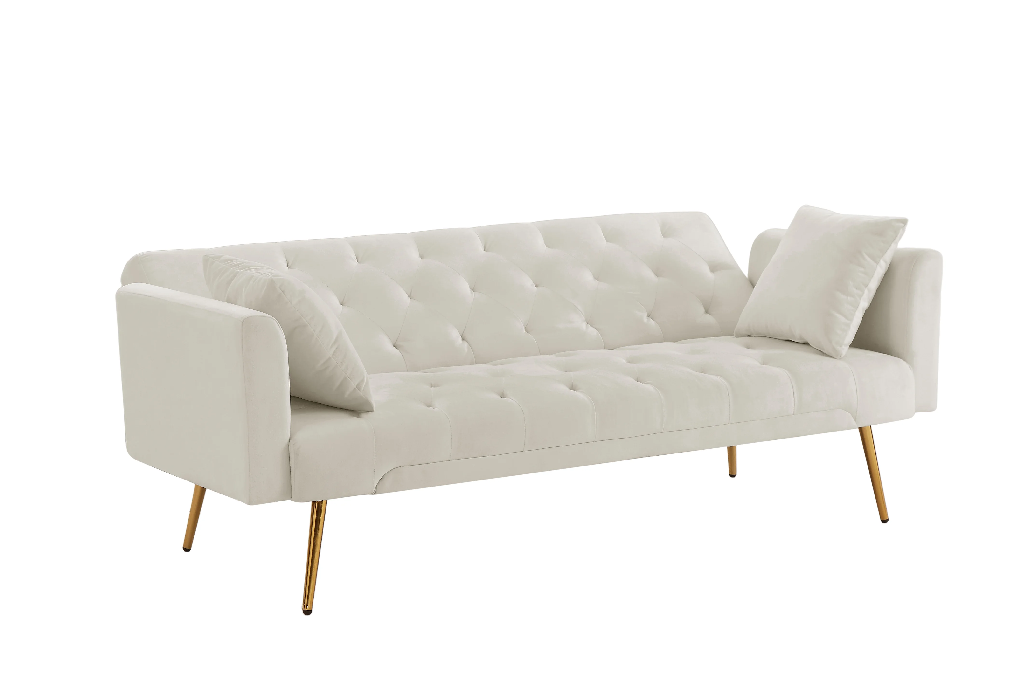Aonesy Velvet Futon Sofa Bed, 73" Convertible Sleeper Sofa with Pillows,Beige