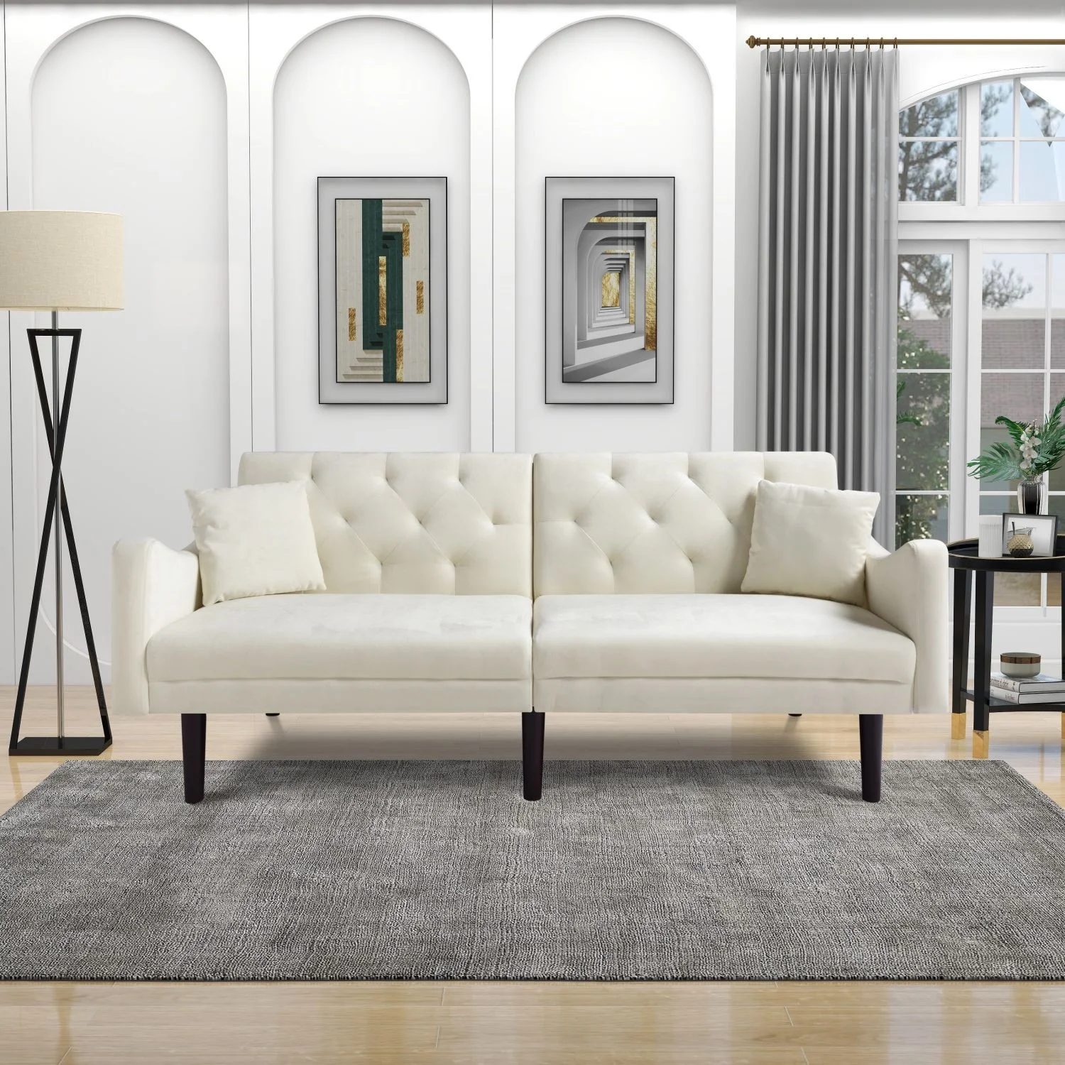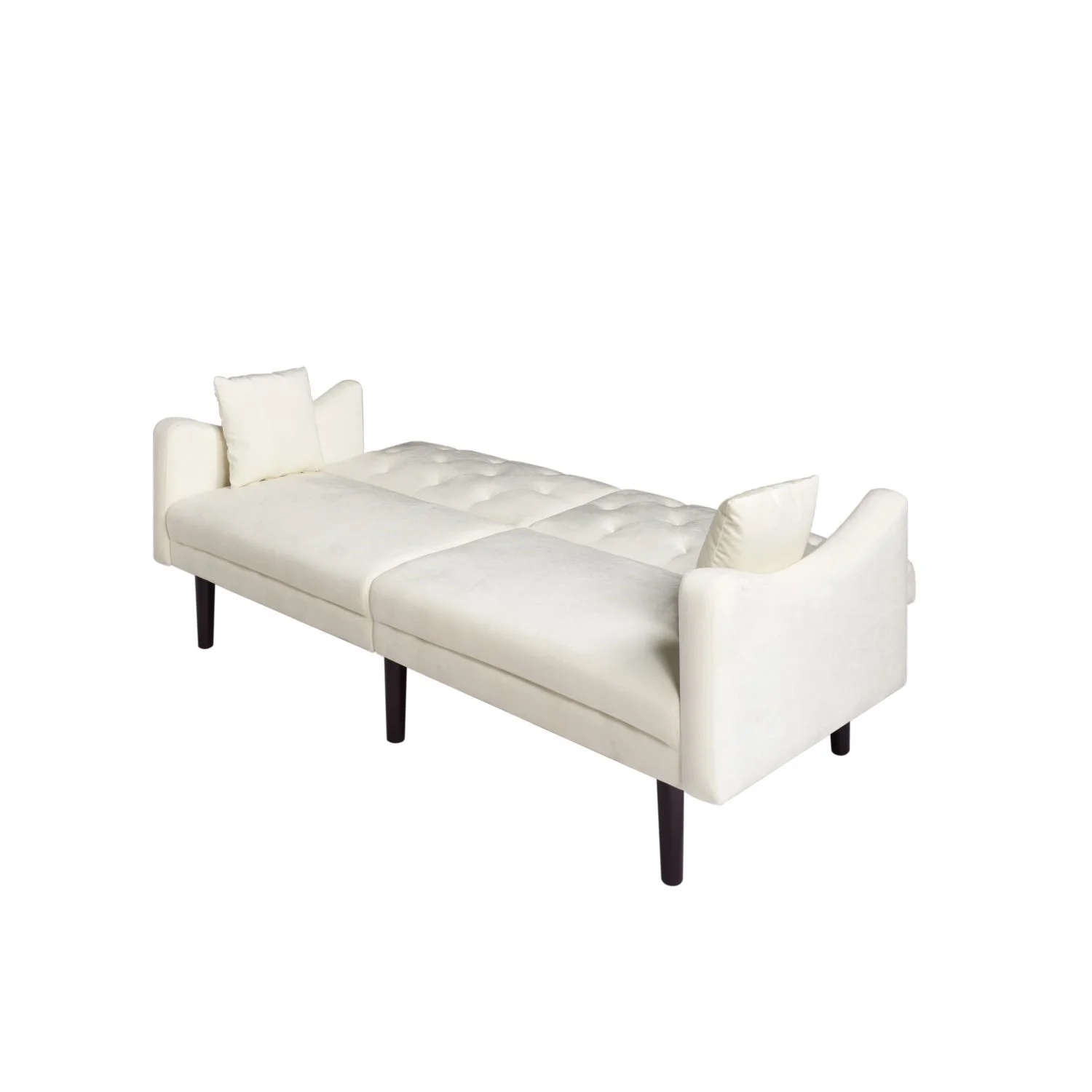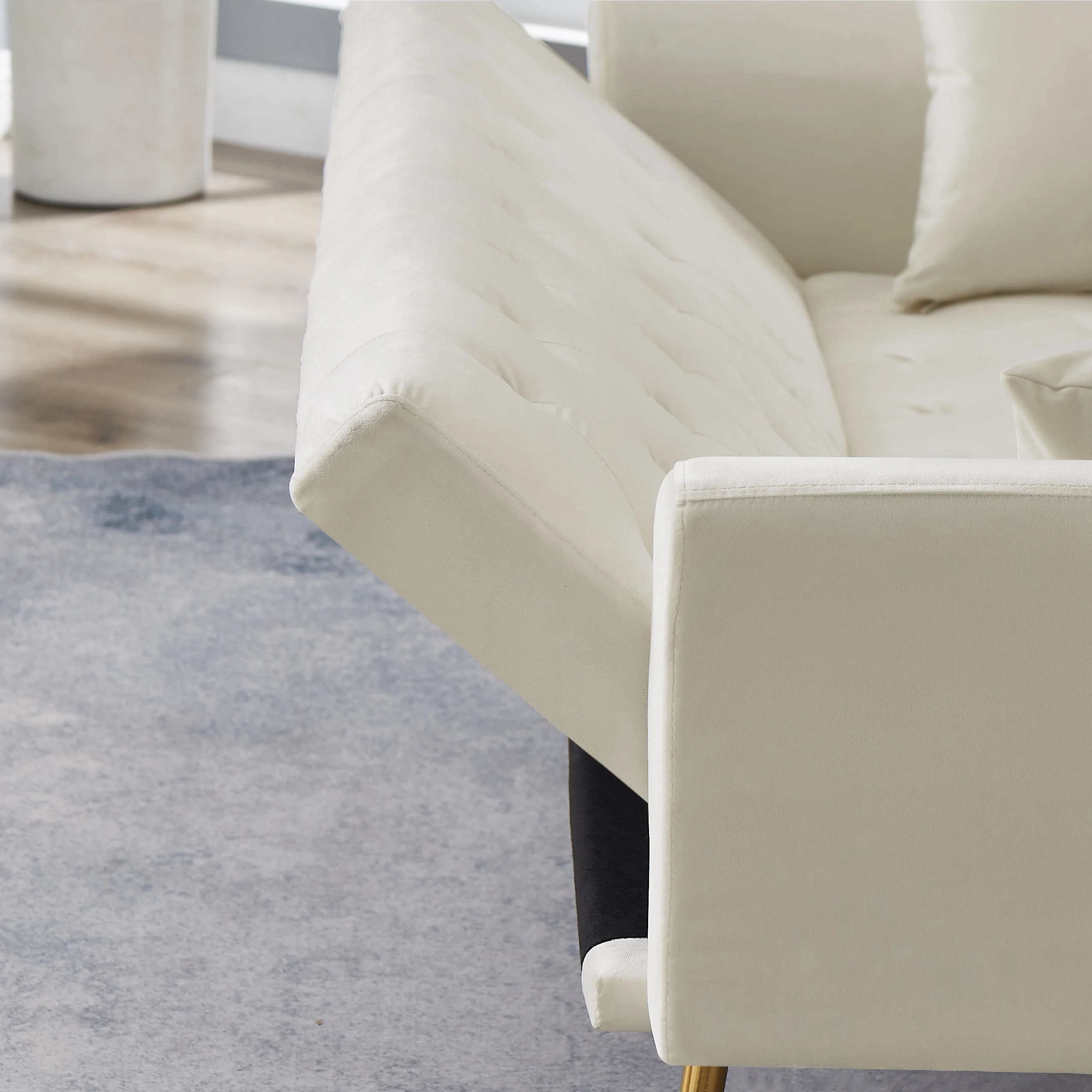 Aonesy Velvet Futon Sofa Bed, 73" Convertible Sleeper Sofa with Pillows,Beige