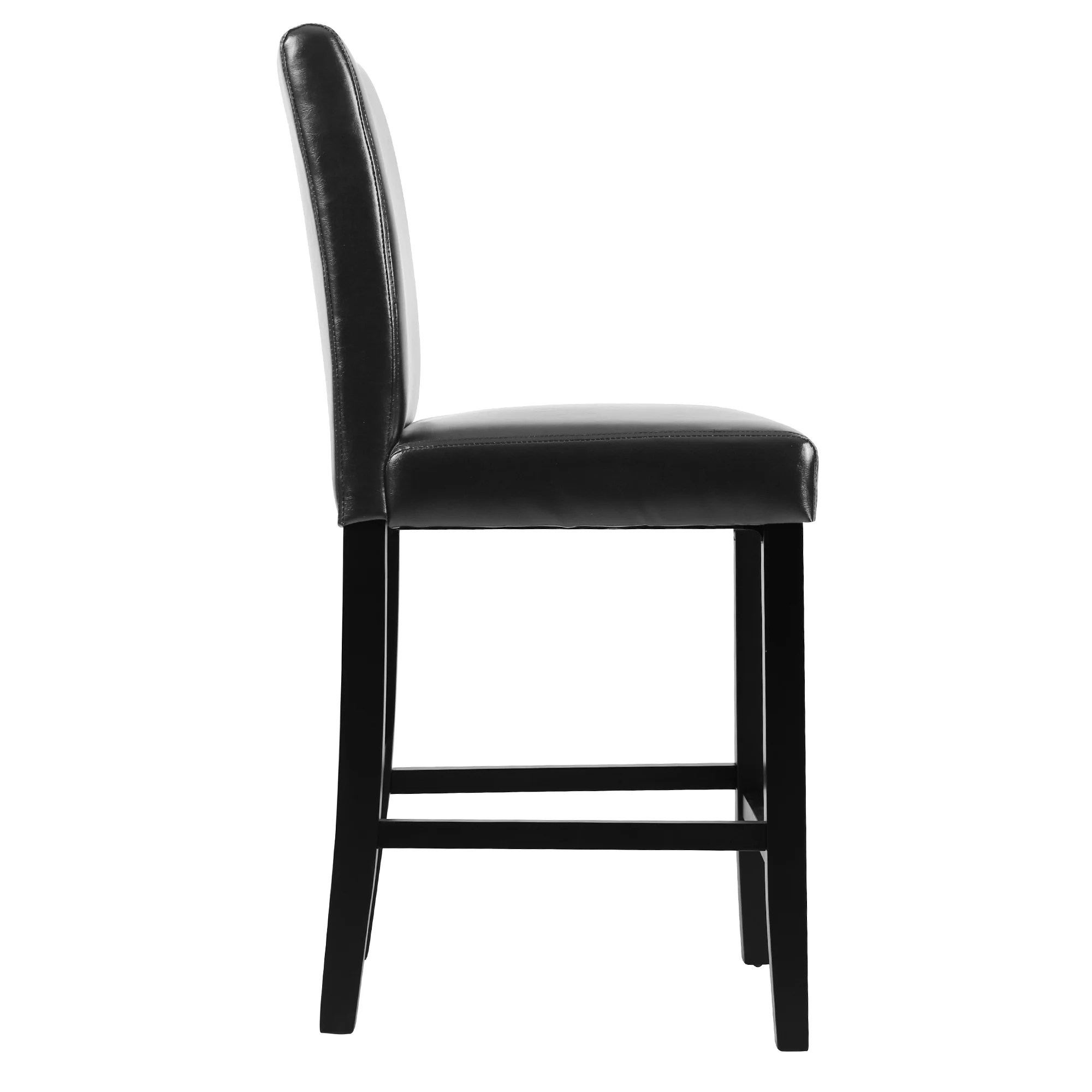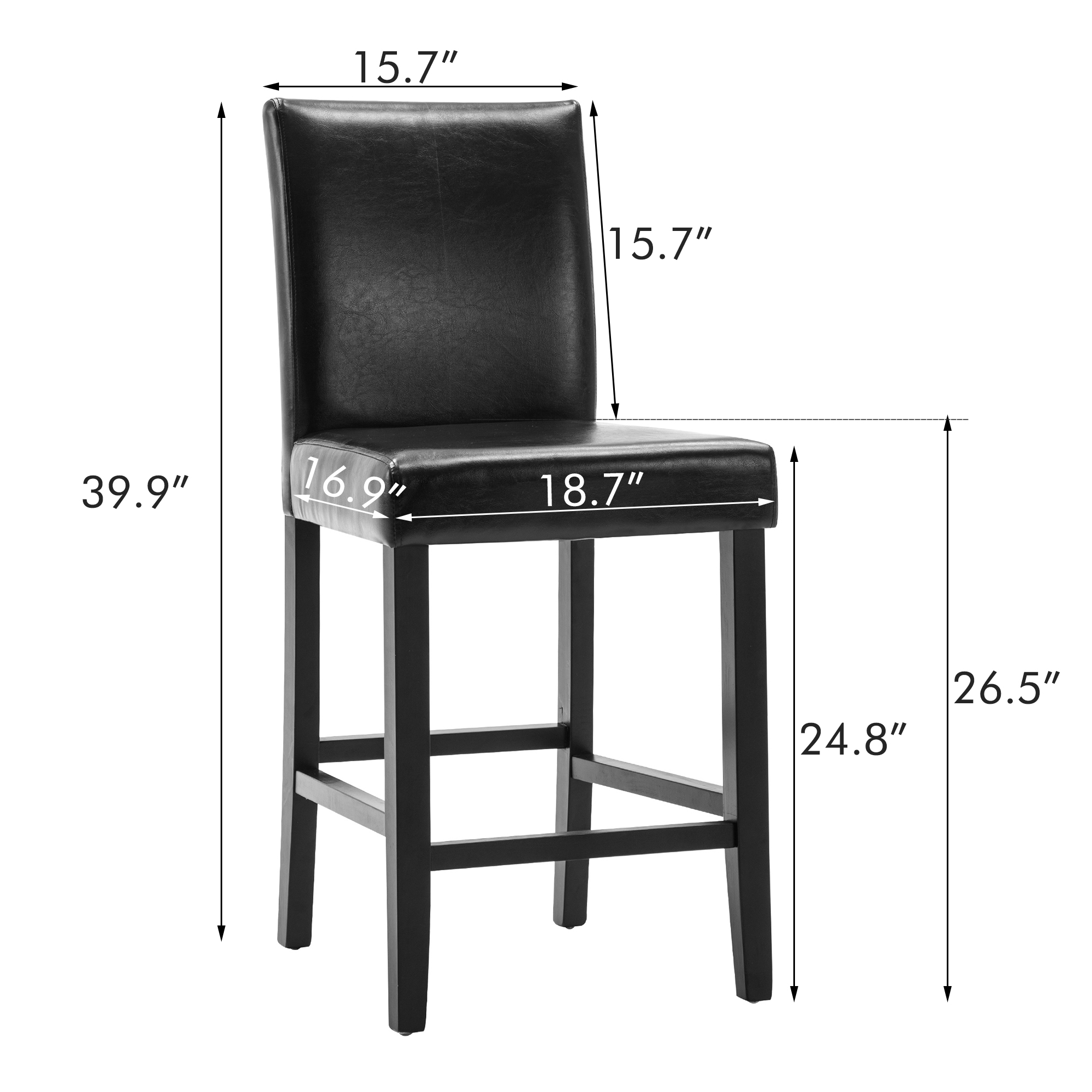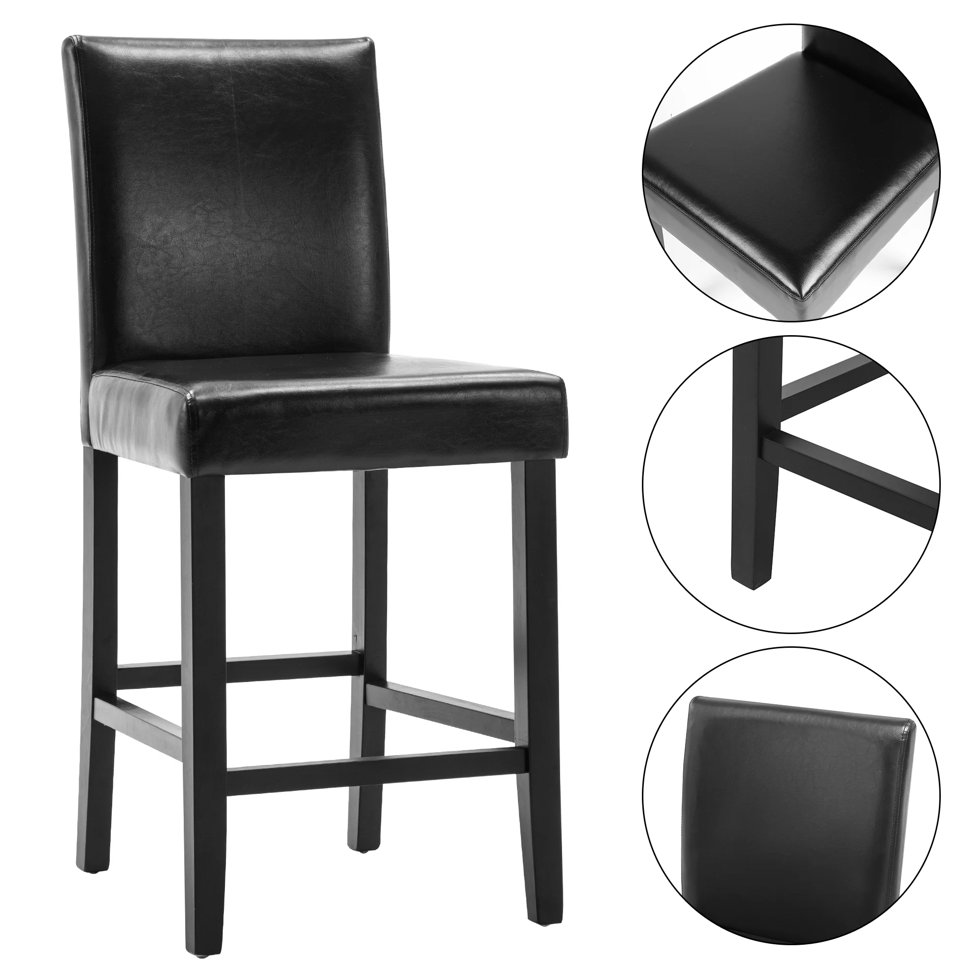 Simple Style Bar Chairs Full Back Counter Height PU Leather Upholstered Barstools, Black, Set of 2