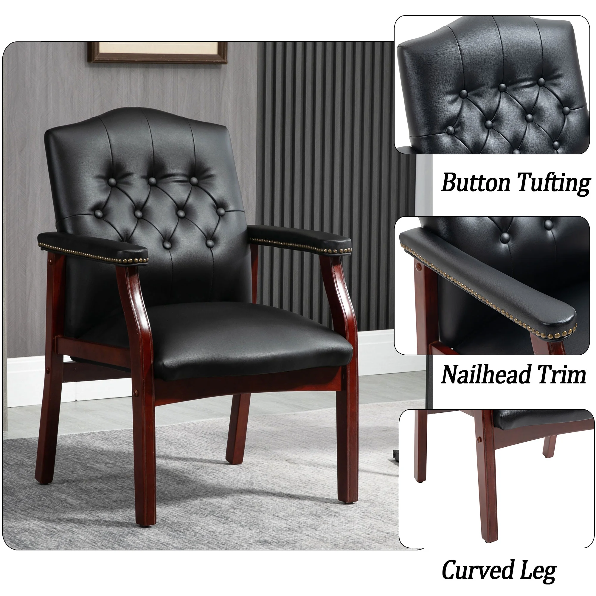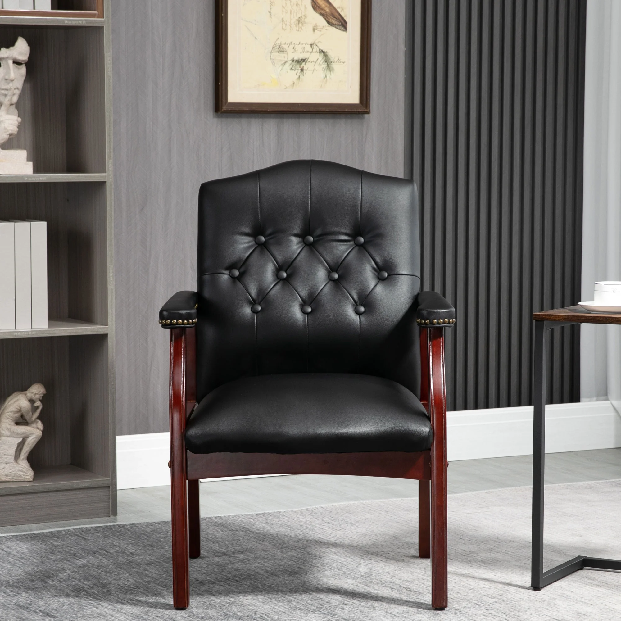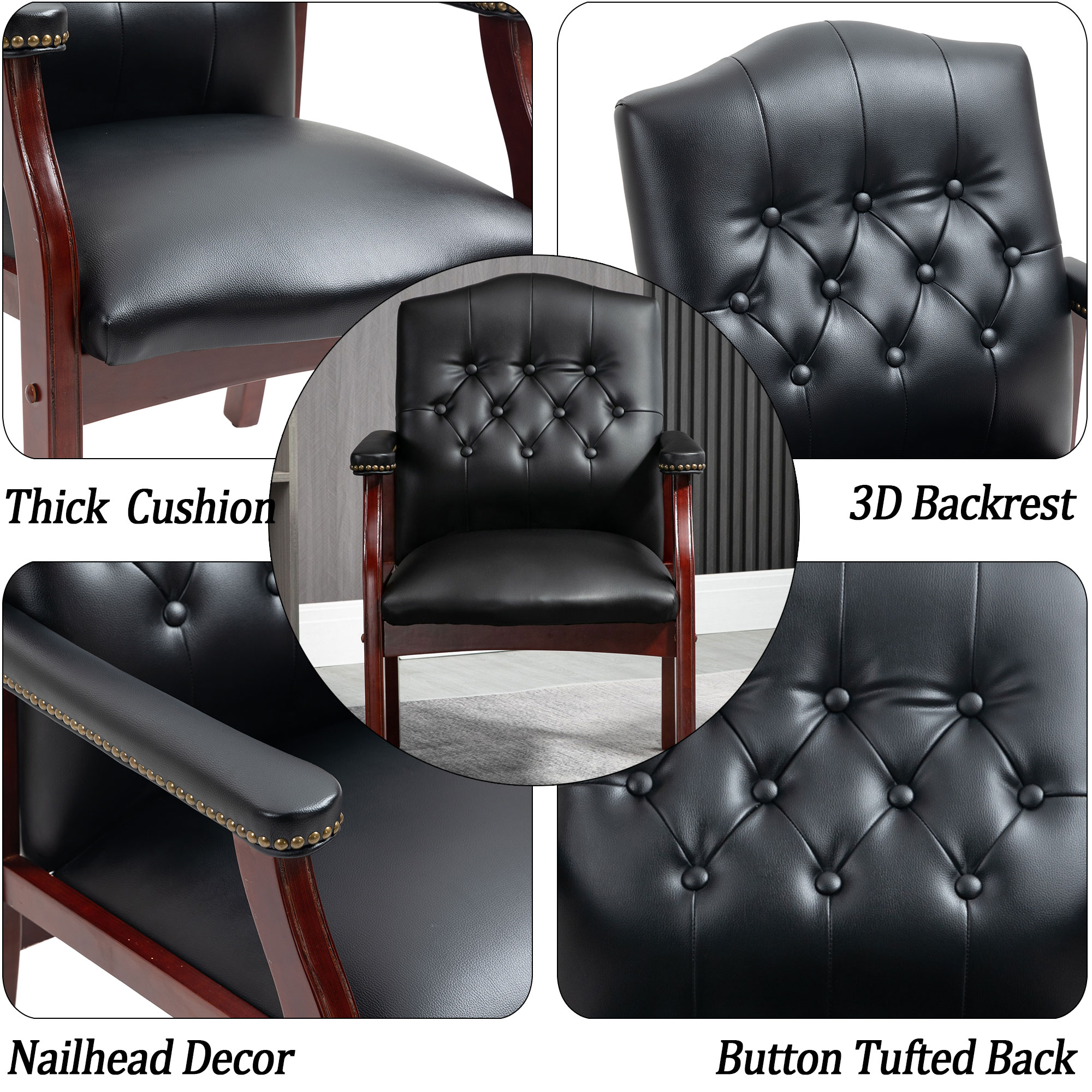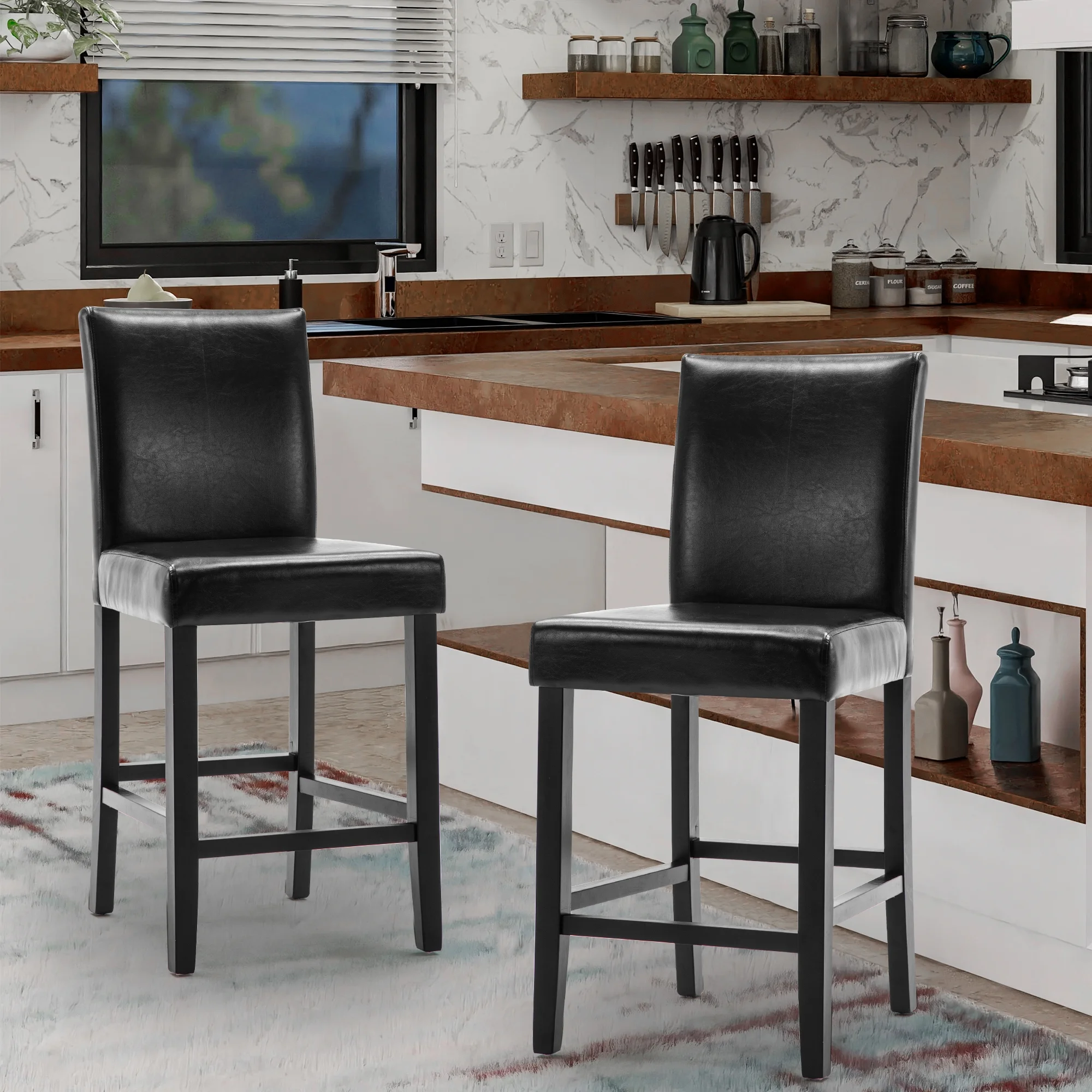 Simple Style Bar Chairs Full Back Counter Height PU Leather Upholstered Barstools, Black, Set of 2