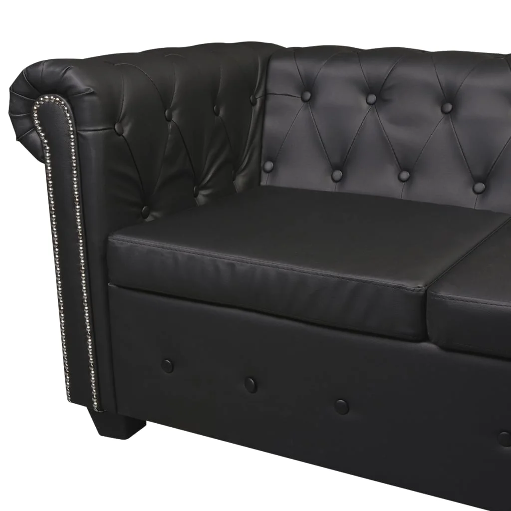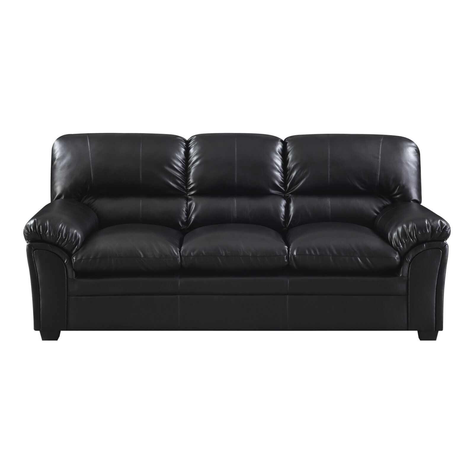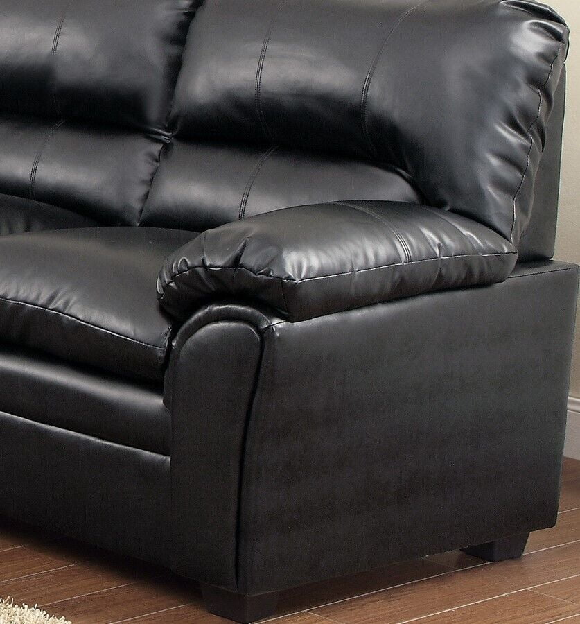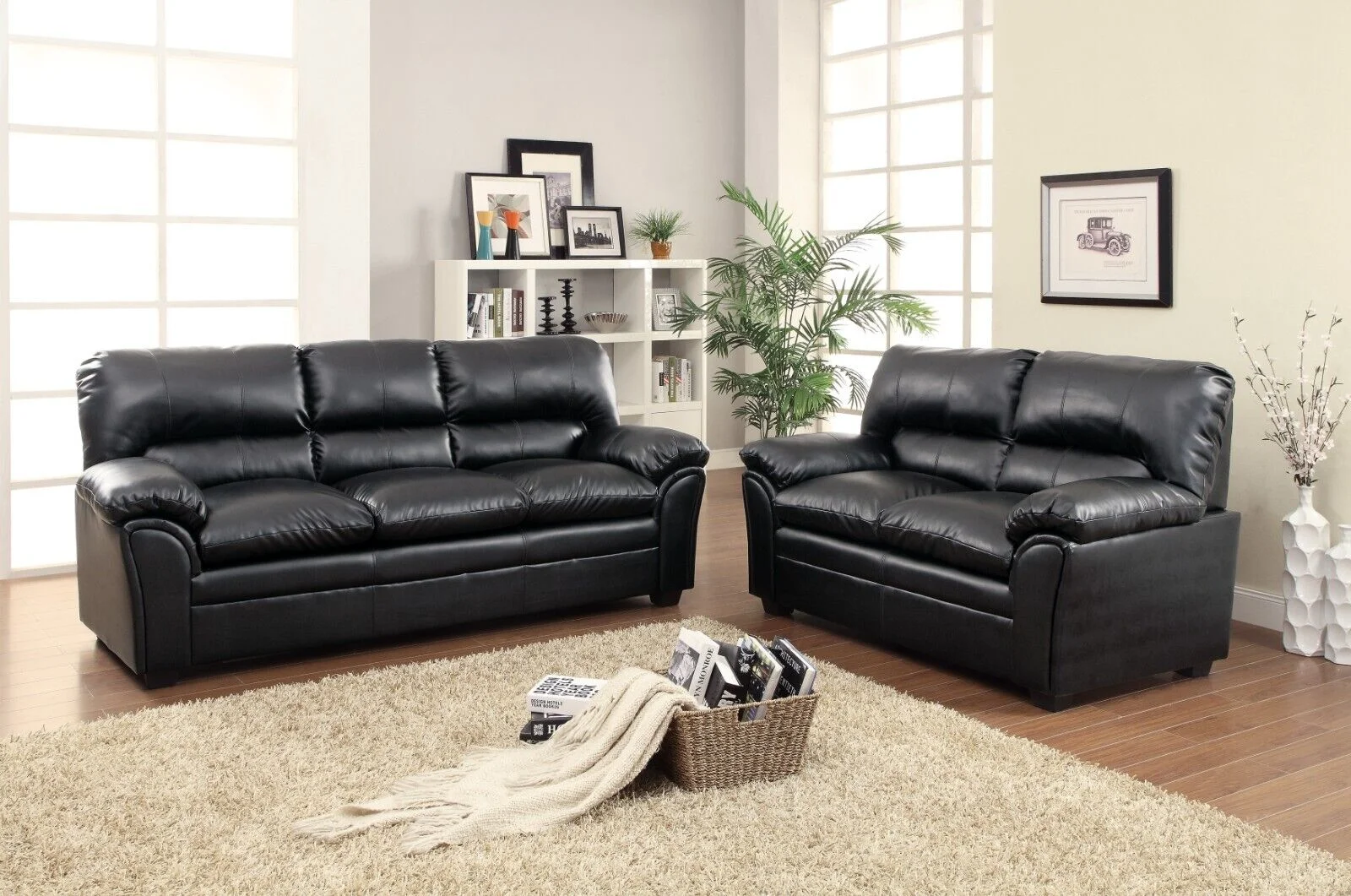 Stylish Black Sofa Set 2pc Sofa Loveseat Faux Leather Upholstered Comfortable Seating Living Room Furniture