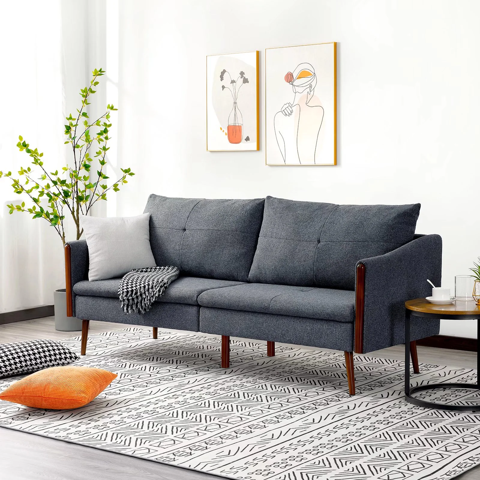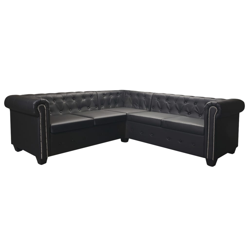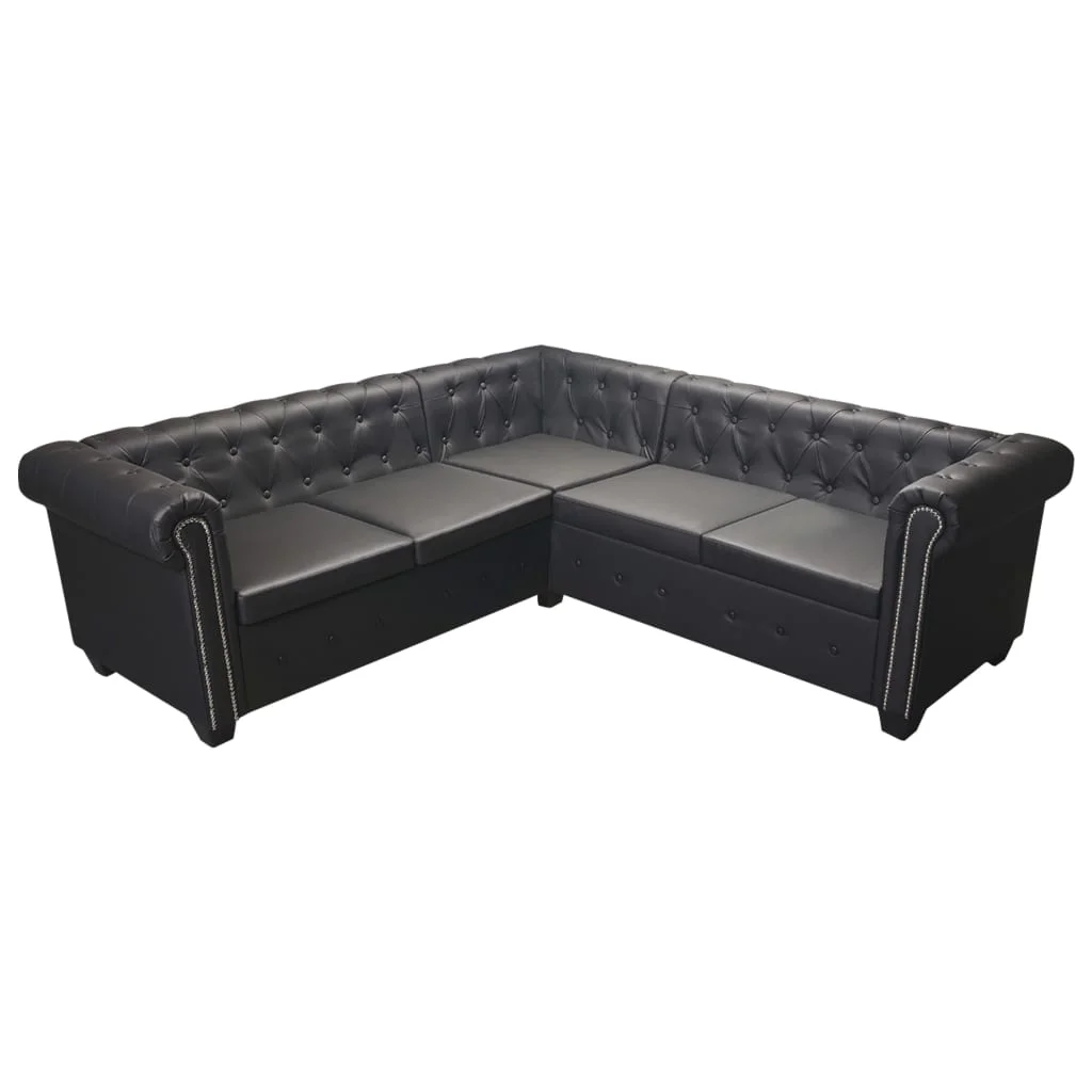 Stylish Black Sofa Set 2pc Sofa Loveseat Faux Leather Upholstered Comfortable Seating Living Room Furniture