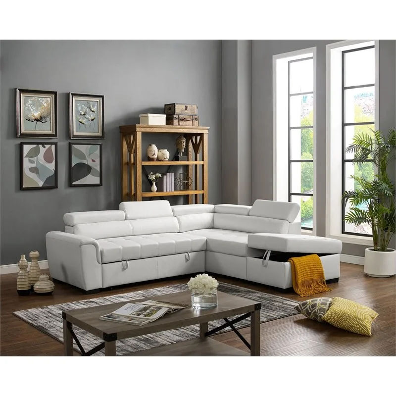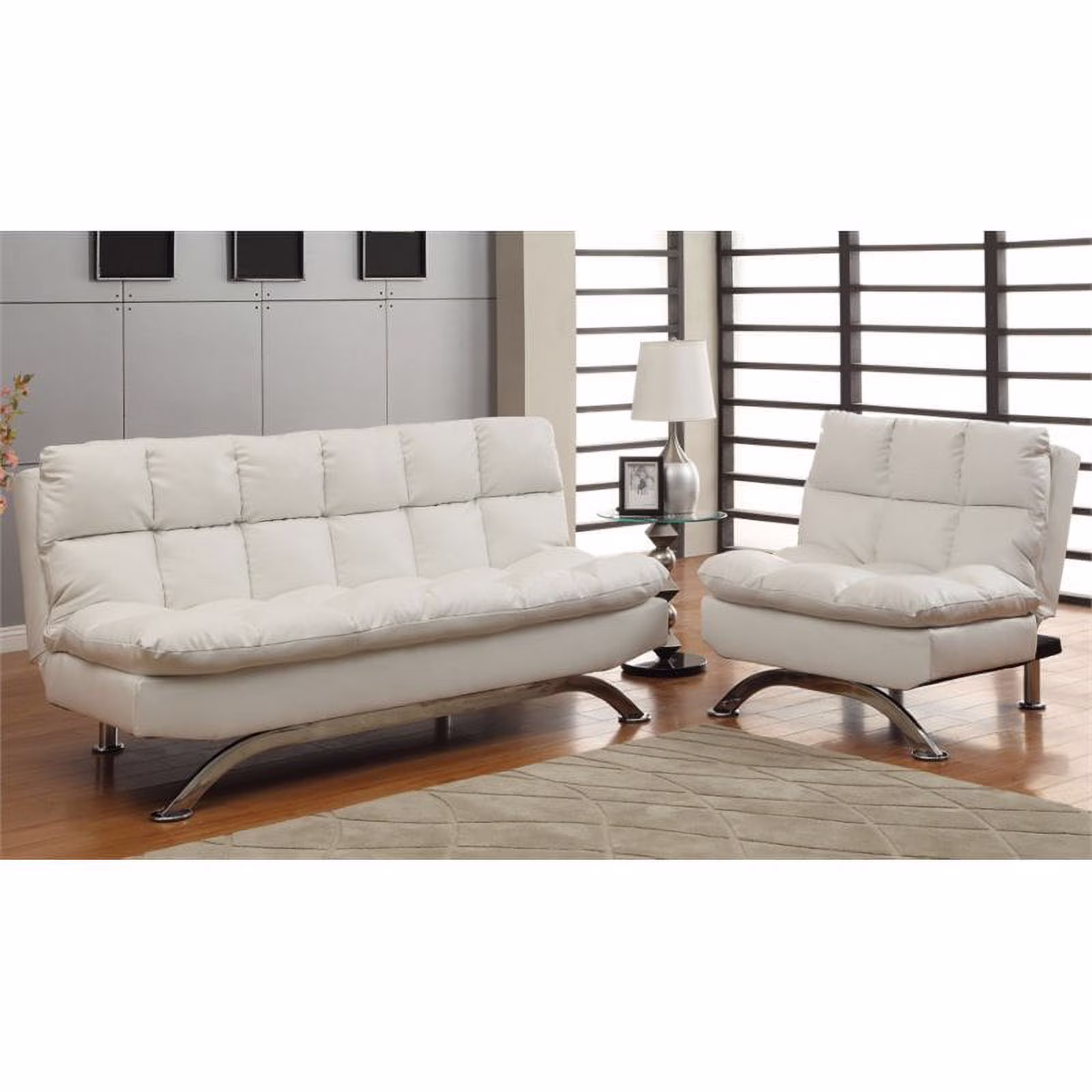 Furniture of America Preston 2-piece Faux Leather Futon Sofa Set in White