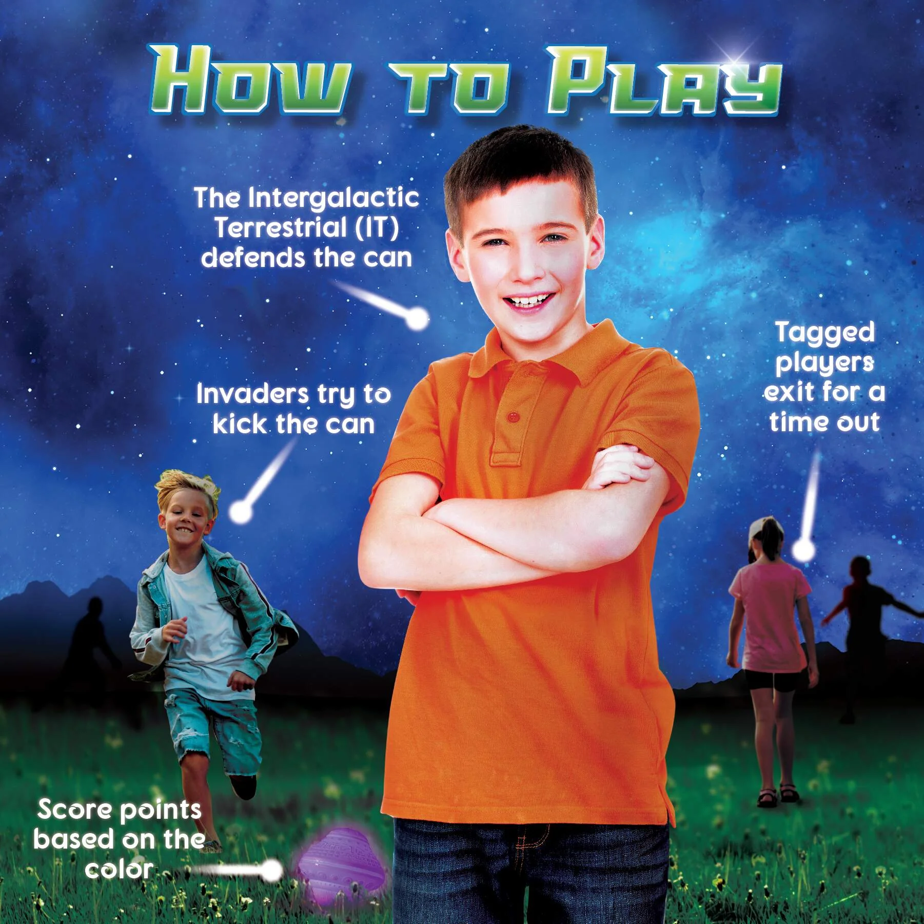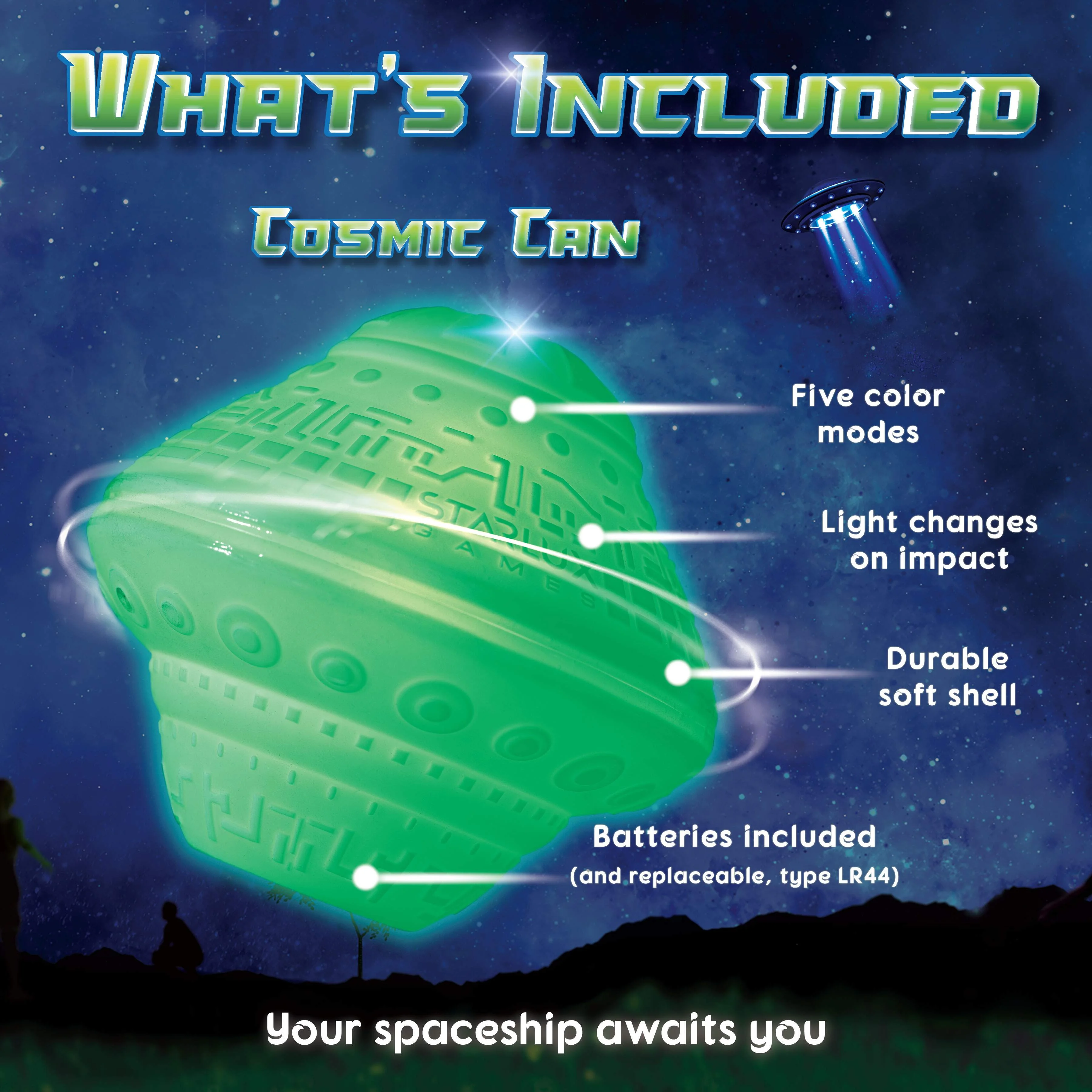 Starlux Games Cosmic Kick the Can: Glow in the Dark Outdoor Board Game and Spaceship Toy